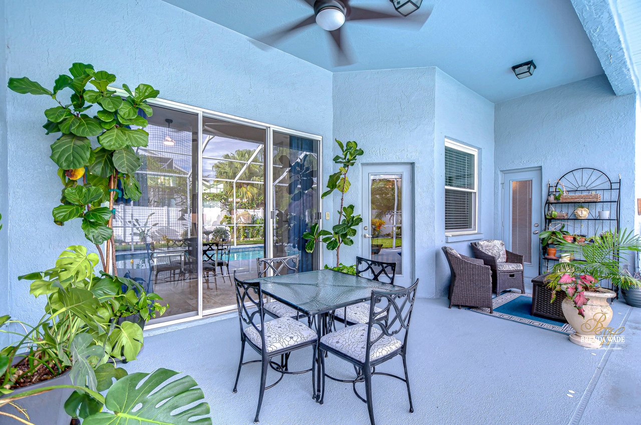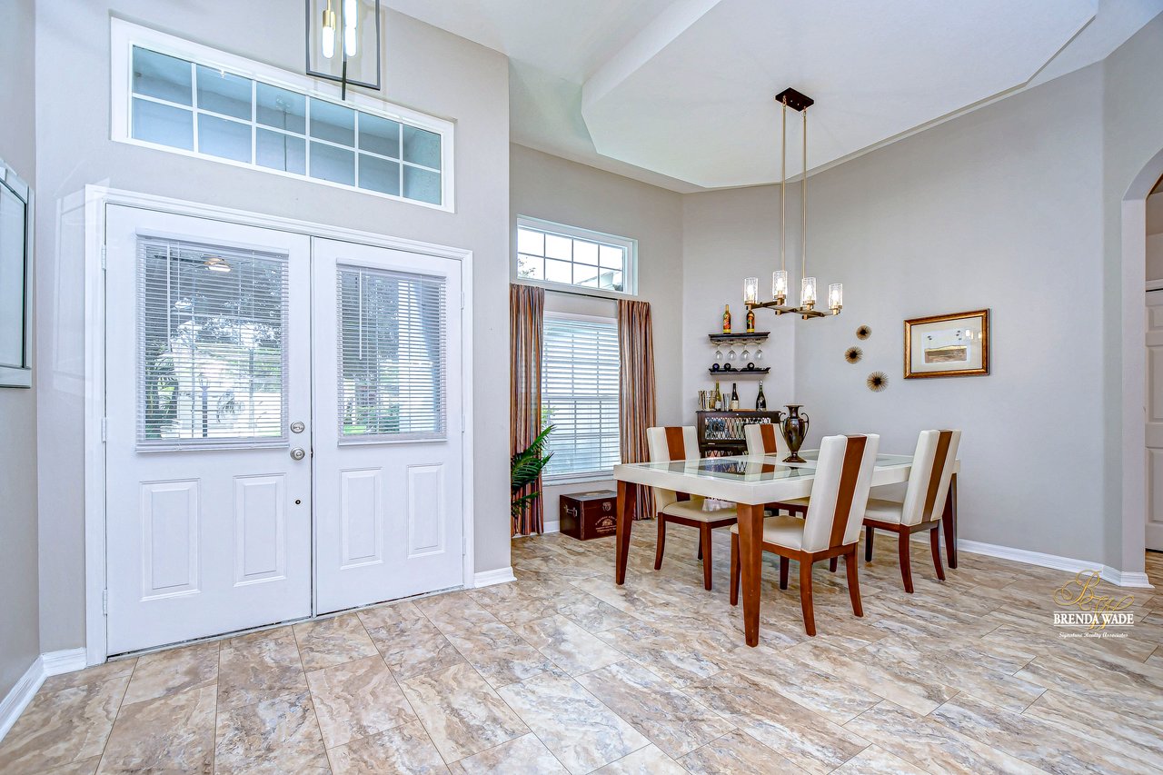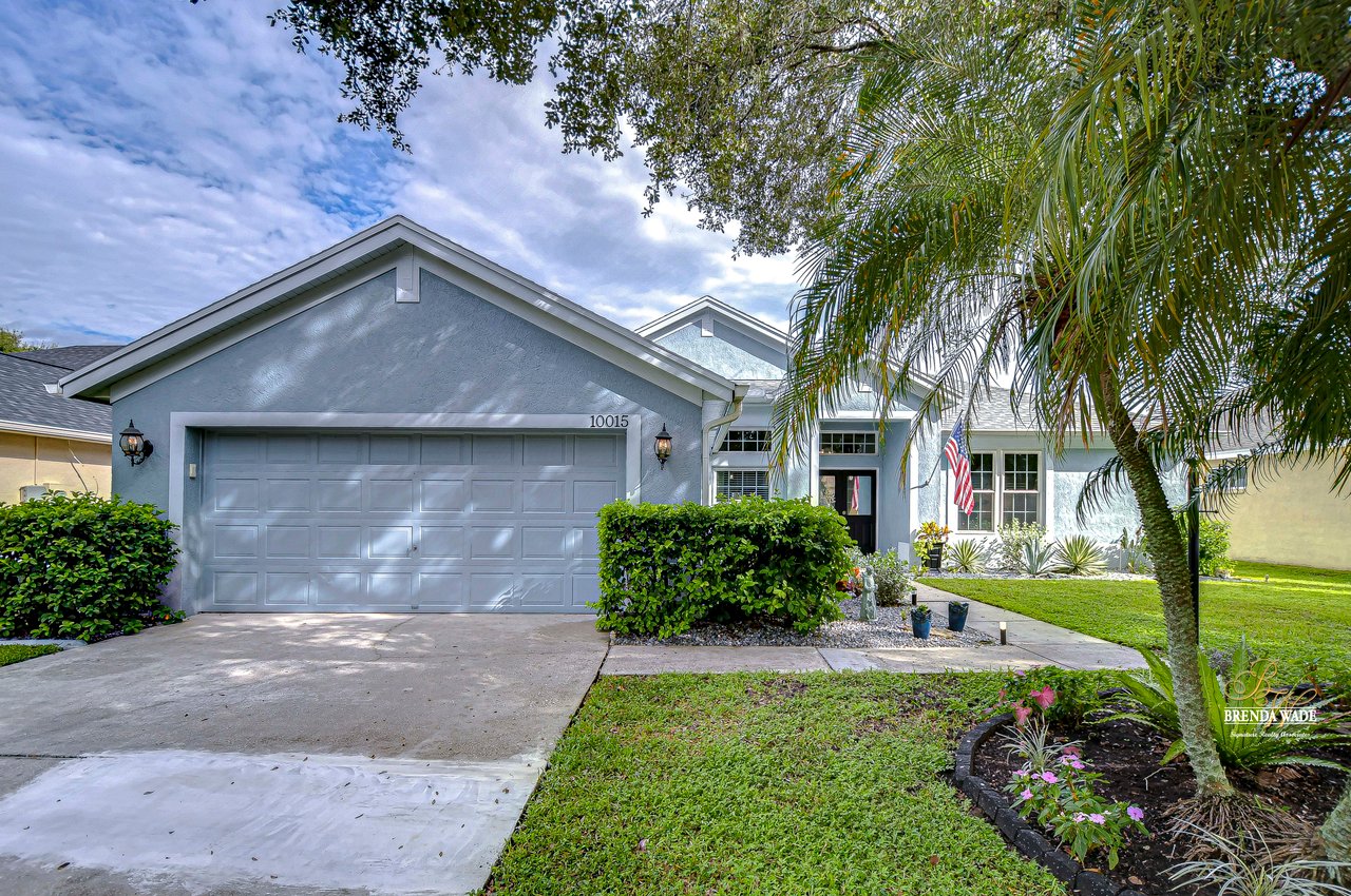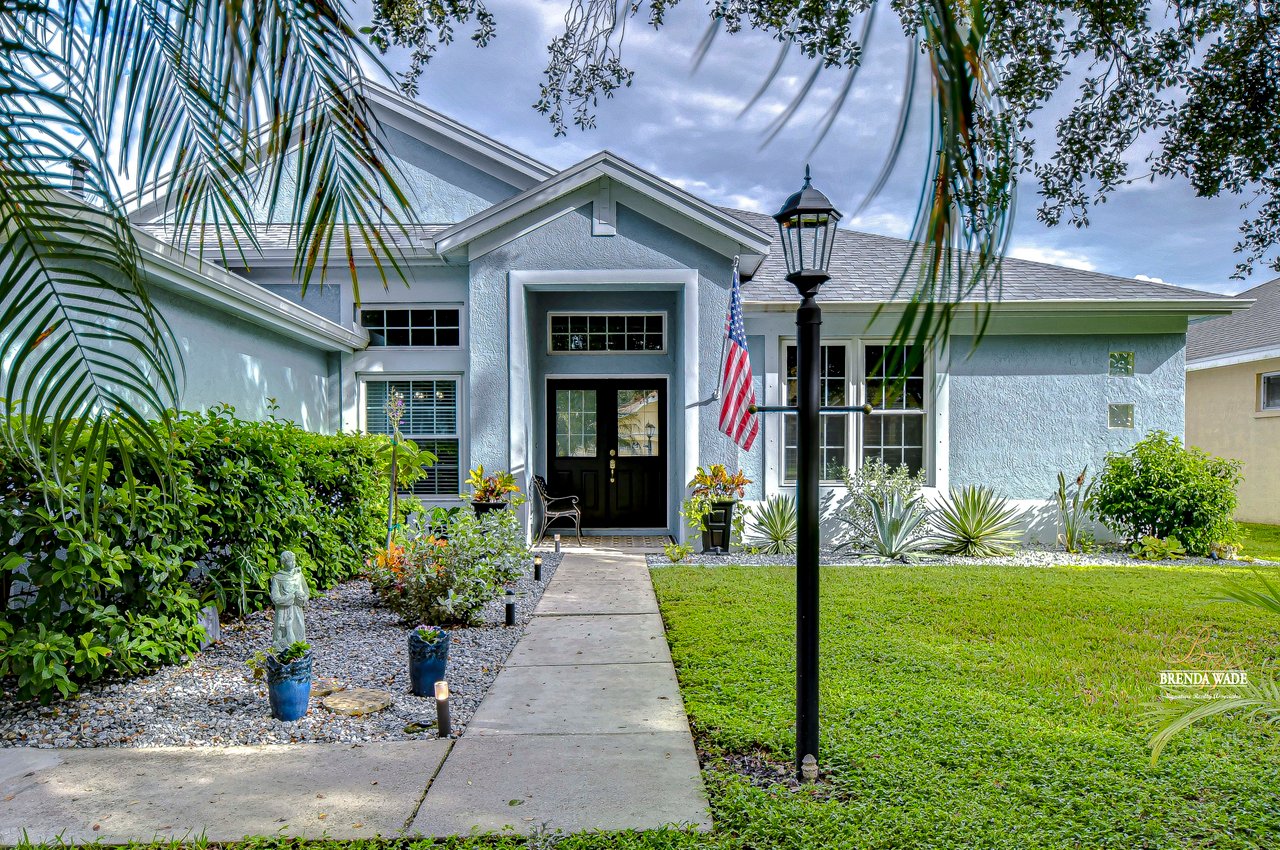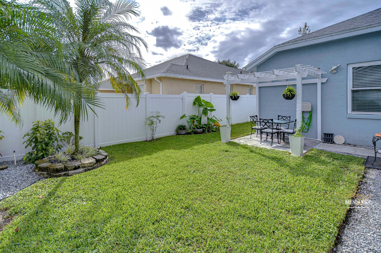 Start packing your bags! Nestled among towering oaks and lush tropical foliage, this beautifully upgraded three-bedroom plus den pool home is a serene retreat just waiting to welcome you home! Enjoy peace of mind with numerous recent upgrades: a new roof installed in 2020, updated floors in 2023, updated gutter drains and leaf guards added in 2024, interior and exterior light fixtures replaced in 2023, pool solar heating added in 2023, and a water heater and air conditioner that are both under five years old. Upon entering, you'll be welcomed by an expansive open living area featuring a formal dining room and great room, seamlessly flowing into the kitchen and breakfast nook--all offering stunning views of the backyard paradise. The kitchen is a chef's dream, with granite countertops, stainless steel appliances, a 5-burner gas range, and double-layered plant shelves to showcase your personal touch. A custom-painted accent wall adds a stylish and unique element to the great room. The primary suite offers private access to the lanai, a spacious walk-in closet, and a luxurious bathroom with granite countertops, dual sinks, a garden tub, and a separate shower. The two secondary bedrooms are generously sized, each featuring a walk-in closet. Between them, you'll find the perfect nook for a desk or bookshelves, adding versatile charm to the layout. Outside, prepare to fall in love with your personal paradise. The oversized, freshly painted screened lanai and surrounding deck are perfect for entertaining, leading to a beautifully landscaped, irrigated yard. You'll love the saltwater, solar-heated pool, surrounded by lush tropical landscaping, offering a private retreat within a new vinyl-fenced yard. Located in the desirable Lake St. Charles community, this home offers access to jogging trails, a community pool, playgrounds, tennis courts, ball fields, and more. Conveniently close to I-75 and the Crosstown Expressway, it allows for easy commutes to Tampa and MacDill AFB. Move-in ready and packed with upgrades, this gorgeous home is just waiting for you to make it your own!