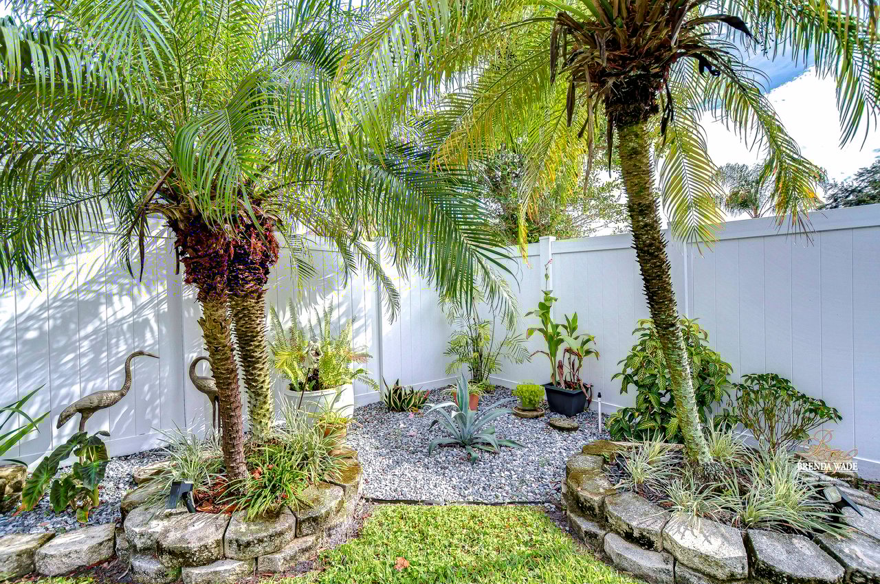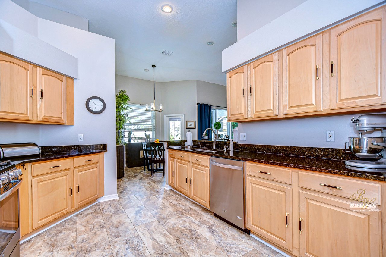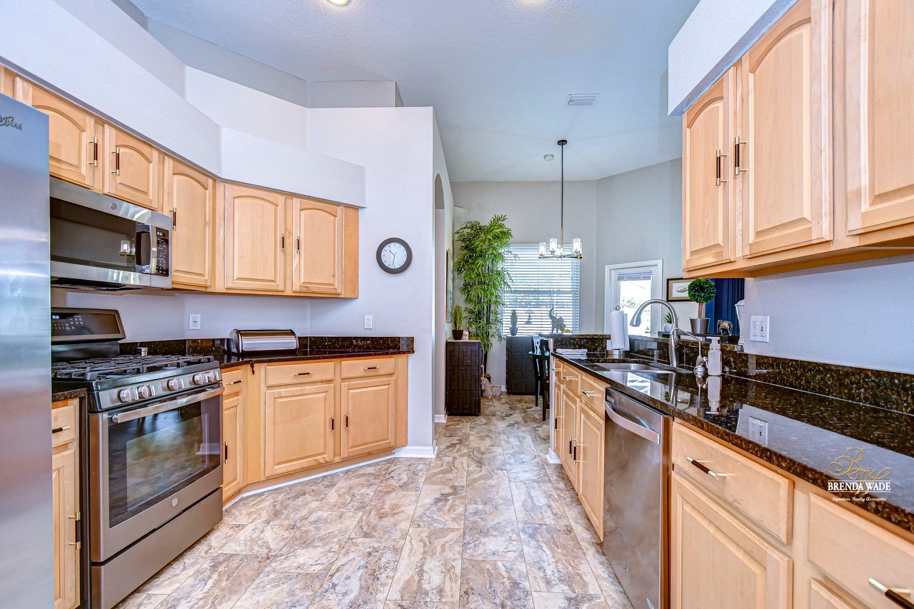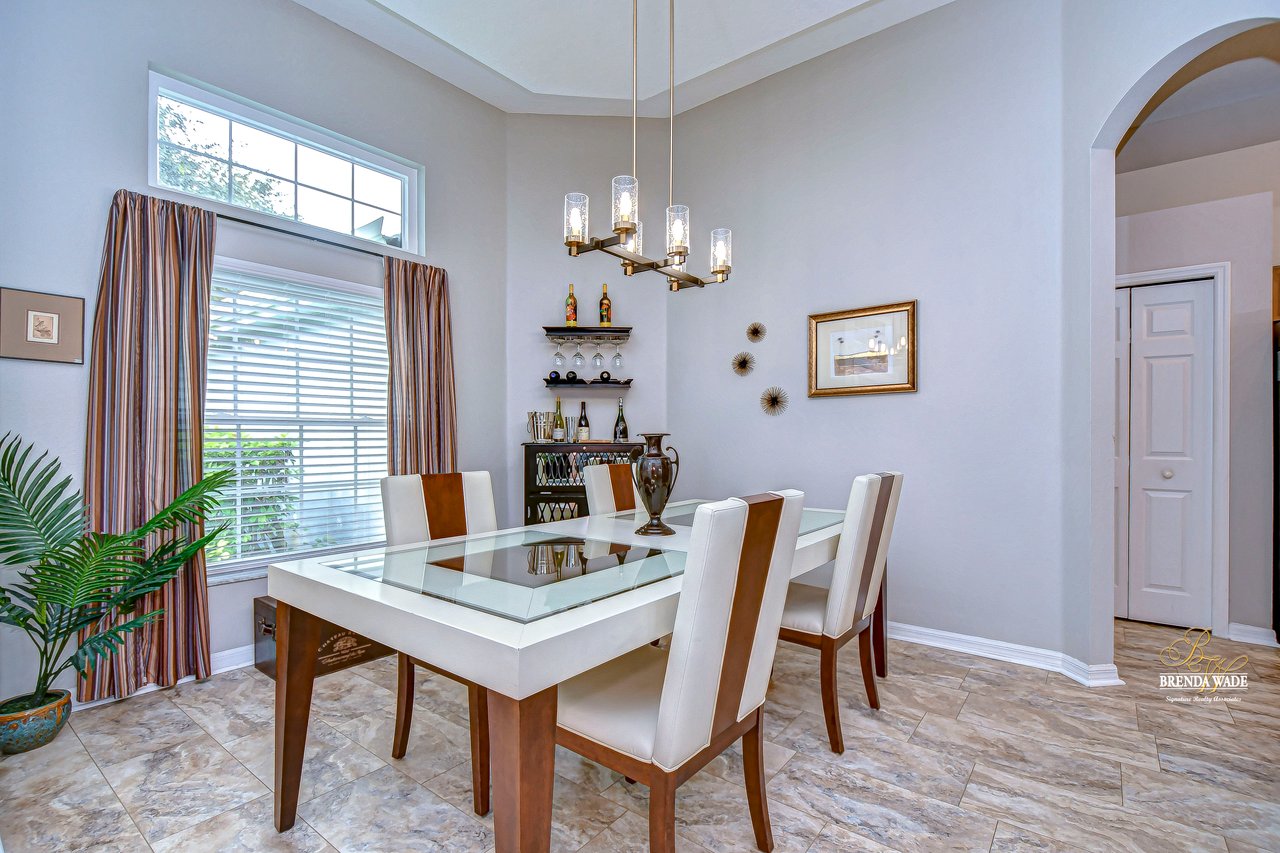 Start packing your bags! Nestled among towering oaks and lush tropical foliage, this beautifully upgraded three-bedroom plus den pool home is a serene retreat just waiting to welcome you home! Enjoy peace of mind with numerous recent upgrades: a new roof installed in 2020, updated floors in 2023, updated gutter drains and leaf guards added in 2024, interior and exterior light fixtures replaced in 2023, pool solar heating added in 2023, and a water heater and air conditioner that are both under five years old. Upon entering, you'll be welcomed by an expansive open living area featuring a formal dining room and great room, seamlessly flowing into the kitchen and breakfast nook--all offering stunning views of the backyard paradise. The kitchen is a chef's dream, with granite countertops, stainless steel appliances, a 5-burner gas range, and double-layered plant shelves to showcase your personal touch. A custom-painted accent wall adds a stylish and unique element to the great room. The primary suite offers private access to the lanai, a spacious walk-in closet, and a luxurious bathroom with granite countertops, dual sinks, a garden tub, and a separate shower. The two secondary bedrooms are generously sized, each featuring a walk-in closet. Between them, you'll find the perfect nook for a desk or bookshelves, adding versatile charm to the layout. Outside, prepare to fall in love with your personal paradise. The oversized, freshly painted screened lanai and surrounding deck are perfect for entertaining, leading to a beautifully landscaped, irrigated yard. You'll love the saltwater, solar-heated pool, surrounded by lush tropical landscaping, offering a private retreat within a new vinyl-fenced yard. Located in the desirable Lake St. Charles community, this home offers access to jogging trails, a community pool, playgrounds, tennis courts, ball fields, and more. Conveniently close to I-75 and the Crosstown Expressway, it allows for easy commutes to Tampa and MacDill AFB. Move-in ready and packed with upgrades, this gorgeous home is just waiting for you to make it your own!