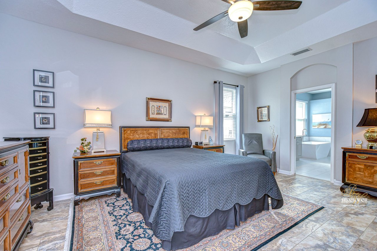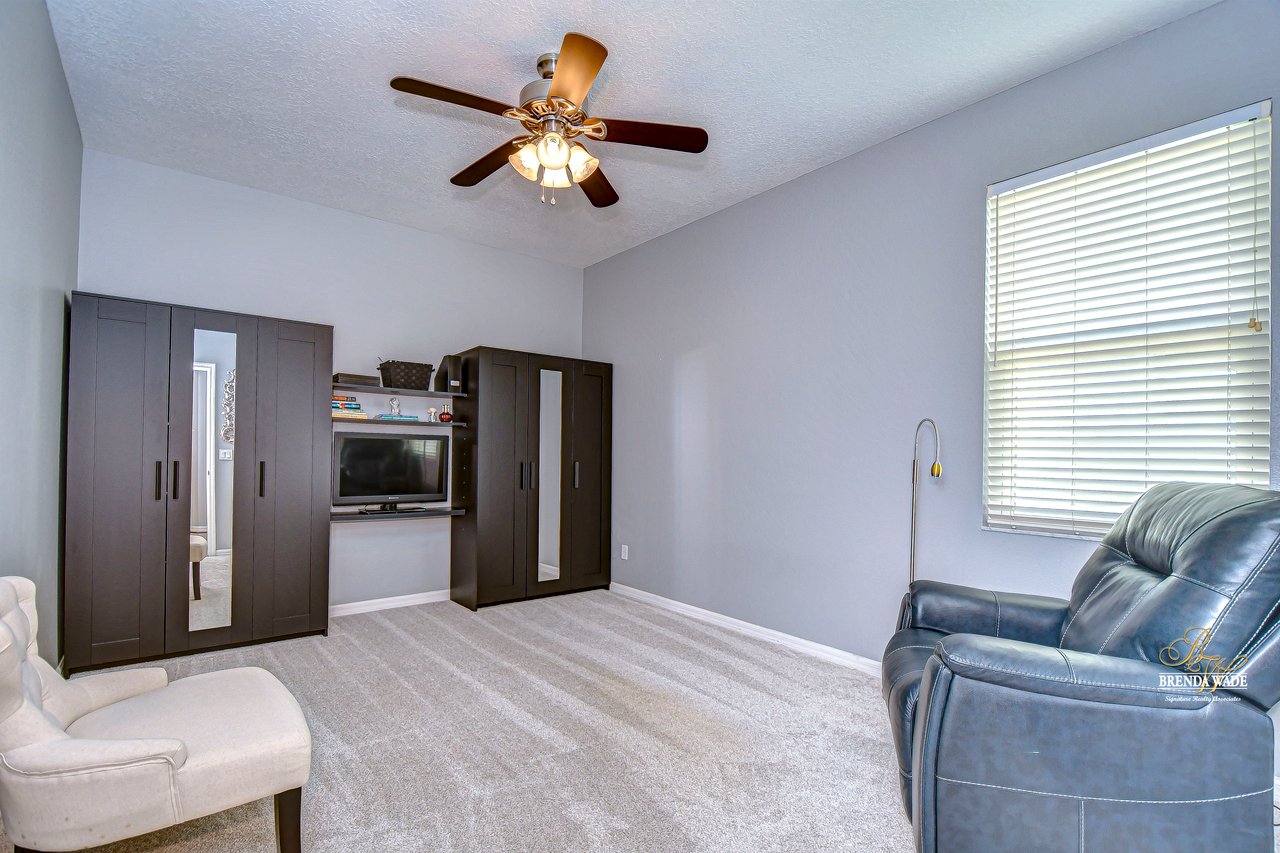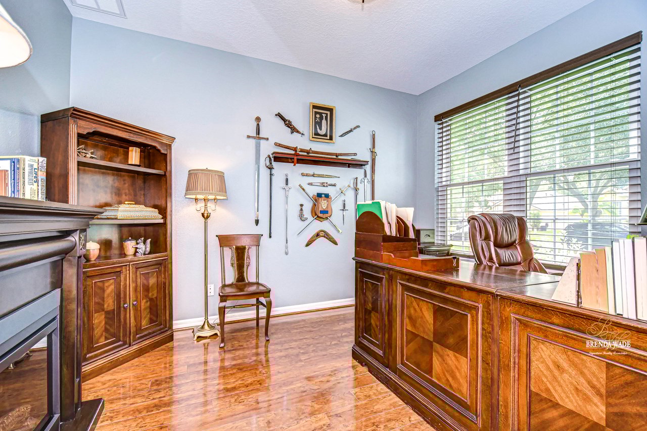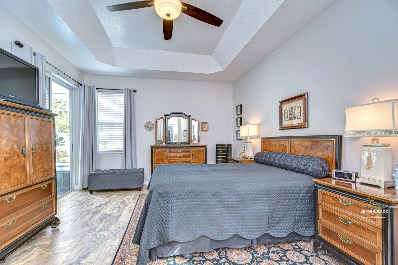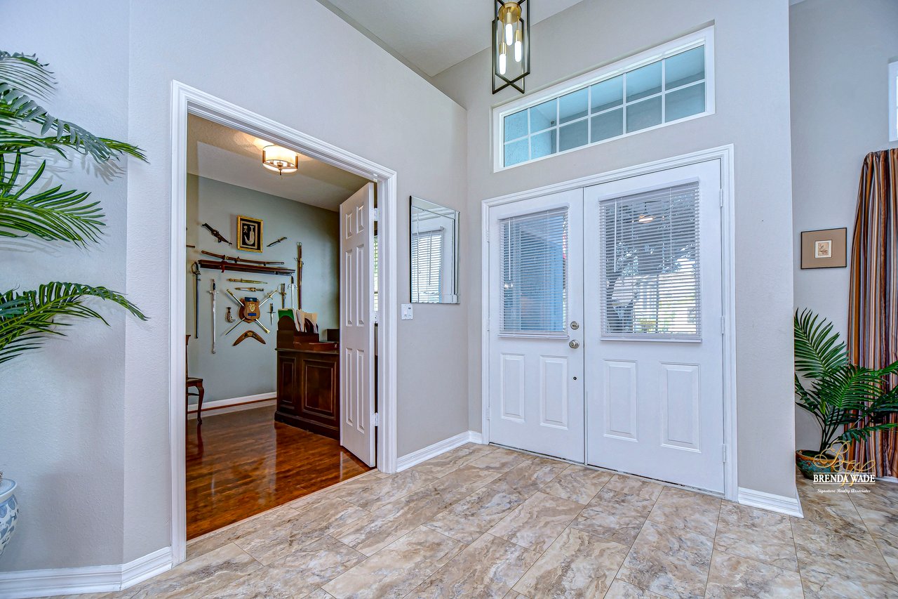 Start packing your bags! Nestled among towering oaks and lush tropical foliage, this beautifully upgraded three-bedroom plus den pool home is a serene retreat just waiting to welcome you home! Enjoy peace of mind with numerous recent upgrades: a new roof installed in 2020, updated floors in 2023, updated gutter drains and leaf guards added in 2024, interior and exterior light fixtures replaced in 2023, pool solar heating added in 2023, and a water heater and air conditioner that are both under five years old. Upon entering, you'll be welcomed by an expansive open living area featuring a formal dining room and great room, seamlessly flowing into the kitchen and breakfast nook--all offering stunning views of the backyard paradise. The kitchen is a chef's dream, with granite countertops, stainless steel appliances, a 5-burner gas range, and double-layered plant shelves to showcase your personal touch. A custom-painted accent wall adds a stylish and unique element to the great room. The primary suite offers private access to the lanai, a spacious walk-in closet, and a luxurious bathroom with granite countertops, dual sinks, a garden tub, and a separate shower. The two secondary bedrooms are generously sized, each featuring a walk-in closet. Between them, you'll find the perfect nook for a desk or bookshelves, adding versatile charm to the layout. Outside, prepare to fall in love with your personal paradise. The oversized, freshly painted screened lanai and surrounding deck are perfect for entertaining, leading to a beautifully landscaped, irrigated yard. You'll love the saltwater, solar-heated pool, surrounded by lush tropical landscaping, offering a private retreat within a new vinyl-fenced yard. Located in the desirable Lake St. Charles community, this home offers access to jogging trails, a community pool, playgrounds, tennis courts, ball fields, and more. Conveniently close to I-75 and the Crosstown Expressway, it allows for easy commutes to Tampa and MacDill AFB. Move-in ready and packed with upgrades, this gorgeous home is just waiting for you to make it your own!