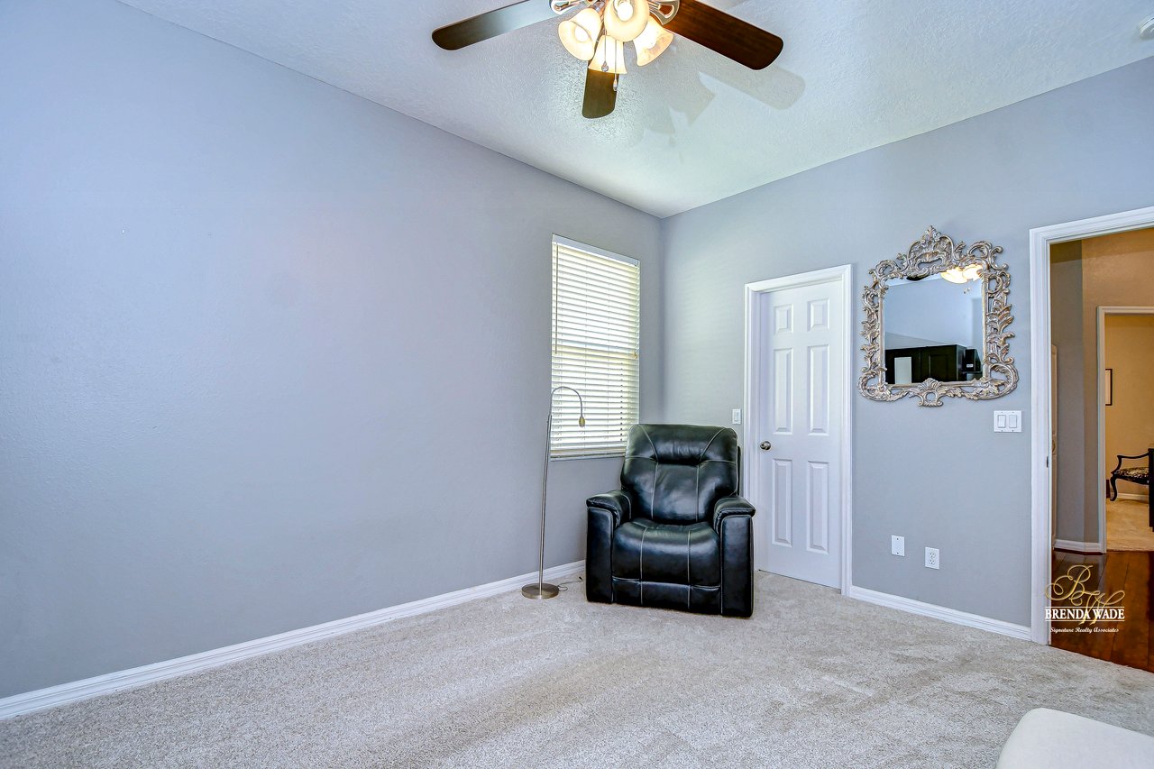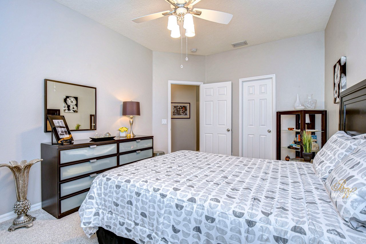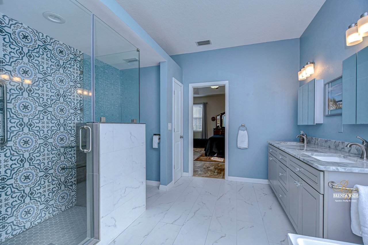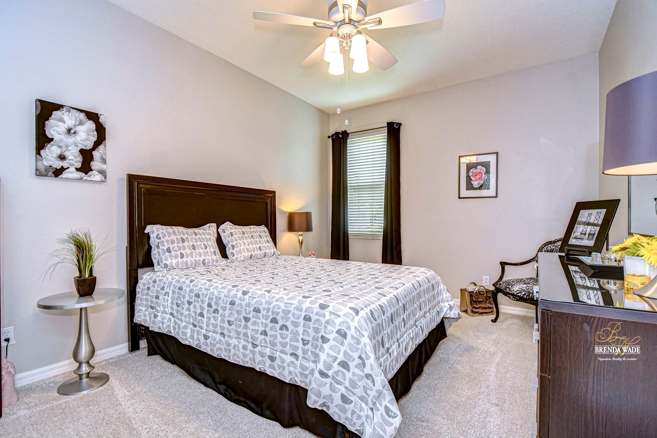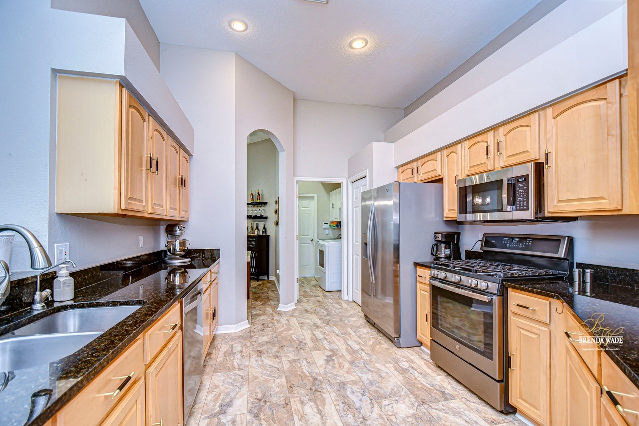 Start packing your bags! Nestled among towering oaks and lush tropical foliage, this beautifully upgraded three-bedroom plus den pool home is a serene retreat just waiting to welcome you home! Enjoy peace of mind with numerous recent upgrades: a new roof installed in 2020, updated floors in 2023, updated gutter drains and leaf guards added in 2024, interior and exterior light fixtures replaced in 2023, pool solar heating added in 2023, and a water heater and air conditioner that are both under five years old. Upon entering, you'll be welcomed by an expansive open living area featuring a formal dining room and great room, seamlessly flowing into the kitchen and breakfast nook--all offering stunning views of the backyard paradise. The kitchen is a chef's dream, with granite countertops, stainless steel appliances, a 5-burner gas range, and double-layered plant shelves to showcase your personal touch. A custom-painted accent wall adds a stylish and unique element to the great room. The primary suite offers private access to the lanai, a spacious walk-in closet, and a luxurious bathroom with granite countertops, dual sinks, a garden tub, and a separate shower. The two secondary bedrooms are generously sized, each featuring a walk-in closet. Between them, you'll find the perfect nook for a desk or bookshelves, adding versatile charm to the layout. Outside, prepare to fall in love with your personal paradise. The oversized, freshly painted screened lanai and surrounding deck are perfect for entertaining, leading to a beautifully landscaped, irrigated yard. You'll love the saltwater, solar-heated pool, surrounded by lush tropical landscaping, offering a private retreat within a new vinyl-fenced yard. Located in the desirable Lake St. Charles community, this home offers access to jogging trails, a community pool, playgrounds, tennis courts, ball fields, and more. Conveniently close to I-75 and the Crosstown Expressway, it allows for easy commutes to Tampa and MacDill AFB. Move-in ready and packed with upgrades, this gorgeous home is just waiting for you to make it your own!