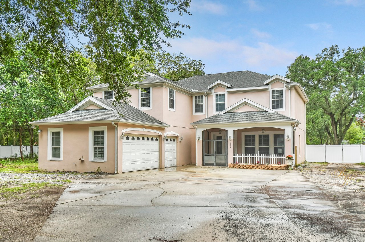 Country living at its finest! This 6-bedroom, 5-bathroom POOL home screams private retreat discreetly tucked back sitting on 1.28-acres of tranquil bliss! There are few and far between homes as special as this one! The lot is fenced and WOW’s you from the moment you arrive with freshly pressure washed exterior, side entry 3-car garage, and screened front porch! If you want to live close to downtown Tampa but still feel tucked away from the busy traffic, this is the one! Step through the double glass front door and into the grand foyer with high ceilings and new paint in 2022! The open formal living and dining rooms both feature tray ceilings and stunning natural lighting! A wood-look laminate flooring flows throughout the first floor! The family room is oh so spacious and offers a tray ceiling and views of the pool with the sliding doors! The family room opens up to the heart of the home… the gourmet kitchen! New stainless-steel appliances in 2018, granite countertops, 42-in cabinets topped with crown, center island, reverse osmosis system, and walk-in pantry combine to create the ideal space for even the most discerning buyer! Head upstairs where you can appreciate NEW CARPET in 2022! Behind a set of double doors is the owners' suite with french doors leading to the second-floor balcony, ceiling medallion, dual walk-in closets, en-suite with separate vanities, jetted tub, and walk-in shower with dual head! There is a second bedroom that can act as an owner's suite with double door entrance, walk-in closet, and attached bathroom! The third bedroom has a walk-in closet and private bathroom as well while the other two bedrooms on the second floor share a jack and jill bathroom! There is one bedroom exclusively on the first floor with a pool bath nearby perfect for a guest suite! The sparkling pool with pavers and screened lanai will be the favorite spot for everyone all summer long! The spacious yard has two sheds and was re-fenced in 2022! There is an emergency generator on the property that will give you peace of mind if there is ever bad weather!