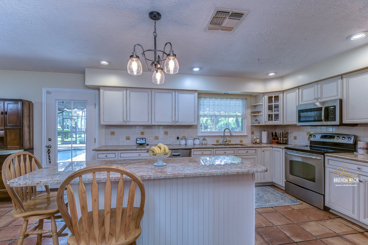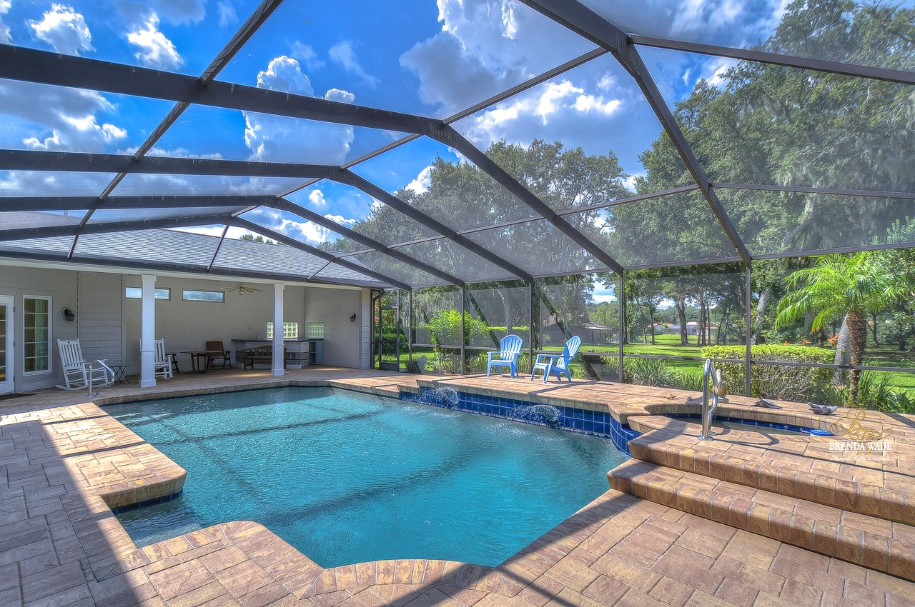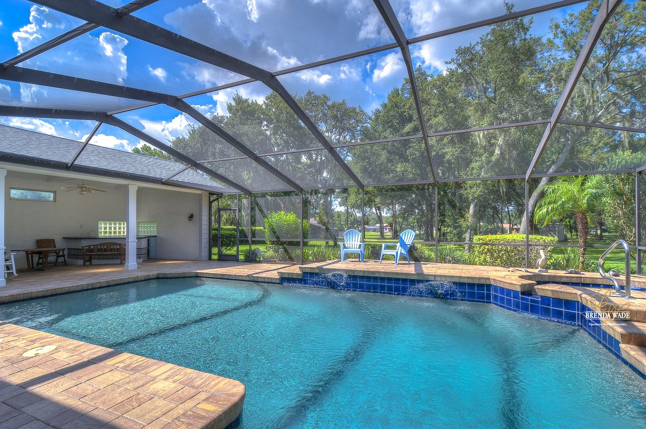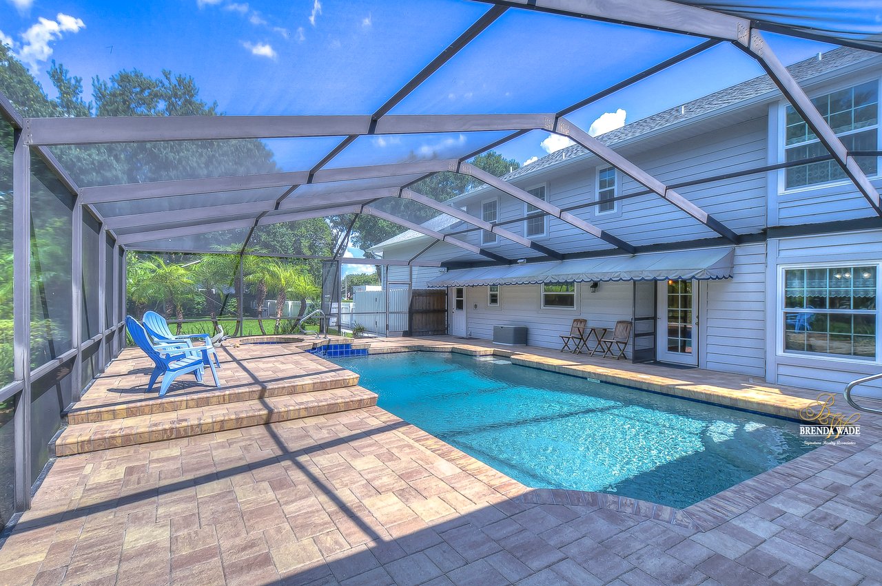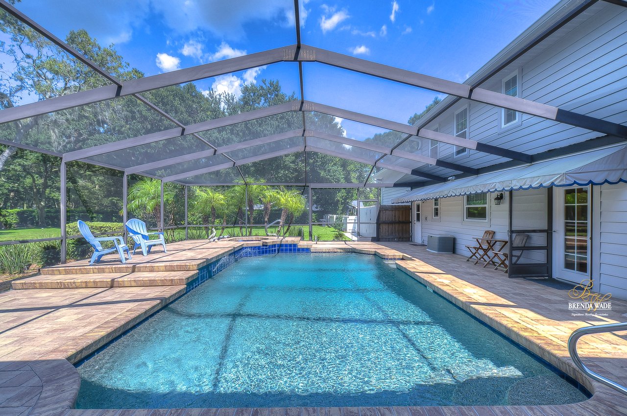 WATERFRONT BLISS! This absolutely stunning POOL home located in the sought-after community of Southoak is just what you were looking for! Sitting on an oversized 2.59-acre lot with a tranquil pond in your backyard you will just adore all that this home provides and the amazing neighbors and community that Southoak provides! This is the kind of home that brings back those warm and fuzzy memories and it is ready for its next family to create their own! The front elevation is so well cared for with meticulous landscaping, covered front porch, statement red front door, and oversized side entry two-car garage with separate bays! Once you are inside you will instantly feel right at home and can picture your decor perfectly with the neutral paint, crown molding, plantation shutters, and wood flooring! The separate formal living and dining rooms are so spacious and both connect to the kitchen area so entertaining is an easy task here! The dining room has a beautiful ceiling medallion and direct access to the butler's pantry so you will happily spend holidays at your house moving forward! This kitchen is SO DREAMY! Showcasing a complete remodel with granite countertops, soft-close designer cabinets, stainless appliances, center island with seating, and walk-in pantry! The breakfast nook offers a wood-burning fireplace with brick accents, bay window seating overlooking the pool, and is so spacious it could be the dining room on its own! The last stop on the first floor is the family room! With a wall of built-in shelving, this room is set to feature all of your gorgeous pieces with amazing natural lighting from the skylights, vaulted ceiling, and french doors that take you to the pool! There is a convenient half bath with direct outside access as well! As you tour this impeccable home you will notice how much storage it provides in just about every room of the house! Head upstairs where the family-friendly floor plan houses all of the bedrooms, and WOW these rooms live BIG! Starting with the primary suite there is a vaulted ceiling, walk-in closet, and updated en-suite bathroom with dual sinks, marble countertops, standalone soaking tub, and walk-in shower! There are four more spacious bedrooms, all offering generous closet space! There are two access points to completed and insulated attic spaces so storage will never be an issue here! The secondary bathroom upstairs has been updated as well with marble counters and dual sinks! Take a dip in the pool, resurfaced, and repaved in 2017! The pavered screened-in lanai features an outdoor wet bar, gorgeous pool with fountains, and the privacy that not many homes can offer! There are no backyard neighbors of course and you have unmatched views of the towering trees that lead you to the pond! There is a storage shed at the back of the property with a paddle boat so you can enjoy the pond in your free time! This oversized property has been tastefully updated and perfectly maintained and now all it needs is YOU!