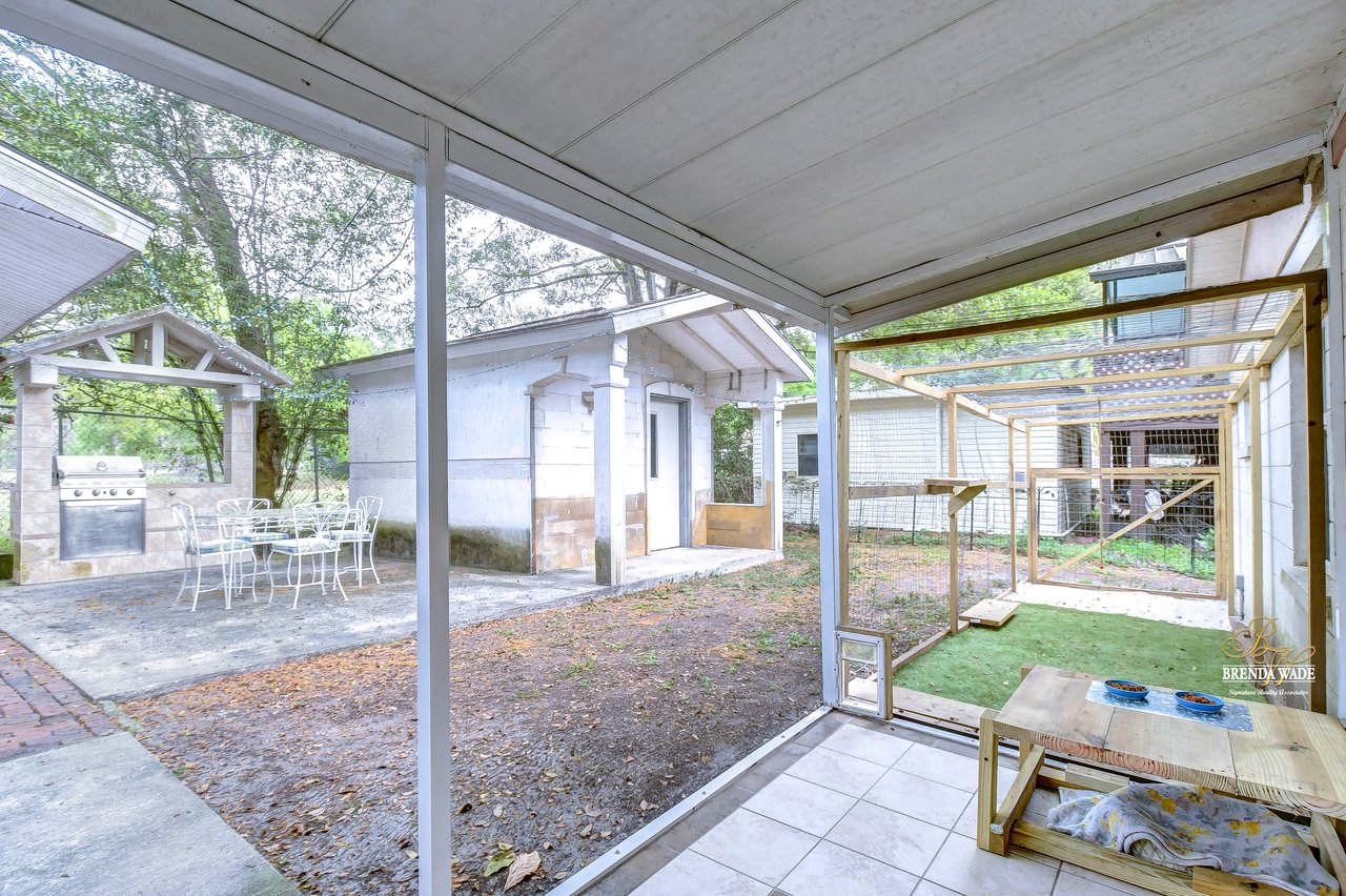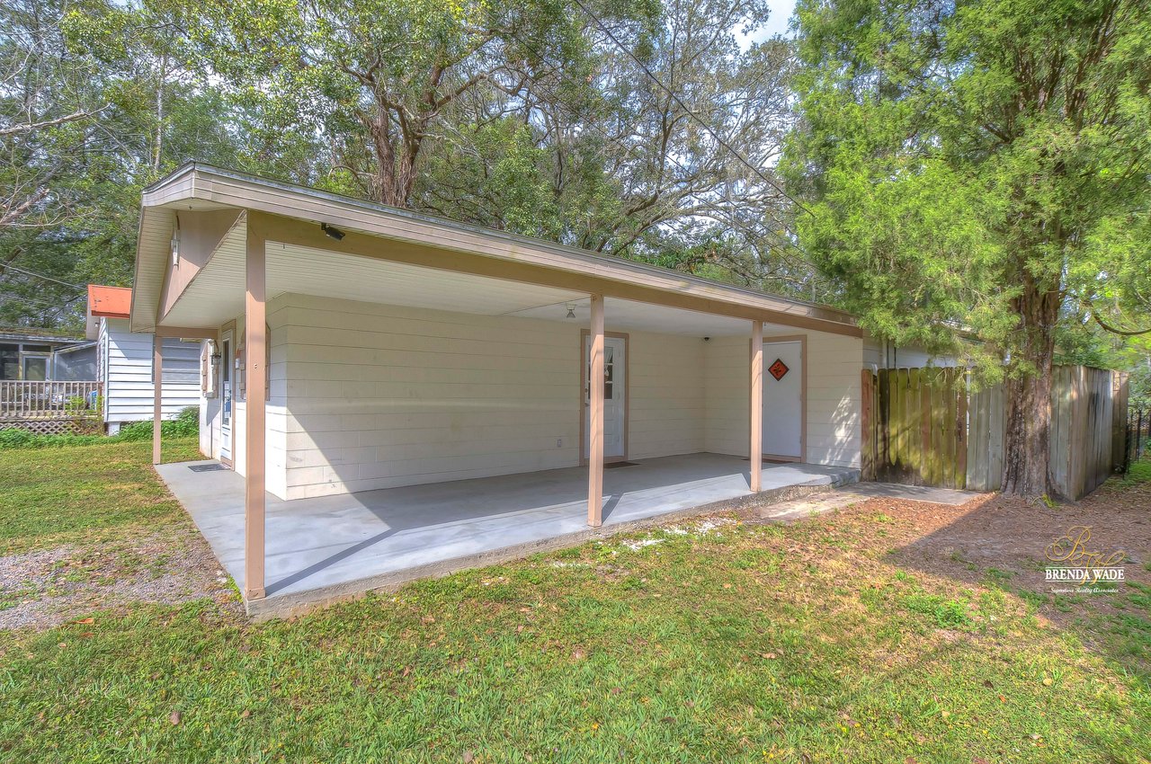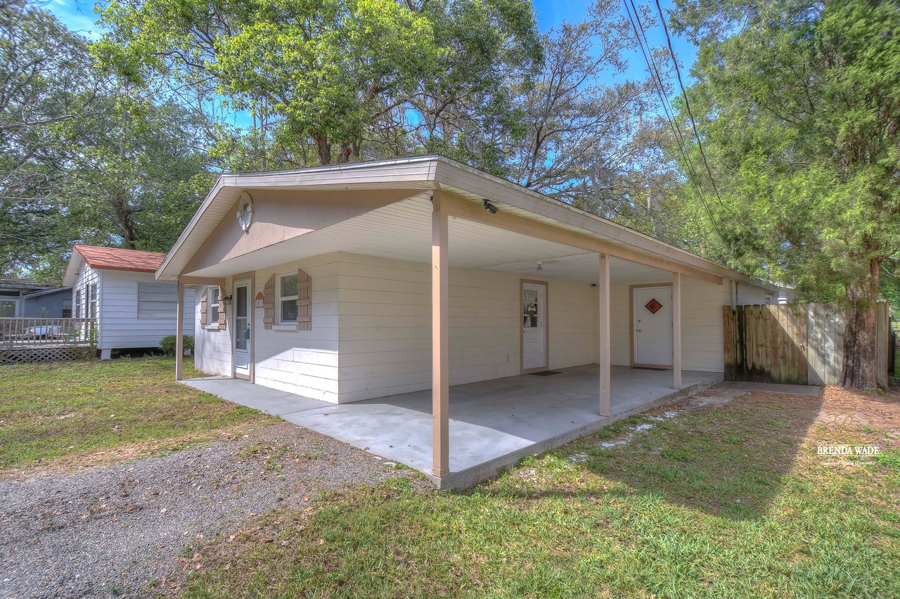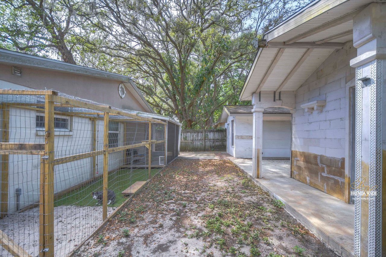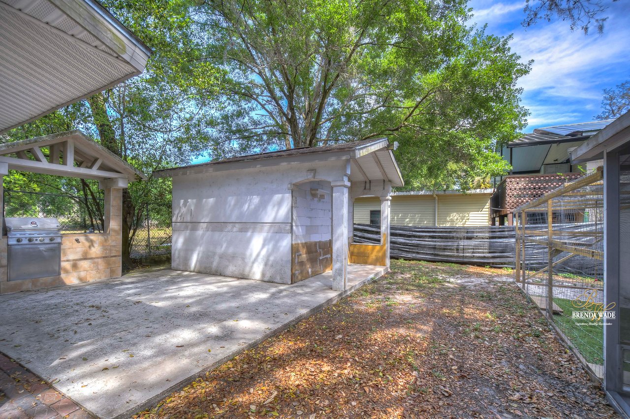 If you are looking for an updated and well maintained house, with no hoa or cdd then you have found your place. As soon as you arrive you will find a long driveway, with plenty of parking for whatever you please. The home also has a spacious covered carport. After entering through the covered front porch you are welcomed into an efficient floor plan without an inch of wasted space! Ceramic tile covers the floors throughout the home, so keeping the home clean is a breeze!. The kitchen features a beautiful stainless steel farmhouse sink, electric range, microwave and dishwasher. In the oversized master you will find a full length double closet, and a handicap accessible walk in tub in the master bathroom. There is a large utility room with great storage as well as washer and dryer hookups. Once you exit the rear of the home you see what truly makes this house special. There is a covered and screened lanai as you exit. The large backyard is fully fenced and very private. In the backyard you will find two block storage buildings, as well as a wonderful outdoor kitchen with a gas grill and sink! There is also a large enclosure for cats, chickens or any other animals you wish to keep safe in your backyard. There is a grocery store, gym, bank restaurants, and more within a mile from the house, many necessities and conveniences at your disposal with or without a car! You Won’t find another home that offers so much at this price! View the home virtually with this link: my.matterport.com/show/?m=oeE3ZFEHLUP&mls=1