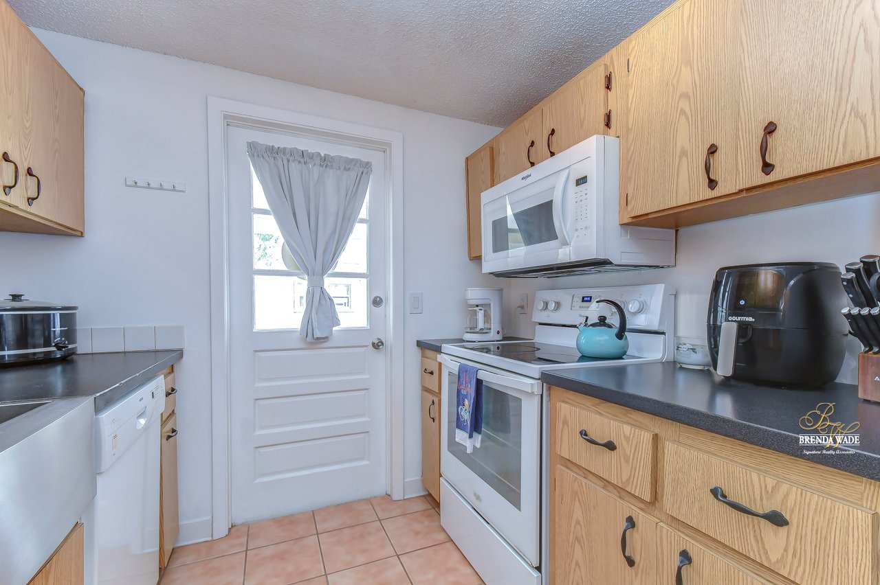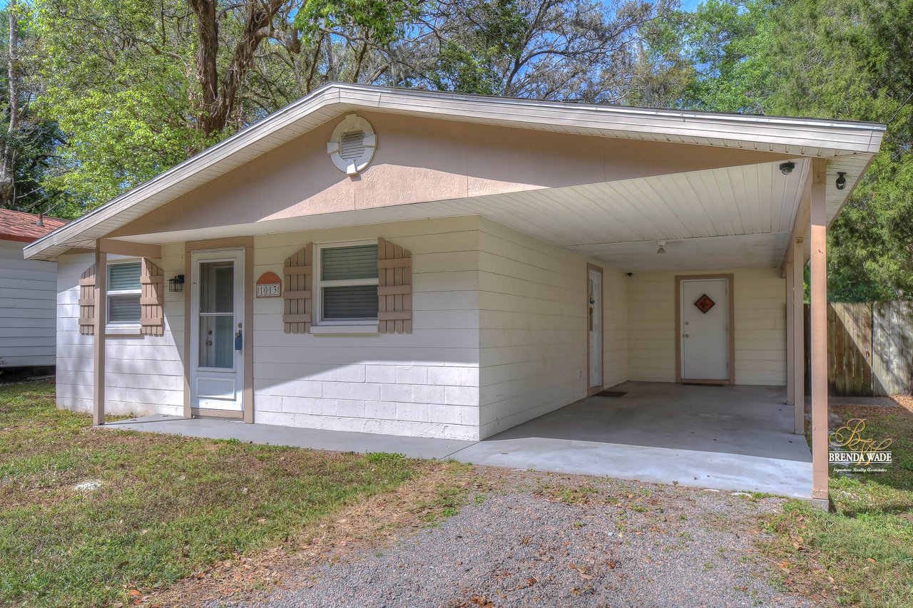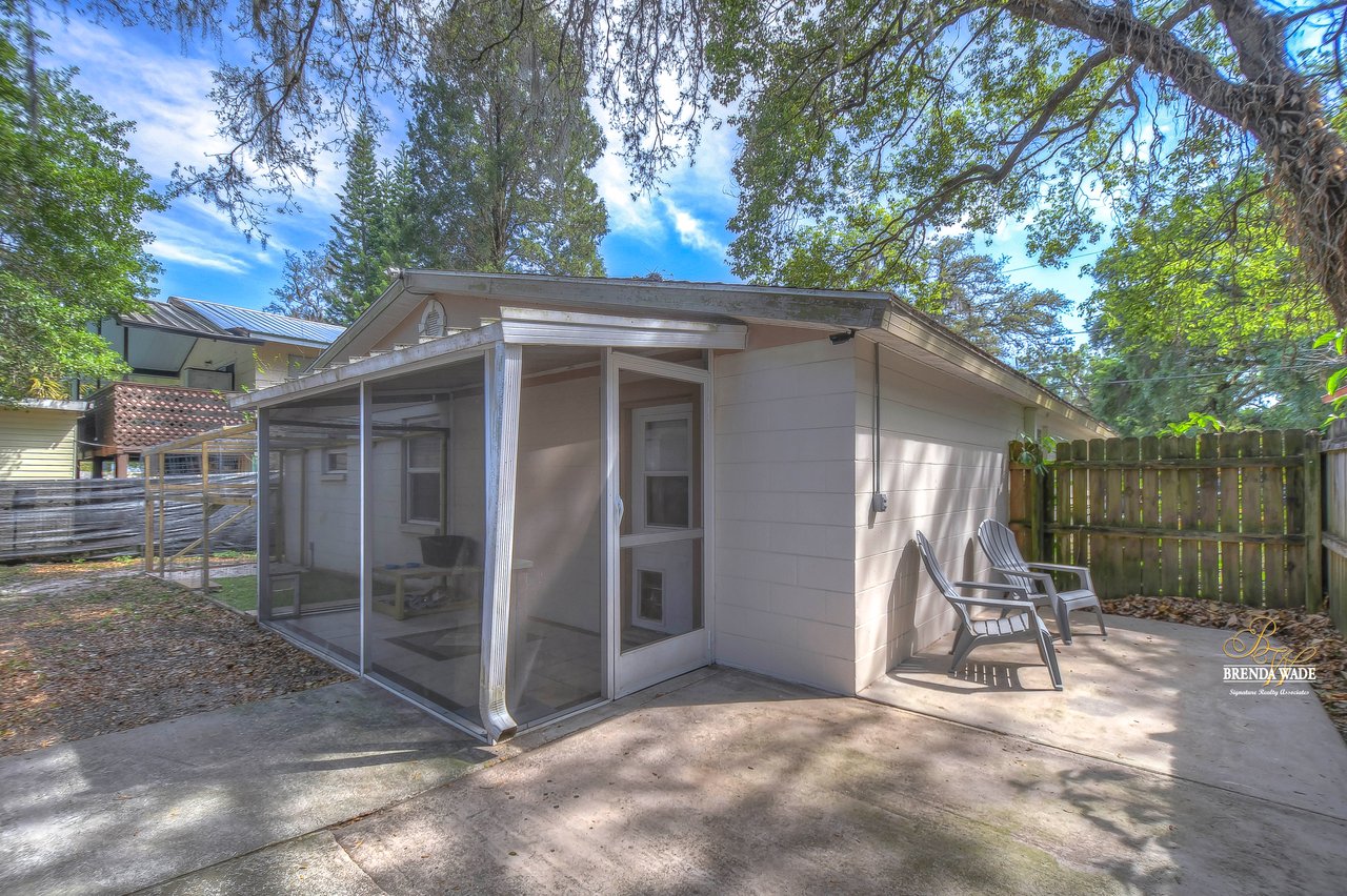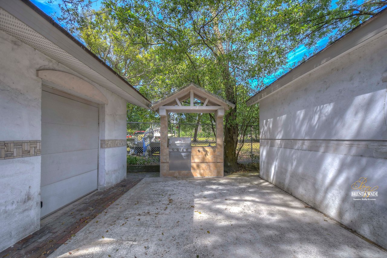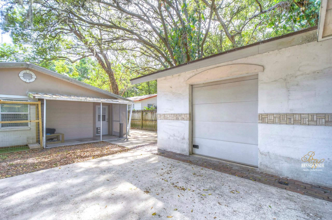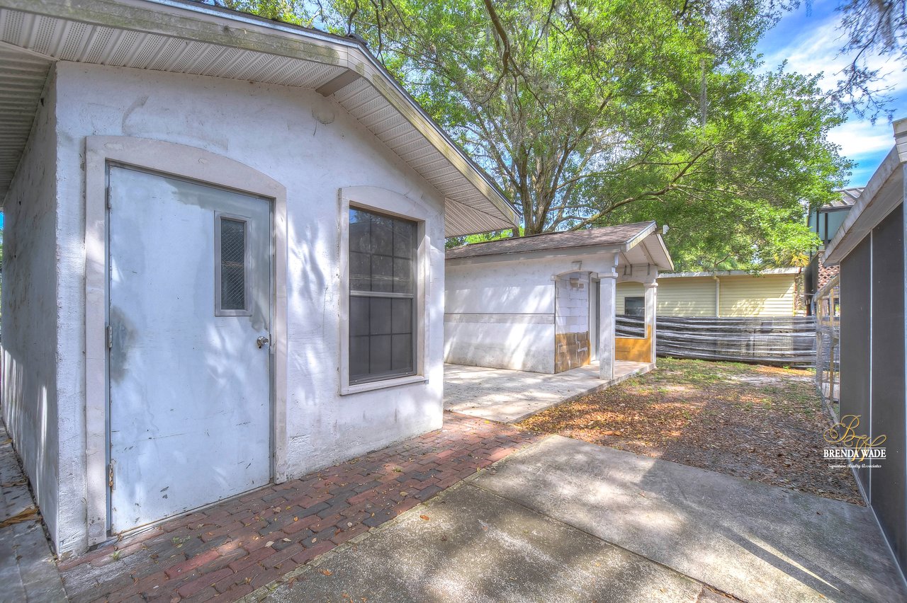 If you are looking for an updated and well maintained house, with no hoa or cdd then you have found your place. As soon as you arrive you will find a long driveway, with plenty of parking for whatever you please. The home also has a spacious covered carport. After entering through the covered front porch you are welcomed into an efficient floor plan without an inch of wasted space! Ceramic tile covers the floors throughout the home, so keeping the home clean is a breeze!. The kitchen features a beautiful stainless steel farmhouse sink, electric range, microwave and dishwasher. In the oversized master you will find a full length double closet, and a handicap accessible walk in tub in the master bathroom. There is a large utility room with great storage as well as washer and dryer hookups. Once you exit the rear of the home you see what truly makes this house special. There is a covered and screened lanai as you exit. The large backyard is fully fenced and very private. In the backyard you will find two block storage buildings, as well as a wonderful outdoor kitchen with a gas grill and sink! There is also a large enclosure for cats, chickens or any other animals you wish to keep safe in your backyard. There is a grocery store, gym, bank restaurants, and more within a mile from the house, many necessities and conveniences at your disposal with or without a car! You Won’t find another home that offers so much at this price! View the home virtually with this link: my.matterport.com/show/?m=oeE3ZFEHLUP&mls=1