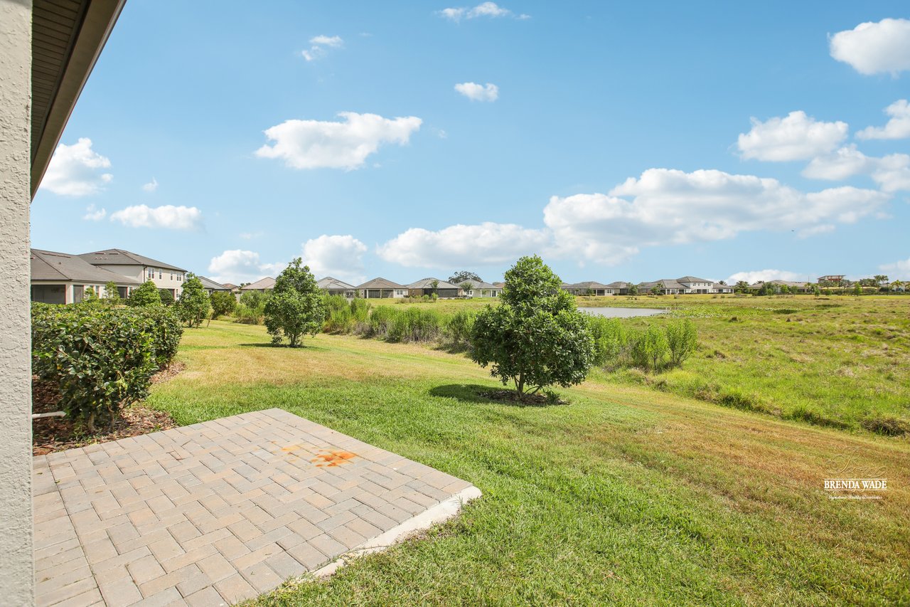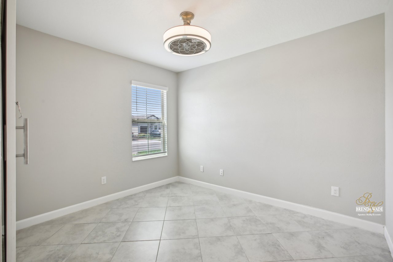 Don't miss your chance to own this stunning one-story villa on a spacious corner lot! Welcome to your beautifully updated 2-bedroom home with a flexible office/den, custom accent walls, a one-car garage, and a covered, screened lanai overlooking a serene pond--ideal for morning coffee or unwinding at sunset. Located in the highly sought-after 55+ community of Medley at Mirada by Lennar, this home offers an exceptional lifestyle. Residents enjoy a vibrant clubhouse filled with events and activities, including a heated pool. Plus, the area's largest man-made lagoon is opening soon, with a dedicated section exclusively for Medley residents! Inside, you'll find soaring ceilings, elegant crown molding, and ceramic tile throughout the main living areas. The gourmet kitchen features quartz countertops, staggered cabinetry with crown molding, a large island with bar seating, and a custom tile backsplash--perfect for both entertaining and everyday living. Additional highlights include accent walls in the great room, a custom barn door that transforms the den into a private office, and a spacious primary suite with designer wall accents, a spa-like en-suite bathroom, and a walk-in closet. An additional bedroom is spacious in size with its full bath. Outside, you'll enjoy Florida year-round within the screened patio overlooking the conversation. Living in Mirada means enjoying resort-style amenities like Metro Lagoon's expansive Crystal Lagoon, sandy beaches, swim-up bars, kayaking, paddleboarding, a Wibit water obstacle course, and more. Plus, the Connected City infrastructure provides some of the fastest internet speeds in the nation. HOA includes: Basic cable and internet, lawn care, exterior painting, and roof maintenance--offering you true peace of mind and maintenance-free living.