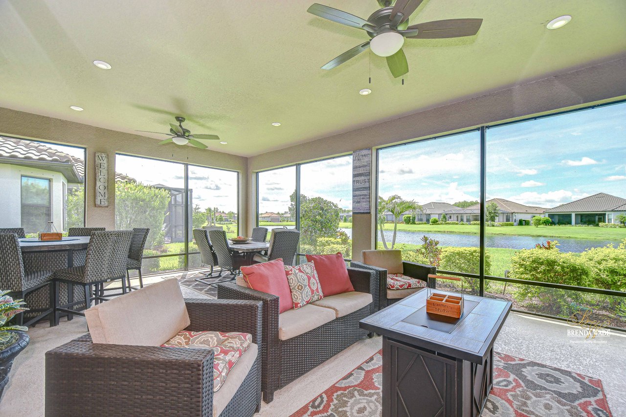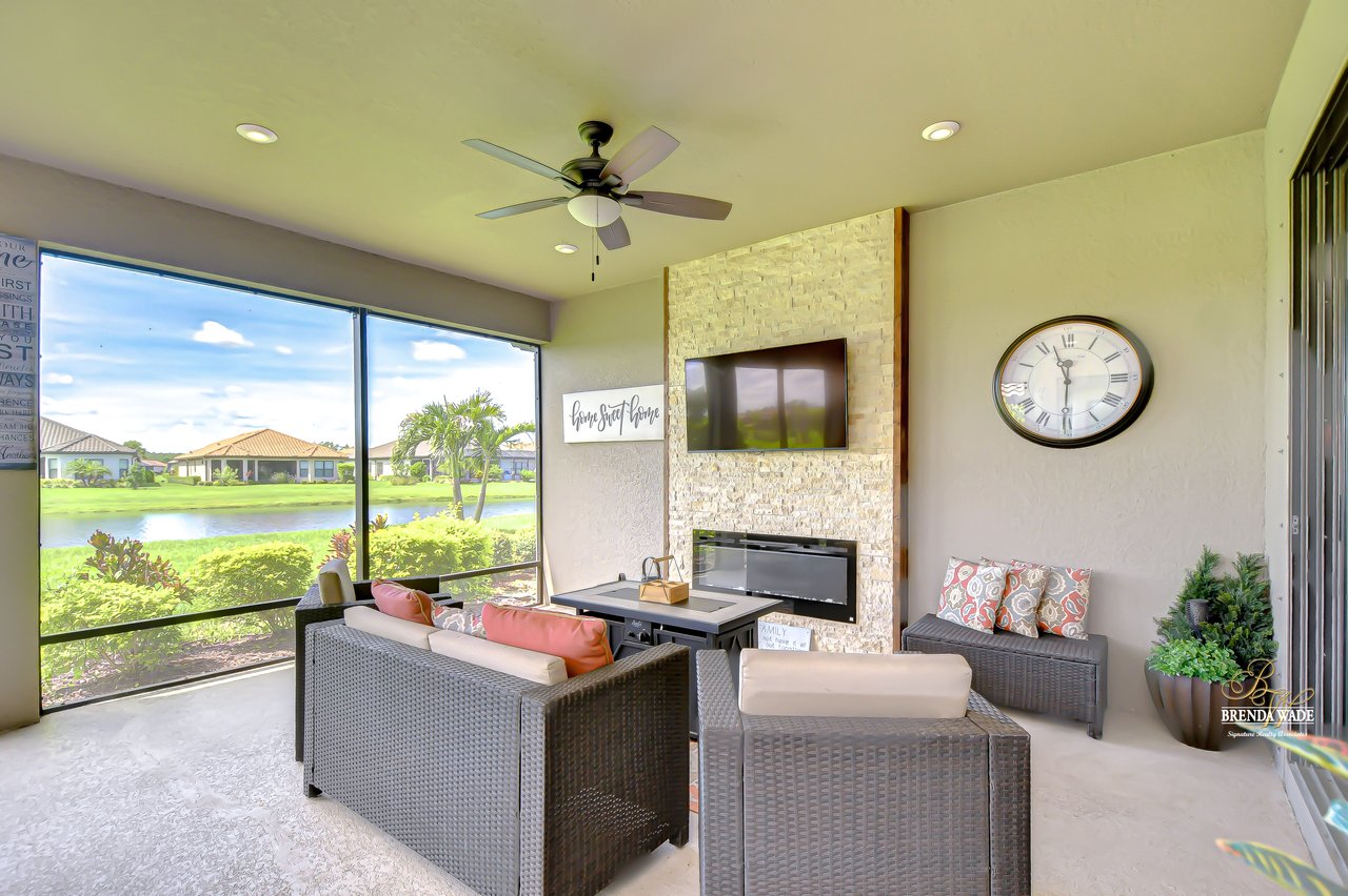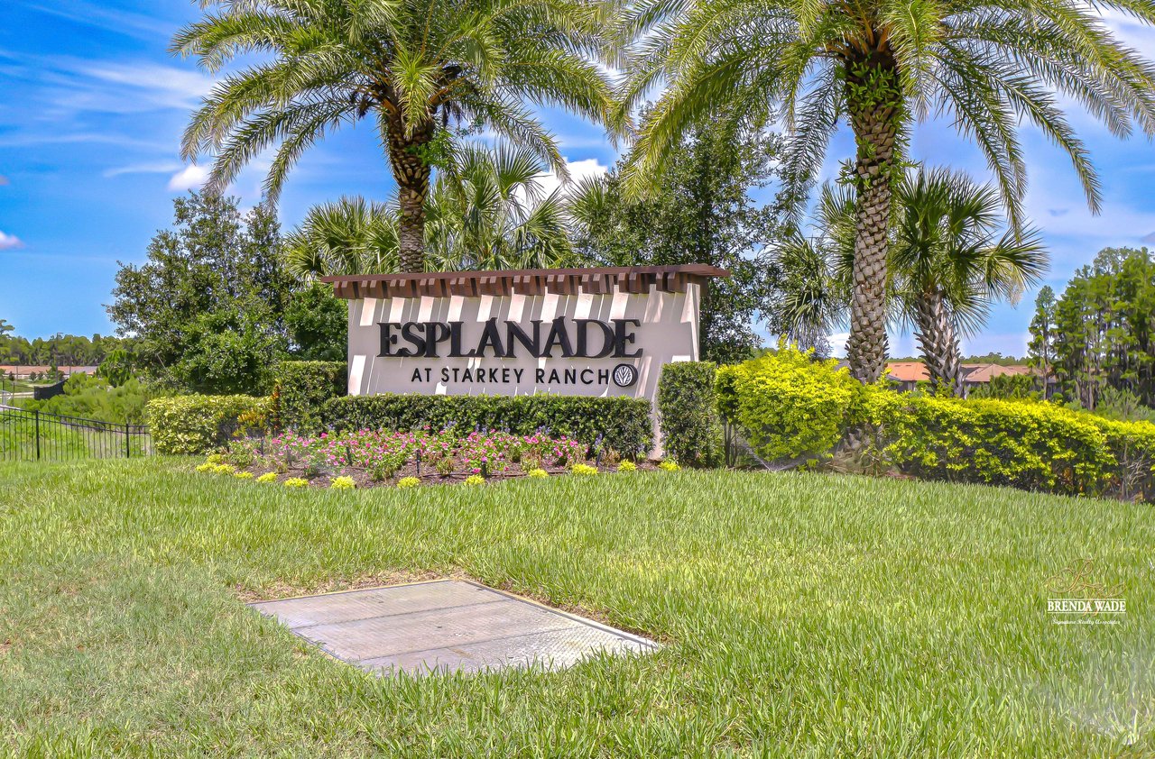 Welcome home to Esplanade at Starkey Ranch--A beautiful gated community where every day feels like a getaway. Better than new and beautifully upgraded, this stunning home is located in the highly sought-after Esplanade at Starkey Ranch, a gated enclave within the award-winning Starkey Ranch master-planned community. Residents of Esplanade enjoy exclusive access to resort-style amenities designed for vibrant, inspired living. This popular Lazio floor plan by Taylor Morrison is celebrated for its open-concept design, offering 3 well-appointed bedrooms and a versatile den--perfect for today's flexible lifestyle. At the heart of the home is a chef-inspired kitchen, showcasing 42" white cabinetry, a 5-burner gas cooktop, built-in convection oven and microwave, quartz countertops, and a spacious island perfect for gathering. The kitchen flows seamlessly into the open dining and living areas, highlighted by a wall of glass sliders that extend your living space to the outdoors. The primary suite is a serene retreat with peaceful water views, an expansive walk-in closet, and a spa-like bath featuring dual vanities and an oversized, luxury shower. One secondary bedroom functions as a private en-suite with its own full bath and walk-in closet, while the third guest room--tucked on the opposite side of the home--features a charming bay window and nearby full bath, creating a comfortable guest suite. Step out to the extended lanai--complete with fireplace and tranquil pond views--ideal for relaxing or entertaining year-round. Additional upgrades include a custom tandem garage with extra storage, landscape lighting, rain gutters, new designer lighting, and more. Living in Esplanade means more than just a beautiful home--it's a lifestyle. Lawn maintenance is included in the HOA, allowing you to spend more time enjoying the exclusive resort-inspired amenities like tennis, pickleball, fitness center, clubhouse, pool, and golf cart-friendly trails.
