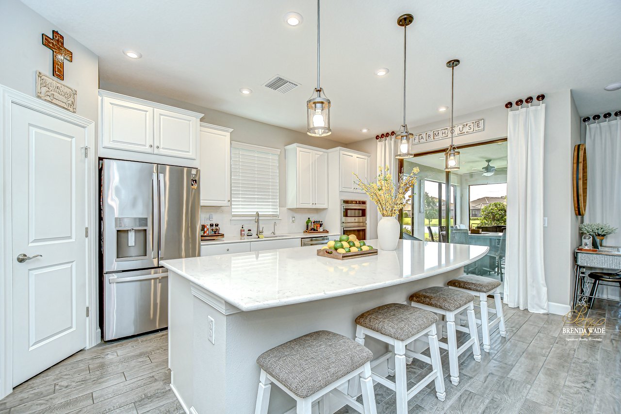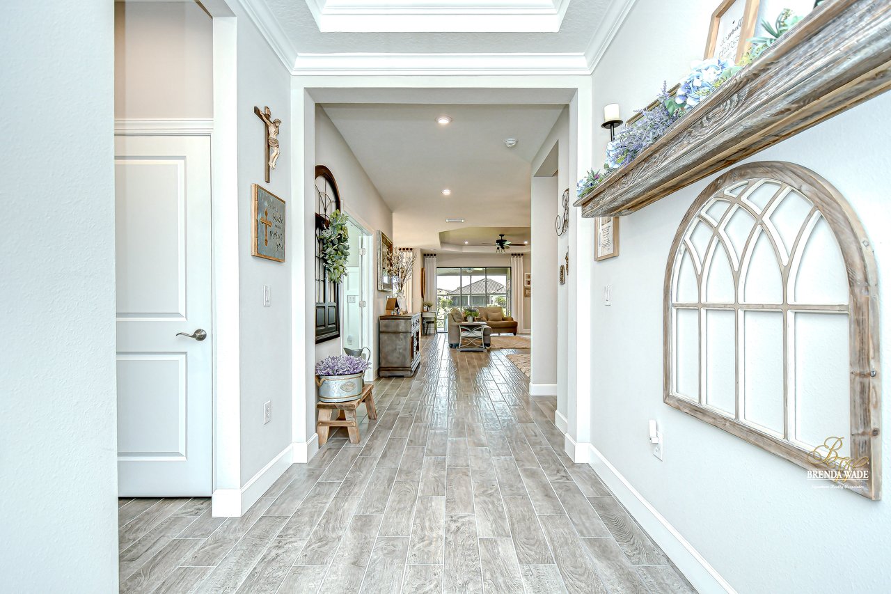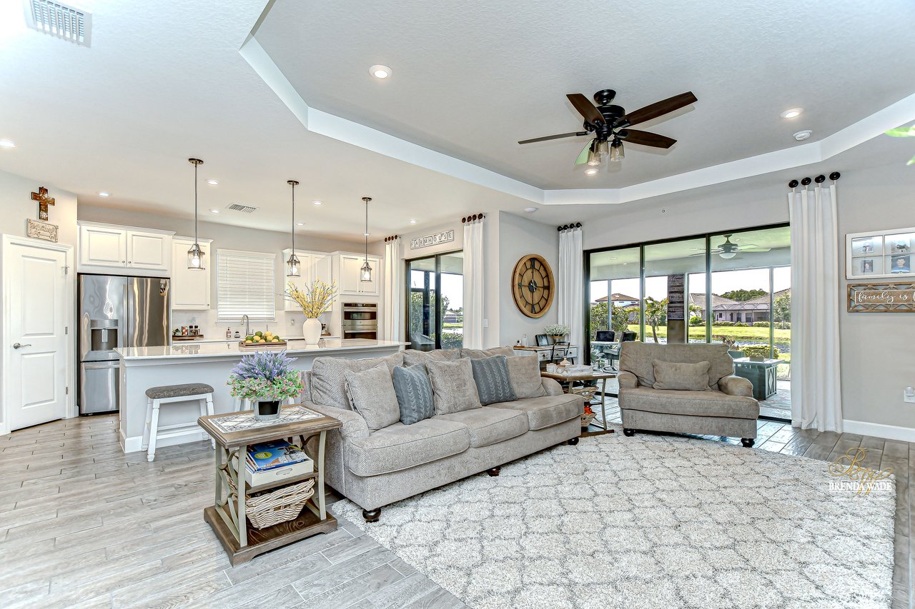 Welcome home to Esplanade at Starkey Ranch--A beautiful gated community where every day feels like a getaway. Better than new and beautifully upgraded, this stunning home is located in the highly sought-after Esplanade at Starkey Ranch, a gated enclave within the award-winning Starkey Ranch master-planned community. Residents of Esplanade enjoy exclusive access to resort-style amenities designed for vibrant, inspired living. This popular Lazio floor plan by Taylor Morrison is celebrated for its open-concept design, offering 3 well-appointed bedrooms and a versatile den--perfect for today's flexible lifestyle. At the heart of the home is a chef-inspired kitchen, showcasing 42" white cabinetry, a 5-burner gas cooktop, built-in convection oven and microwave, quartz countertops, and a spacious island perfect for gathering. The kitchen flows seamlessly into the open dining and living areas, highlighted by a wall of glass sliders that extend your living space to the outdoors. The primary suite is a serene retreat with peaceful water views, an expansive walk-in closet, and a spa-like bath featuring dual vanities and an oversized, luxury shower. One secondary bedroom functions as a private en-suite with its own full bath and walk-in closet, while the third guest room--tucked on the opposite side of the home--features a charming bay window and nearby full bath, creating a comfortable guest suite. Step out to the extended lanai--complete with fireplace and tranquil pond views--ideal for relaxing or entertaining year-round. Additional upgrades include a custom tandem garage with extra storage, landscape lighting, rain gutters, new designer lighting, and more. Living in Esplanade means more than just a beautiful home--it's a lifestyle. Lawn maintenance is included in the HOA, allowing you to spend more time enjoying the exclusive resort-inspired amenities like tennis, pickleball, fitness center, clubhouse, pool, and golf cart-friendly trails.
