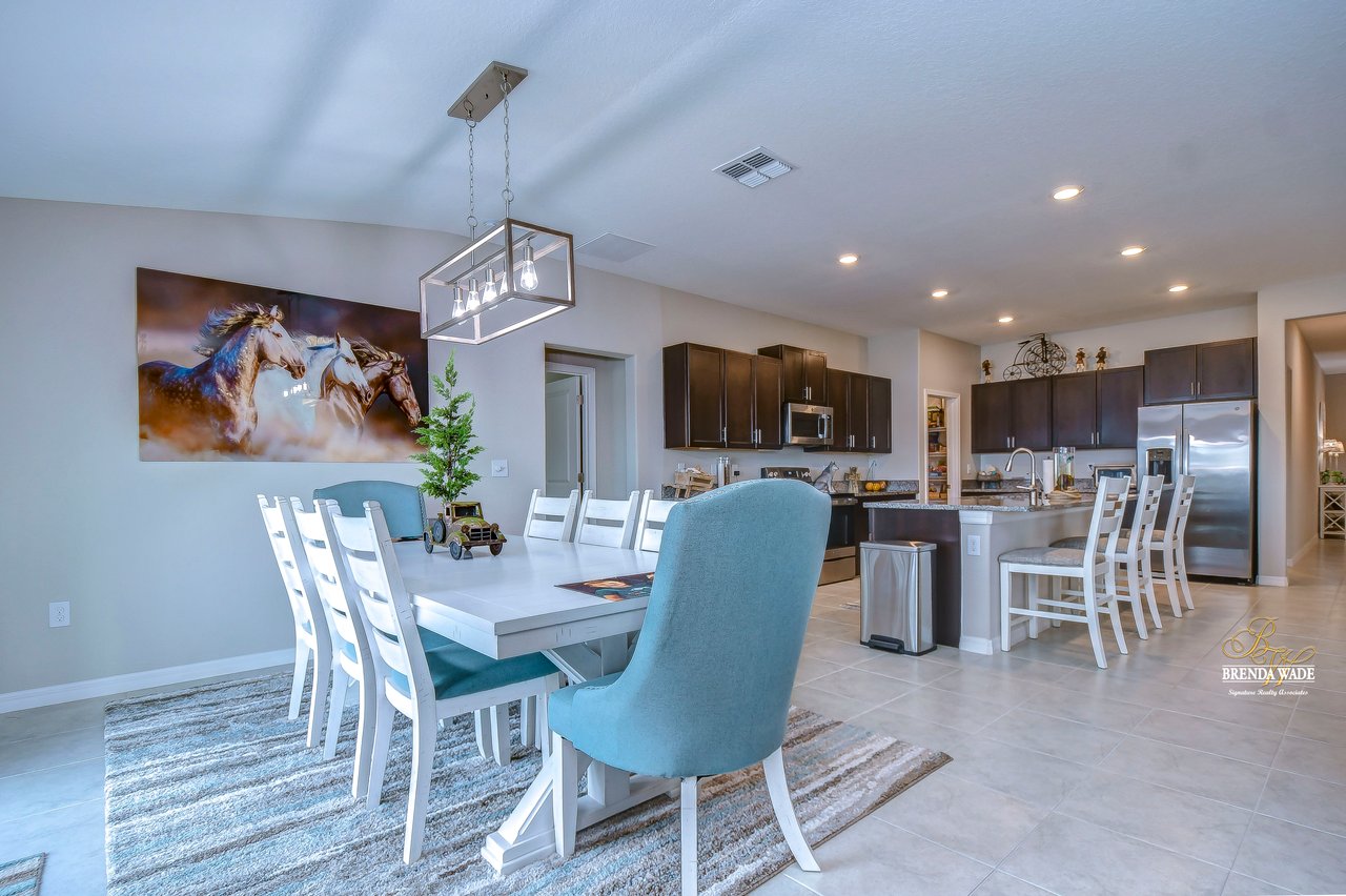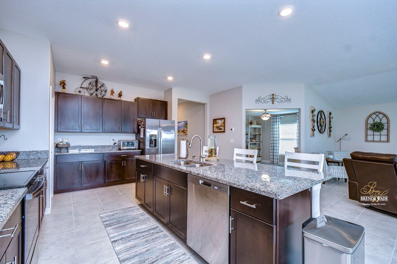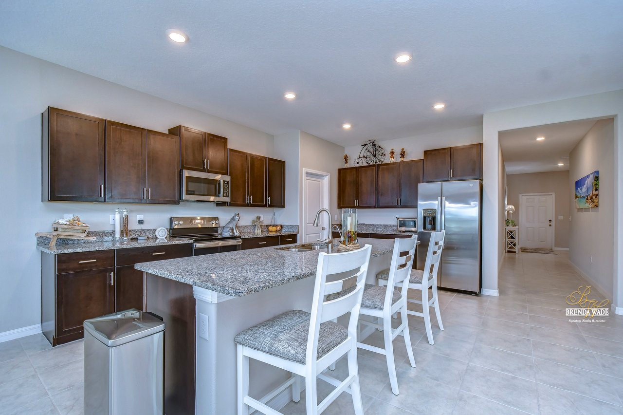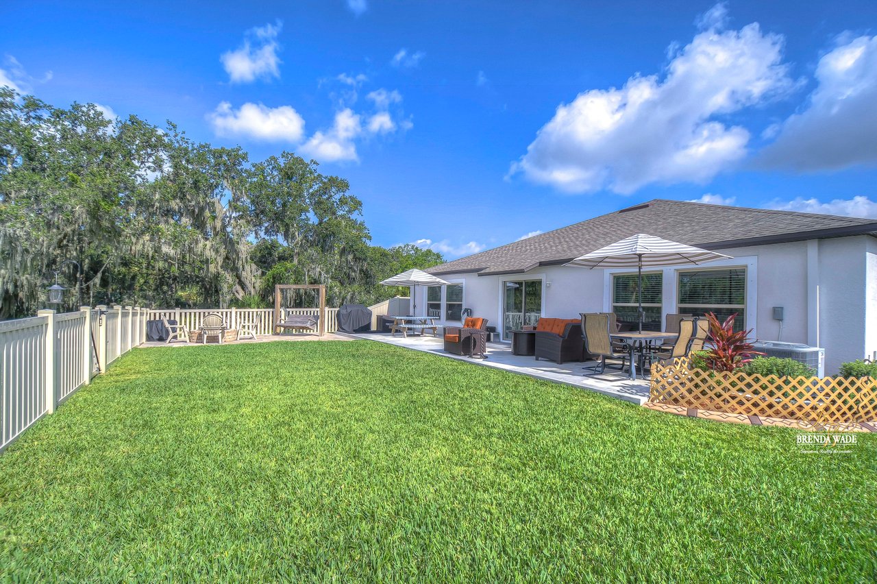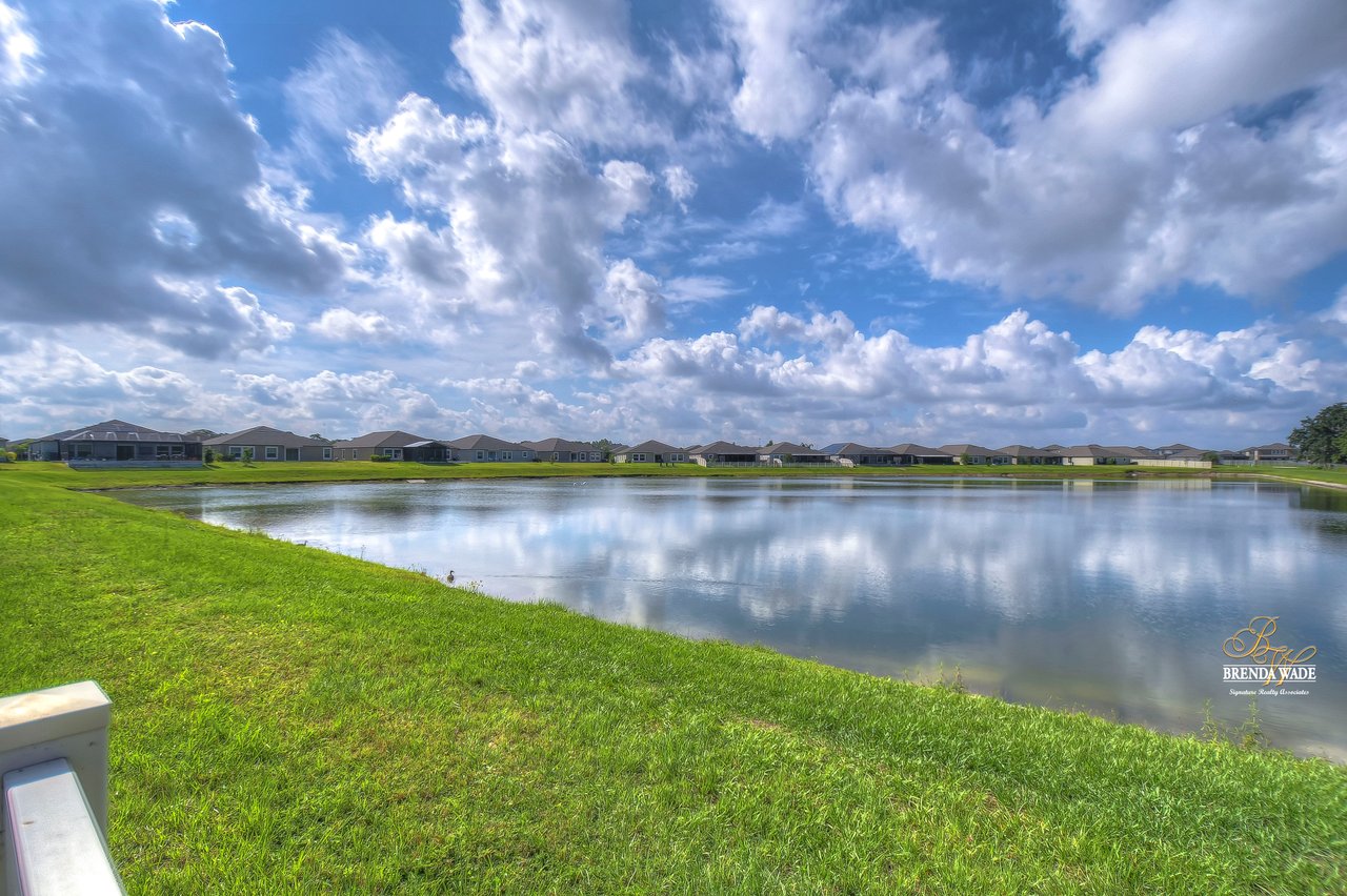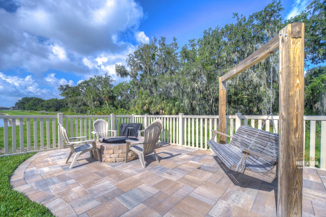 Welcome to your dream home! Prepare to be captivated by the open-concept design of this exquisite one-story newly built Santa Fe home! Thoughtfully situated on the last lot of a dead-end street surrounded by conservation and breathtaking water views! Nothing says welcome home like this warm and inviting triple split floor plan! The beautiful kitchen, a focal point overlooking the main living areas, is a culinary delight! Boasting an over-sized island and huge walk-in pantry, built-in stainless appliances, granite countertops, and espresso cabinets! Conversations flow seamlessly between the well-appointed kitchen and the adjacent formal dining room with slider that opens to the oversized patio! The dining room not only offers panoramic water views but also welcomes an abundance of natural light! The great room is the perfect place to enjoy spending time with family and friends! A flex room adjacent to the great room presents endless possibilities, perfect for an office, playroom, or gym! The primary suite is a true oasis boasting water views and natural light throughout with en-suite bath! The en-suite features double sinks, granite countertops, walk-in shower, and large walk-in closet! Two additional spacious bedrooms at the front of the home feature large closets and share a bath! The fourth bedroom showcases a walk-in closet and private en-suite bath, ensuring privacy and comfort for guests or family members! Prepare to be captivated once again as you step into the backyard, a true masterpiece that showcases captivating water views and conservation! Take a minute to take it all in while sitting around the firepit! With neighbors on one side only and a privacy fence, this is the perfect place for gatherings! Do you enjoy going to the beaches? This is the perfect house for you, less than 20 minutes from Apollo Beach and only one hour from Disney, this house is sure to check all the boxes! Start packing your bags!