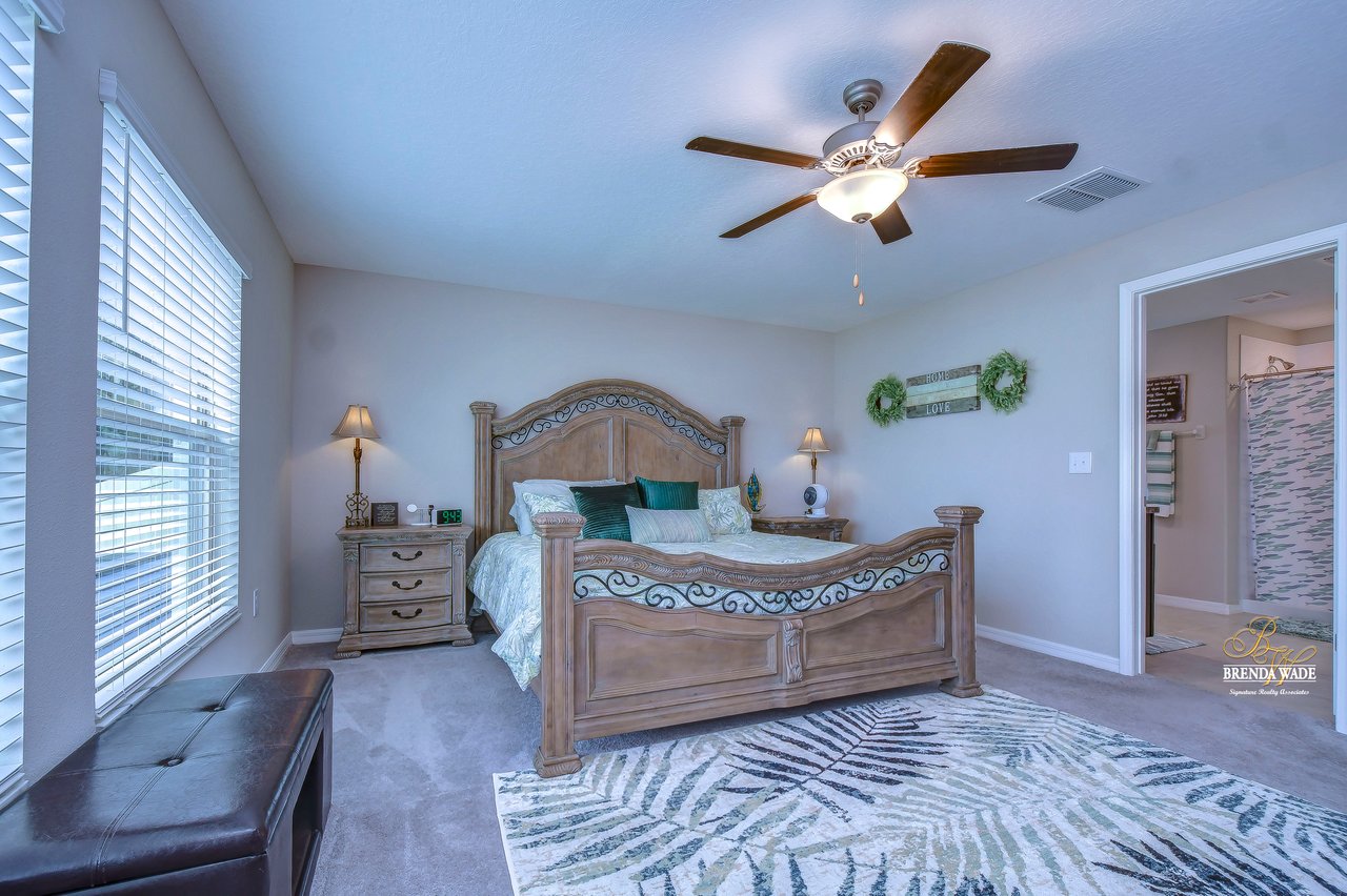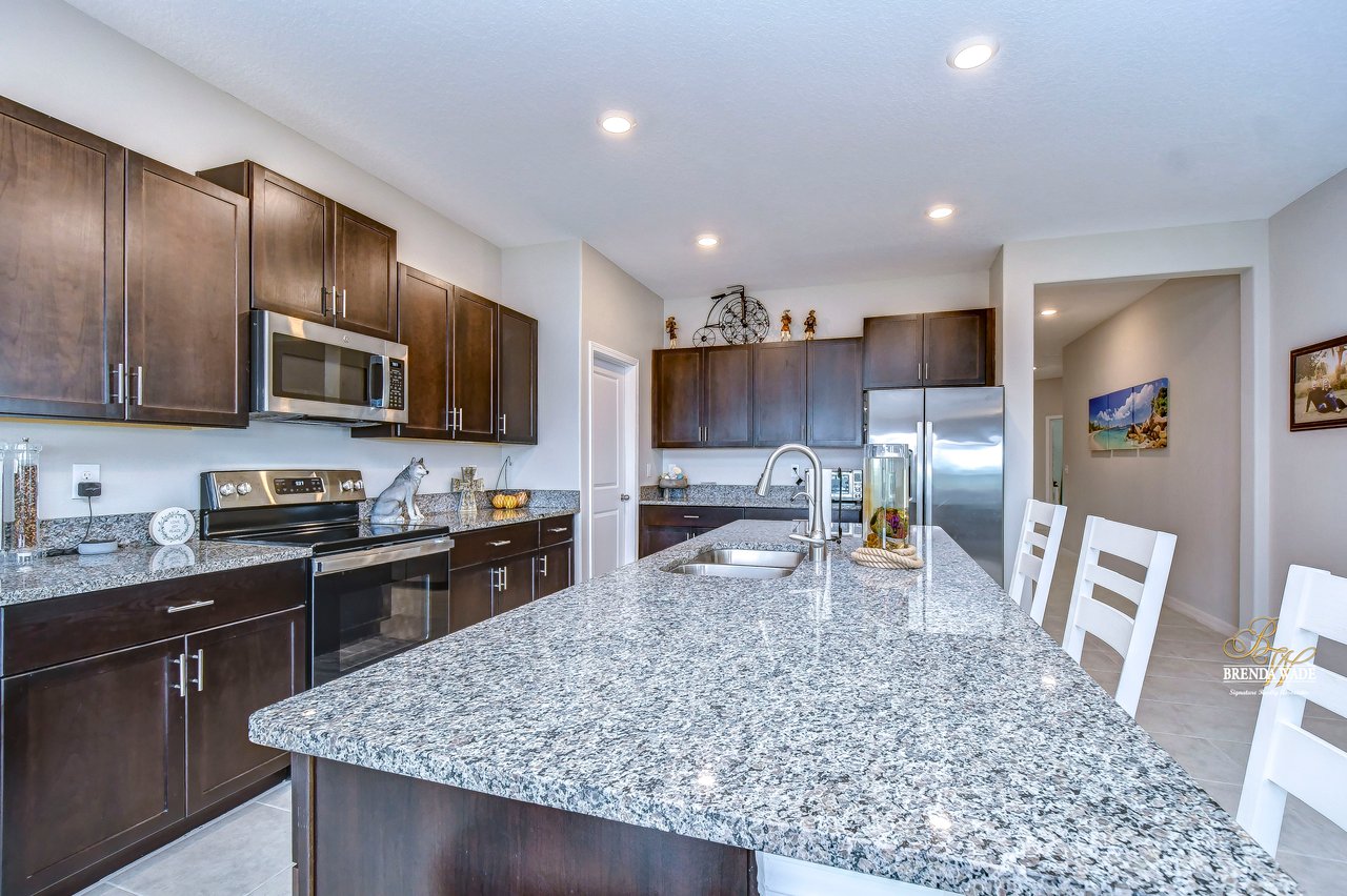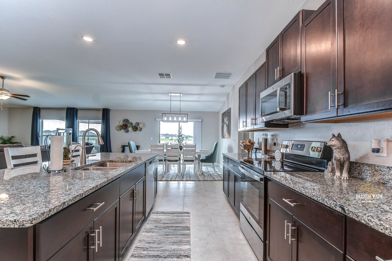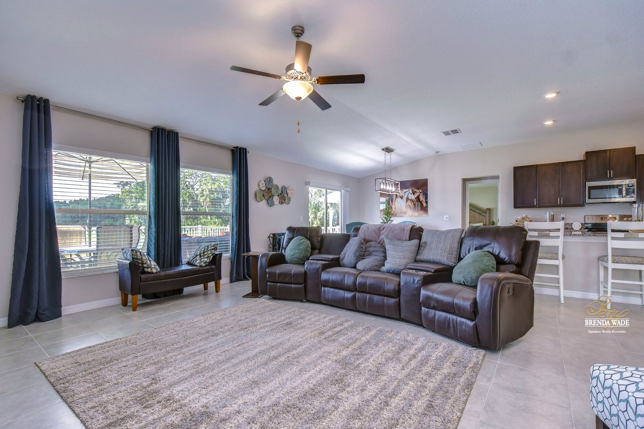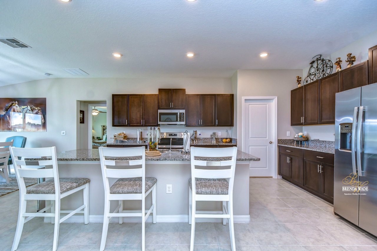 Welcome to your dream home! Prepare to be captivated by the open-concept design of this exquisite one-story newly built Santa Fe home! Thoughtfully situated on the last lot of a dead-end street surrounded by conservation and breathtaking water views! Nothing says welcome home like this warm and inviting triple split floor plan! The beautiful kitchen, a focal point overlooking the main living areas, is a culinary delight! Boasting an over-sized island and huge walk-in pantry, built-in stainless appliances, granite countertops, and espresso cabinets! Conversations flow seamlessly between the well-appointed kitchen and the adjacent formal dining room with slider that opens to the oversized patio! The dining room not only offers panoramic water views but also welcomes an abundance of natural light! The great room is the perfect place to enjoy spending time with family and friends! A flex room adjacent to the great room presents endless possibilities, perfect for an office, playroom, or gym! The primary suite is a true oasis boasting water views and natural light throughout with en-suite bath! The en-suite features double sinks, granite countertops, walk-in shower, and large walk-in closet! Two additional spacious bedrooms at the front of the home feature large closets and share a bath! The fourth bedroom showcases a walk-in closet and private en-suite bath, ensuring privacy and comfort for guests or family members! Prepare to be captivated once again as you step into the backyard, a true masterpiece that showcases captivating water views and conservation! Take a minute to take it all in while sitting around the firepit! With neighbors on one side only and a privacy fence, this is the perfect place for gatherings! Do you enjoy going to the beaches? This is the perfect house for you, less than 20 minutes from Apollo Beach and only one hour from Disney, this house is sure to check all the boxes! Start packing your bags!