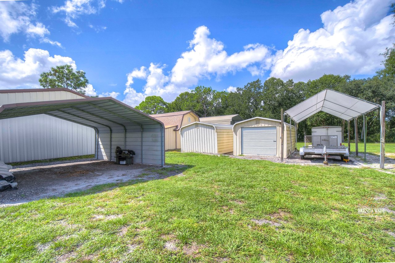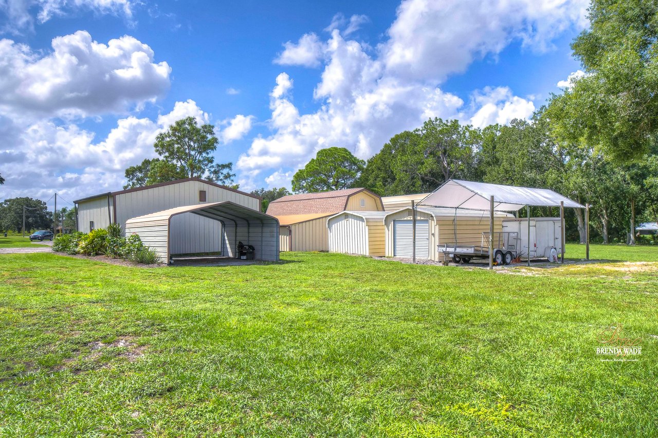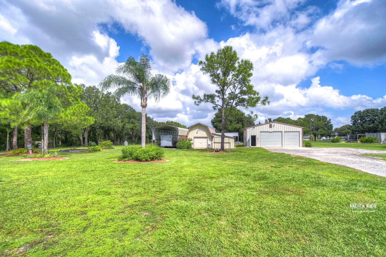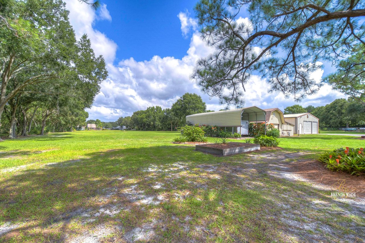 Don't miss out on this exceptional real estate opportunity! Situated on 3.99 pristine acres in the heart of Riverview, this property remains untouched by the rapid growth surrounding it. You'll appreciate the tranquility of this location, despite being just minutes away from shopping, entertainment, and restaurants. This remarkable 4-bedroom, 3-bath home has it all. Inside, the combined formal living and dining areas provide an ideal space for entertaining and hosting family gatherings. Cozy up by the beautiful wood-burning fireplace in the family room after a long day. The kitchen boasts wood cabinets, a decorative backsplash, updated appliances, a breakfast bar, and a sunny breakfast nook with views of the expansive backyard. The primary suite features large windows and a remodeled en-suite bath with granite countertops and a walk-in shower. A second suite offers a spacious walk-in closet and a private remodeled en-suite bath. The third bedroom is well-appointed with large windows, built-in features, and ample closet space. The fourth bedroom, located on the opposite side of the home, could easily serve as a media, game, or playroom. Additional features of this property include multiple storage sheds and a 30x30 garage with a half bath inside, providing the perfect space for your cars, boats, and recreational vehicles. Owning a 3.99-acre parcel of land like this is a rare and highly sought-after opportunity. Whether you dream of homesteading, enjoy outdoor activities, or simply desire a private retreat, this property offers endless possibilities. Embrace the natural beauty of this enchanting land and make it your own. Schedule your private showing today! View the home virtually with this link: my.matterport.com/show/?m=Es4kDnrEso2&mls=1