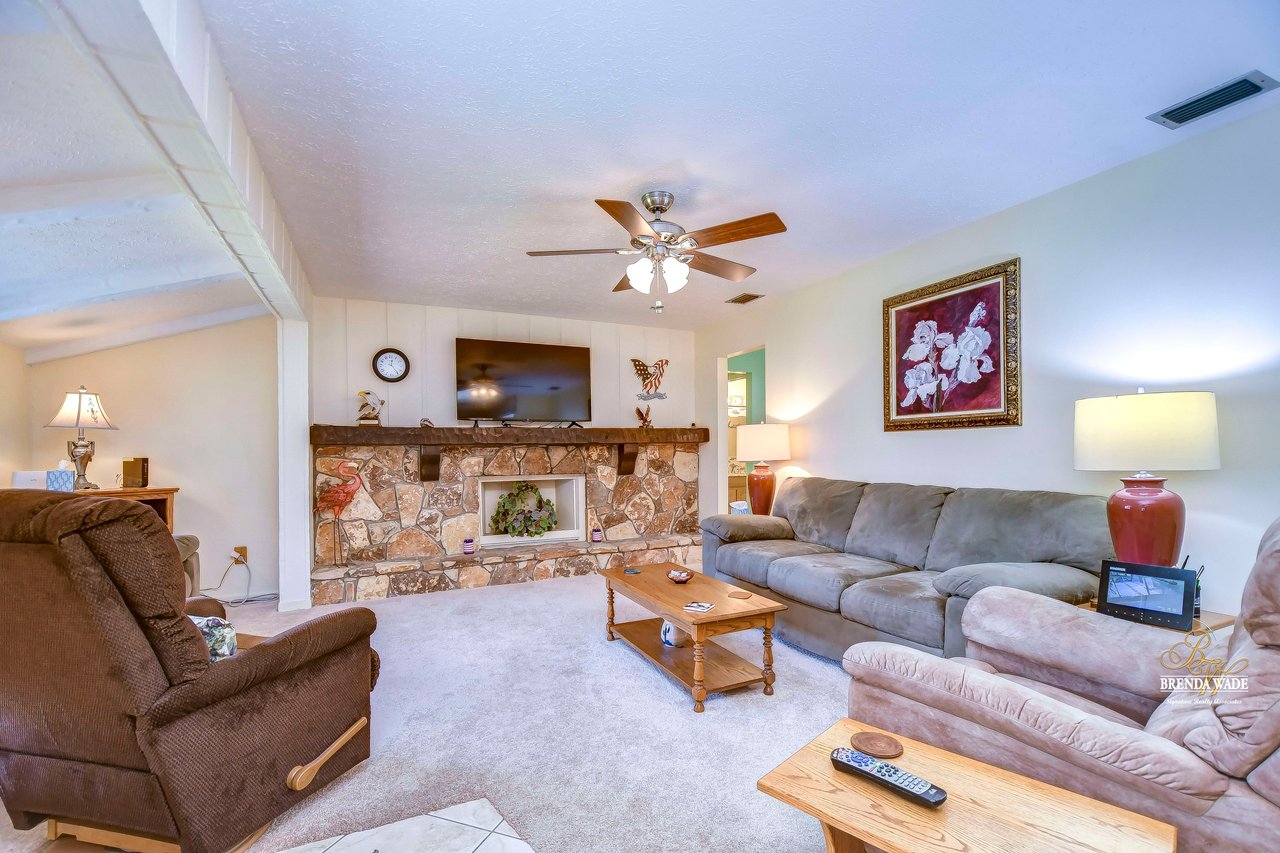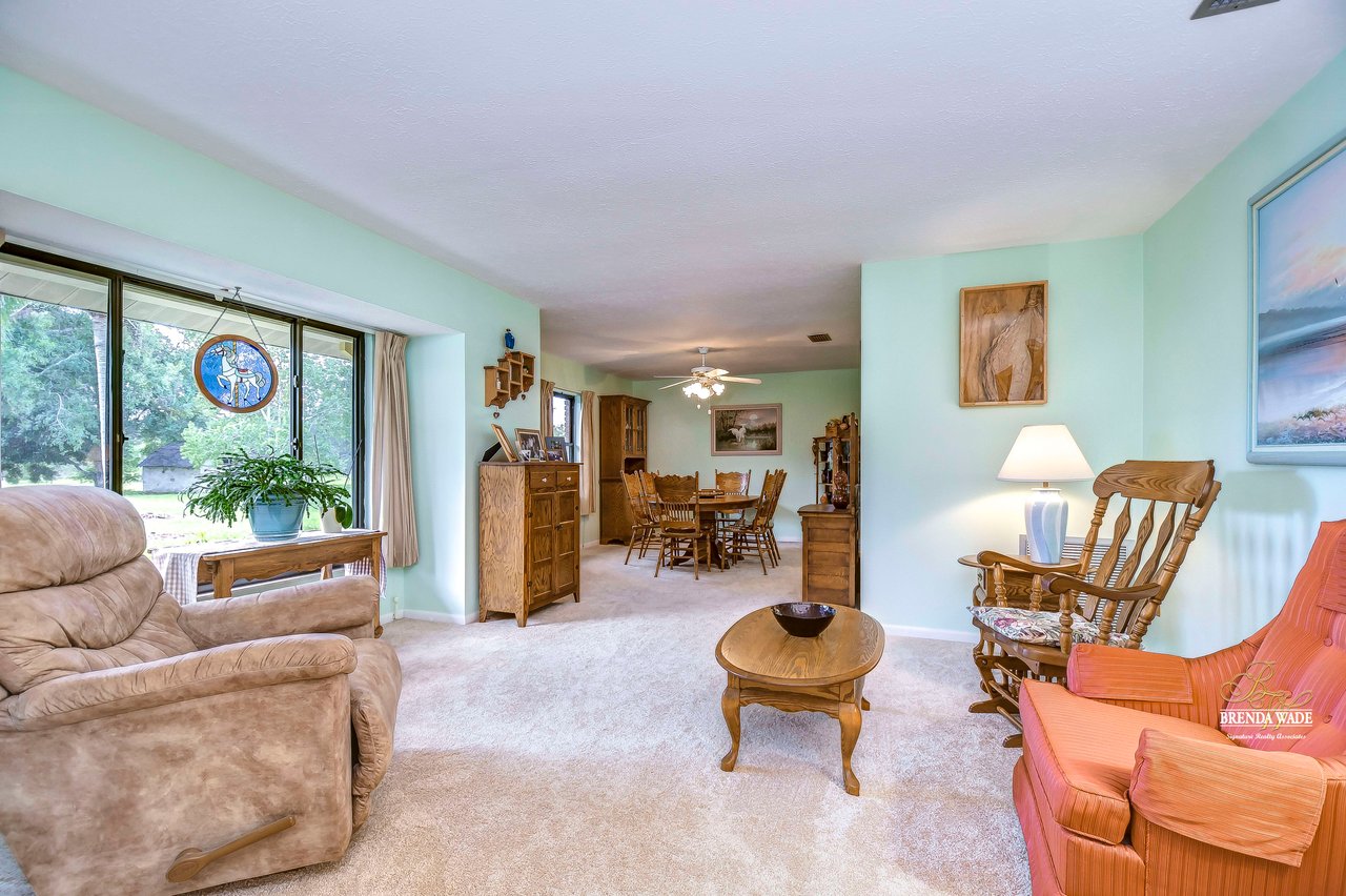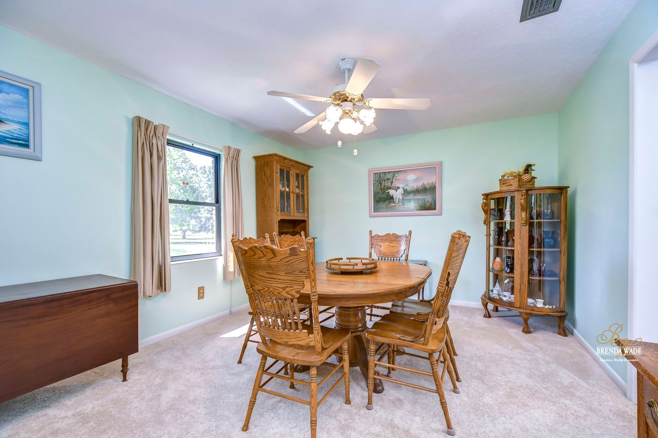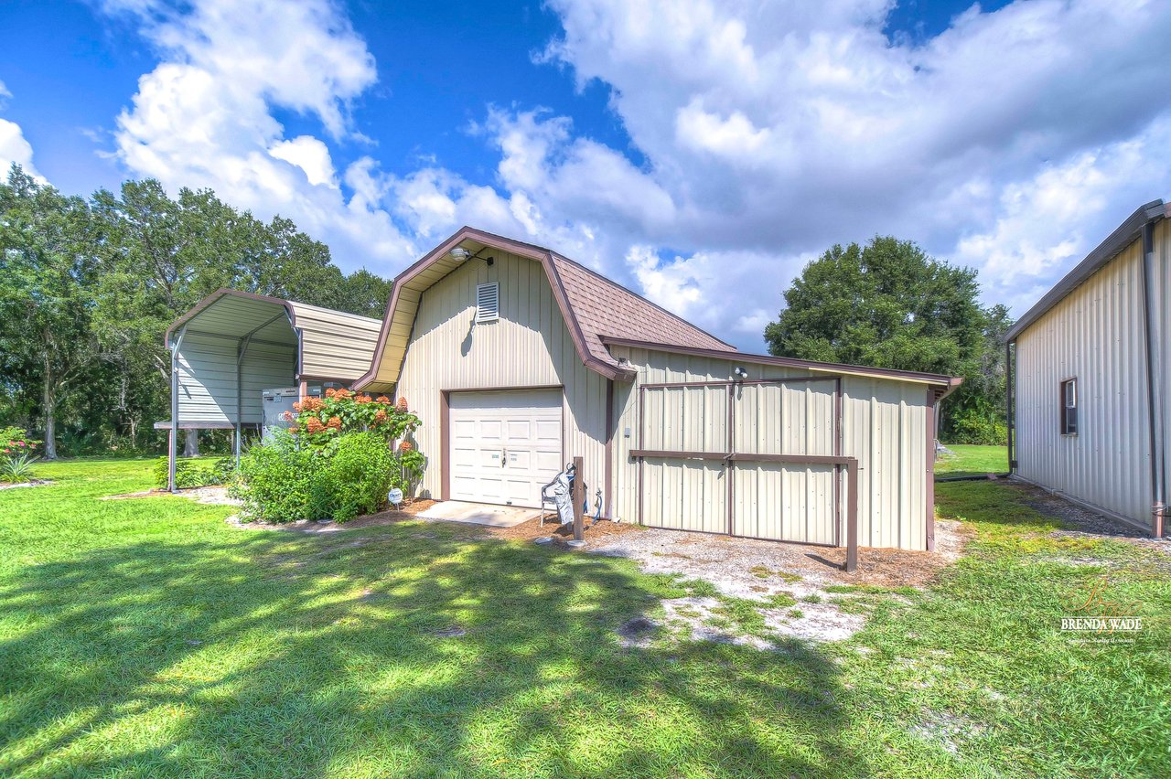 Don't miss out on this exceptional real estate opportunity! Situated on 3.99 pristine acres in the heart of Riverview, this property remains untouched by the rapid growth surrounding it. You'll appreciate the tranquility of this location, despite being just minutes away from shopping, entertainment, and restaurants. This remarkable 4-bedroom, 3-bath home has it all. Inside, the combined formal living and dining areas provide an ideal space for entertaining and hosting family gatherings. Cozy up by the beautiful wood-burning fireplace in the family room after a long day. The kitchen boasts wood cabinets, a decorative backsplash, updated appliances, a breakfast bar, and a sunny breakfast nook with views of the expansive backyard. The primary suite features large windows and a remodeled en-suite bath with granite countertops and a walk-in shower. A second suite offers a spacious walk-in closet and a private remodeled en-suite bath. The third bedroom is well-appointed with large windows, built-in features, and ample closet space. The fourth bedroom, located on the opposite side of the home, could easily serve as a media, game, or playroom. Additional features of this property include multiple storage sheds and a 30x30 garage with a half bath inside, providing the perfect space for your cars, boats, and recreational vehicles. Owning a 3.99-acre parcel of land like this is a rare and highly sought-after opportunity. Whether you dream of homesteading, enjoy outdoor activities, or simply desire a private retreat, this property offers endless possibilities. Embrace the natural beauty of this enchanting land and make it your own. Schedule your private showing today! View the home virtually with this link: my.matterport.com/show/?m=Es4kDnrEso2&mls=1