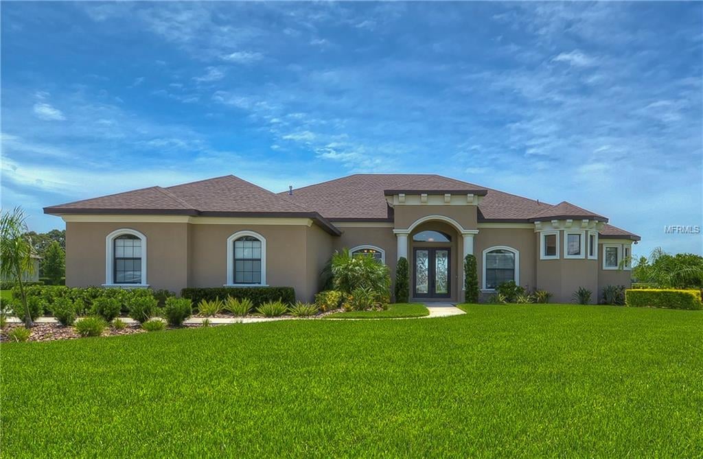 Drop dead gorgeous! This move in ready estate features all the bells and whistles! Sitting on an oversized 0.92 acre lot in the prestigious Hawk Creek Reserve gated community! Arriving at the home you will fall in love with the curb appeal and welcoming entryway with column accents and double leaded and beveled glass front doors! Upon entering the home you are greeted with elegance at every corner! Oversized tile, wide baseboards, crown molding and neutral paint colors throughout! Separate formal living and dining rooms, perfect for entertainment! Moving forward is the heart of the home, a combination kitchen and family room space! The kitchen boasts stunning 42” rich maple cabinets topped with crown, built-in stainless appliances, granite counters and center island! Bright dining nook is also open the kitchen and flooded with natural light through a large seamless window. Family room will be your favorite spot to gather and is accented with double tray ceiling with crown and oversized sliders to the outdoors! Three-way split plan offers privacy for all family members! Oversized master suite boasts his and hers walk-in closets, French doors to the lanai and en-suite with dual sinks, garden tub and spa-like walk-in shower! All three secondary bedrooms are large in size and 4th bedroom is tucked away with a pool bath at the back of the home; would make the perfect in-law suite! Outside is a lush yard with plenty of space to build your dream pool! Lanai is already plumbed for an outdoor kitchen!