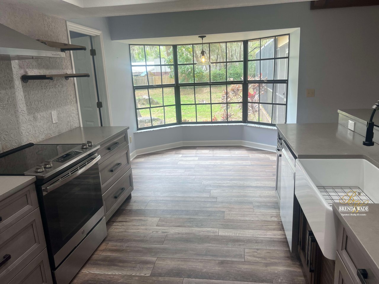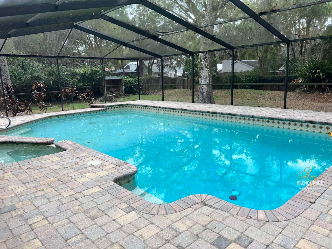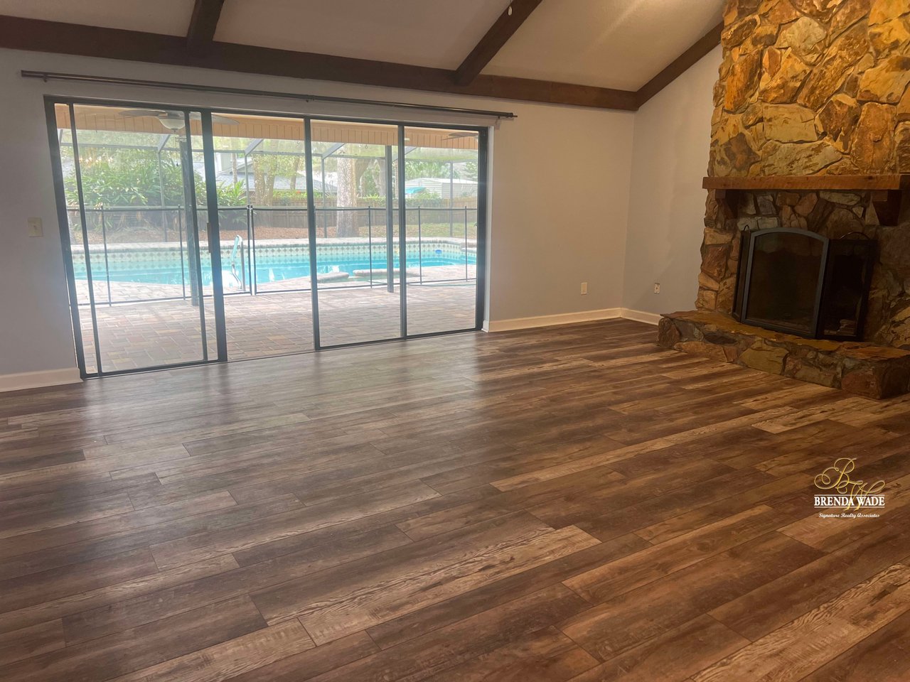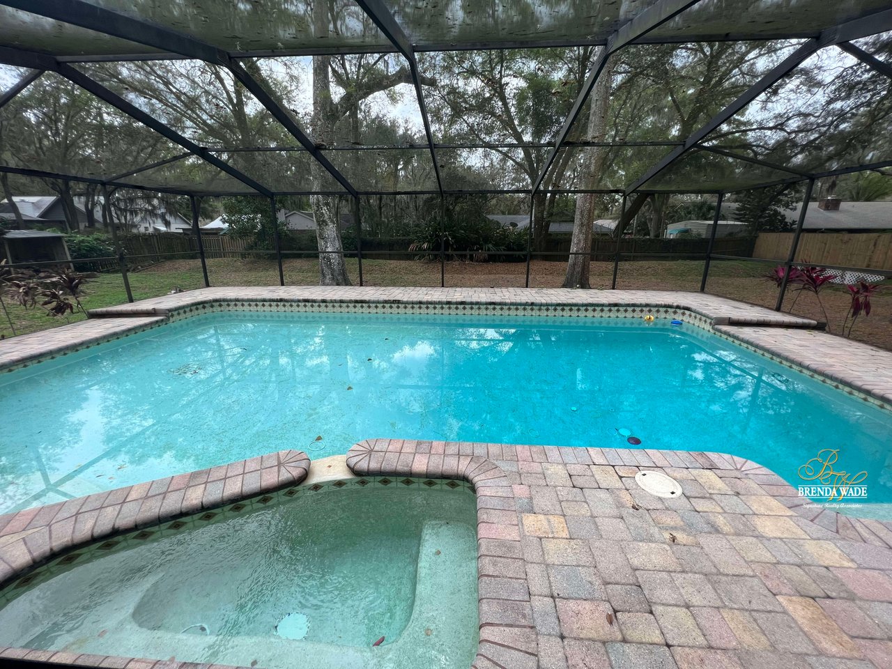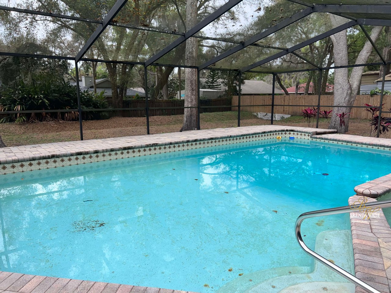 This home is sitting on a lush oversized lot with tons of updates throughout! From the moment you arrive you will love the tree-lined, quiet, cul-de-sac street and charming curb appeal! Inside you are greeted with formal living and dining rooms that are accented with oversized windows and a perfect for entertaining! Moving forward you will find the heart of the home! The open family room, kitchen and nook space! Just imagine your family gathering in this stunning room with beamed, vaulted ceilings, grand sliders leading to the lanai and a cozy wood burning fireplace! Kitchen features stainless appliances, plenty of counter and cabinet space and a large breakfast bar! Enjoy casual weekday meals at the bright breakfast nook with charming bay windows overlooking the tranquil backyard! Master suite is secluded with his & hers walk-in closet and En-suite bath offering dual vanities and pretty seamless glass shower! Three more spacious bedrooms are privately tucked away on the opposite side of the home, each offering a walk-in closet! Pavered, screened and covered lanai with a sparkling swimming pool will be one of your favorite places to kick back and relax! All overlooking a lush backyard!