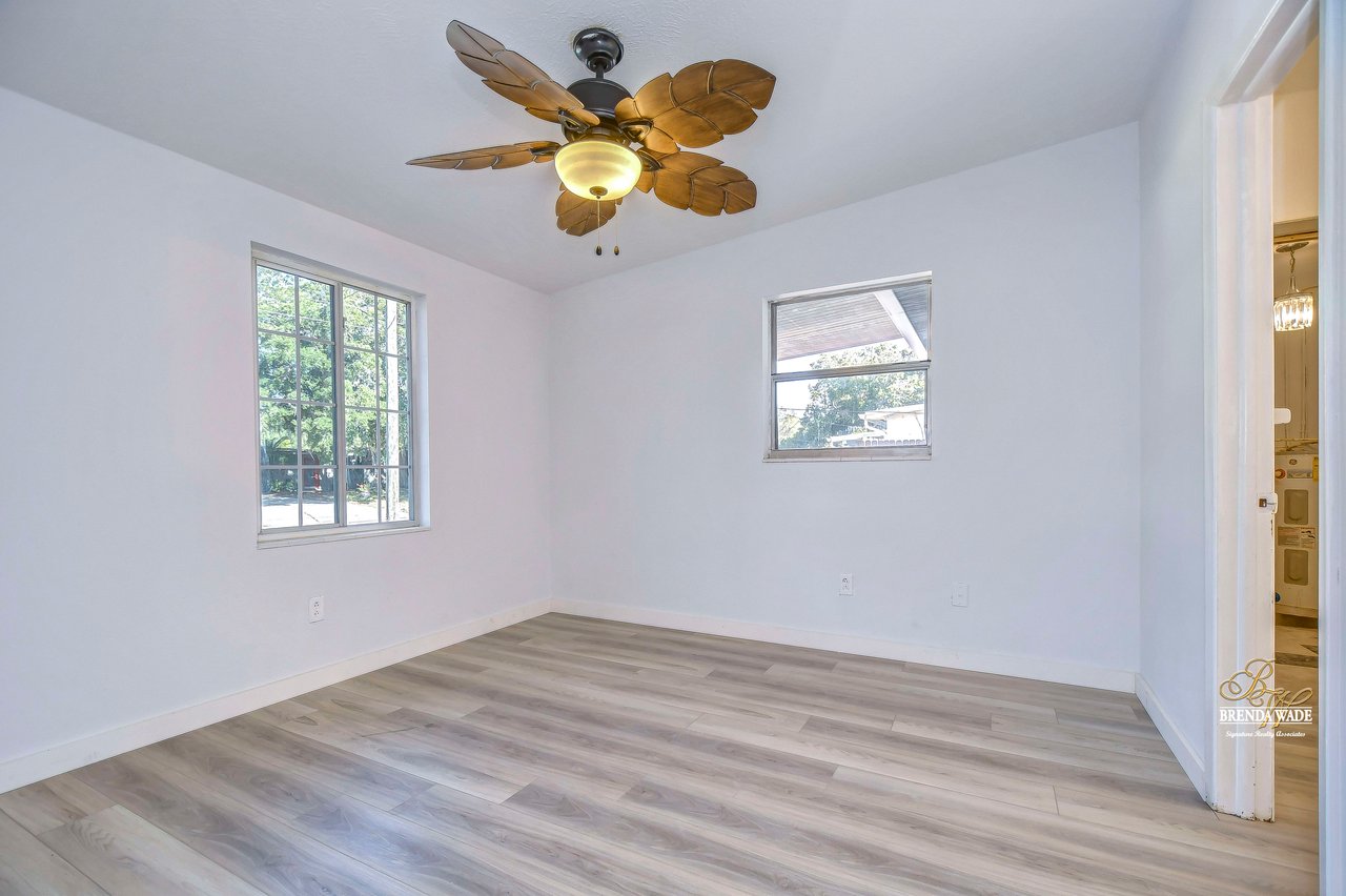 Welcome to this delightful 3-bedroom, 1.5-bath family home situated in the heart of Brandon, featuring No HOA and No CDD fees! Homeowners just added a BRAND NEW Metal Roof, and hurricane impact windows for added peace of mind! The entire interior has been freshly painted and new luxury vinyl flooring has been added throughout. Enter through the leaded glass door into a spacious formal living and dining area, perfect for entertaining guests. The well-equipped kitchen boasts modern stainless-steel appliances, white cabinets, granite countertops, and a convenient pass-through window to the Florida room--ideal for outdoor gatherings. The family room, located at the rear of the home, offers picturesque backyard views and sliders that open to the versatile Florida room. The primary suite features new luxury vinyl flooring, large windows, and a spacious closet for all your storage needs. Two additional bedrooms, also with new luxury vinyl flooring and ample closet space, share access to an updated bathroom. You'll love the Florida room, perfect for year-round relaxation--whether you're unwinding with a good book, enjoying morning coffee, or hosting gatherings with friends and family. The large backyard offers a blank canvas for your creative vision--imagine building your dream pool or a lush garden. With no HOA or CDD restrictions, you have the freedom to store your toys hassle-free. Conveniently located close to shopping, dining, excellent schools, and less than an hour from Disney and Florida's beautiful beaches, this charming residence is ready for you to make it your own. Schedule your showing today!