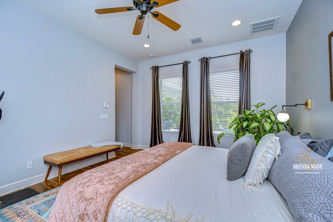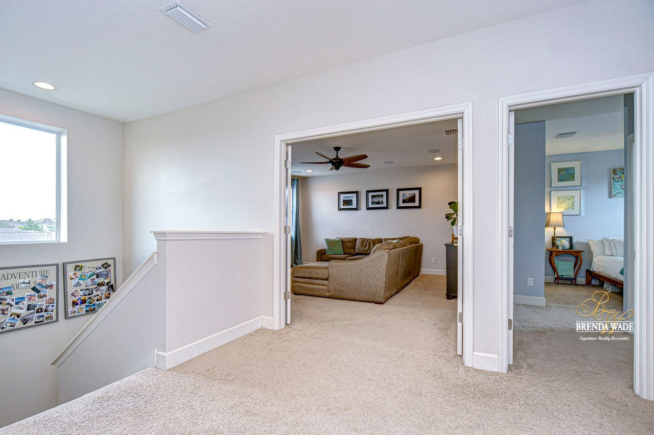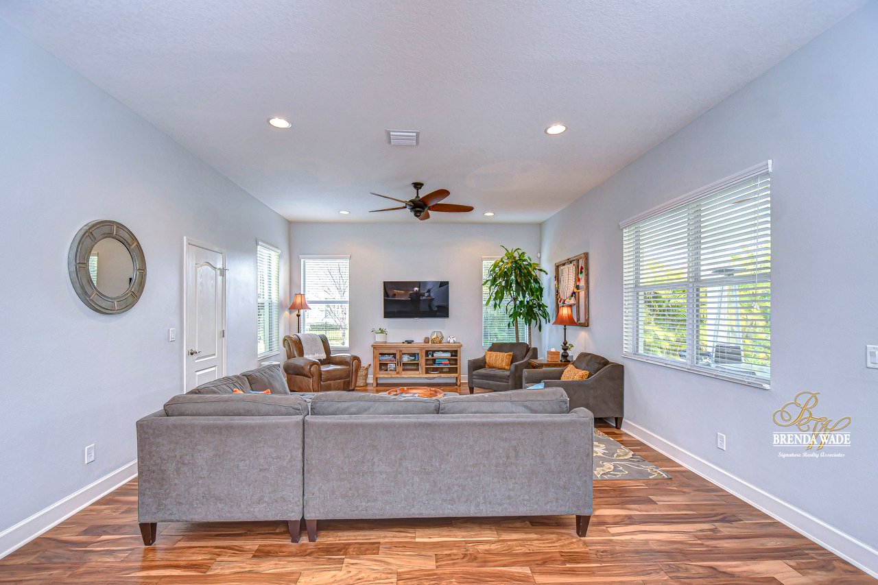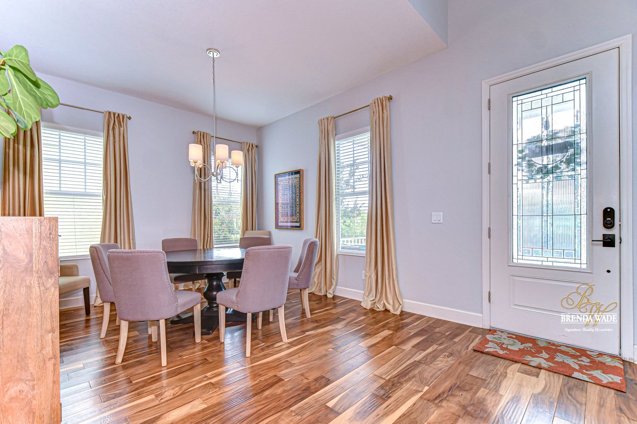 Your dream home awaits! From the moment you enter this community, you're surrounded by charm and character at every turn. The tree-lined streets greet you upon your arrival and you will feel right at home. Welcome to this exquisite Taylor Morrison home, perfectly situated on an oversized corner lot overlooking serene conservation views with a brand-new roof! This stunning 4-bedroom, 3.5-bath, 3-car garage home offers luxurious upgrades throughout, blending elegance with modern functionality. A charming front porch and a screened balcony above provide a warm and inviting first impression, setting the tone for the beauty within. Step inside to find upgraded wood flooring flowing seamlessly throughout the main level. The formal dining room stands out with a sophisticated wood-accented wall, creating a refined space for memorable gatherings. A spacious office with French doors offers versatility--ideal for working from home or easily transforming to fit your lifestyle needs. The chef's kitchen is a true showstopper, featuring top-end cabinetry, upgraded GE Profile appliances, a sleek marble backsplash, large walk-in pantry, and ample counter and storage space. A breakfast bar and bright dining nook provide the perfect settings for casual meals, while the adjacent extended great room offers an expansive area for entertaining and everyday comfort. The first-floor primary suite serves as a private retreat, boasting a walk-in closet with custom built-ins and a spa-like en-suite bath with a soaking tub and separate shower. Upstairs, you'll find three generously sized secondary bedrooms, one of which features its own private en-suite bath, while the other two have access to the screened balcony. A huge bonus room with built-in speakers is perfect for movie nights, gaming, or a playroom. Step outside and prepare to be captivated by the incredible outdoor living space. The extended patio features a stunning outdoor fireplace, creating a cozy and inviting ambiance. Natural fencing provides added privacy, while outdoor lighting with a lifetime warranty enhances both beauty and security. You'll the this beautifully maintained community with amazing common areas, community parks, refreshing pool, a fully equipped gym, and even a dedicated dog park. But that's not all--right within the community, you'll find the vibrant Winthrop Town Center, offering a variety of dining and shopping options. It's the perfect spot for a leisurely stroll to enjoy lunch, dinner, or a weekend outing.