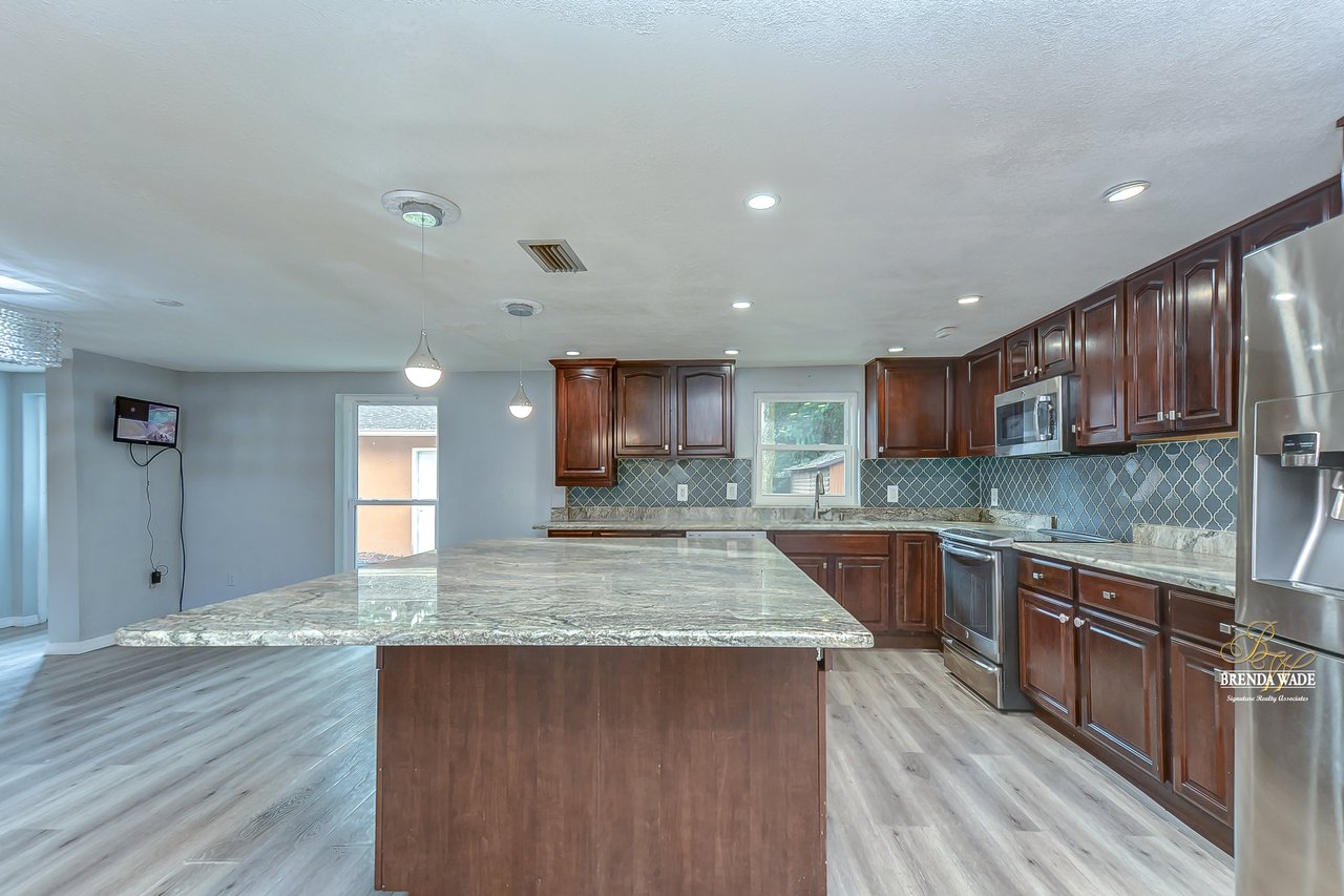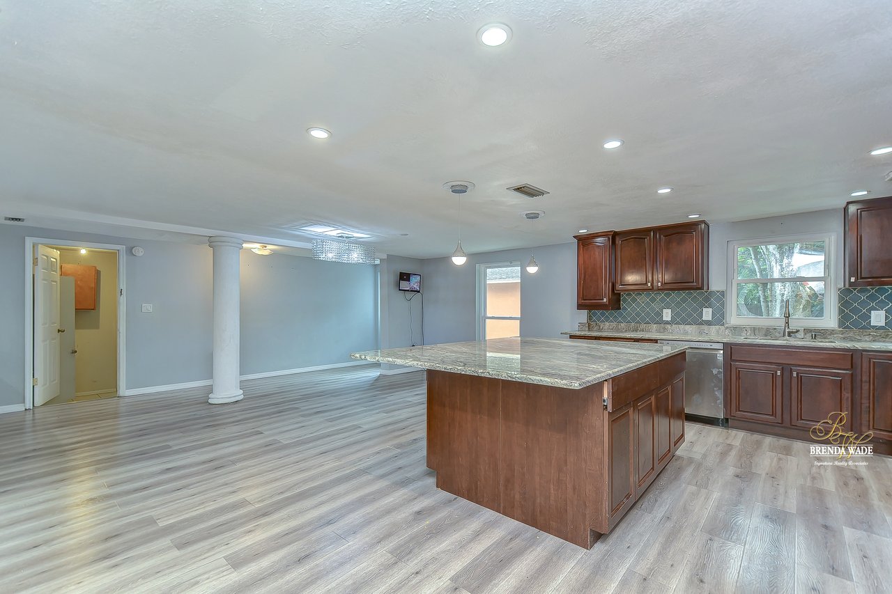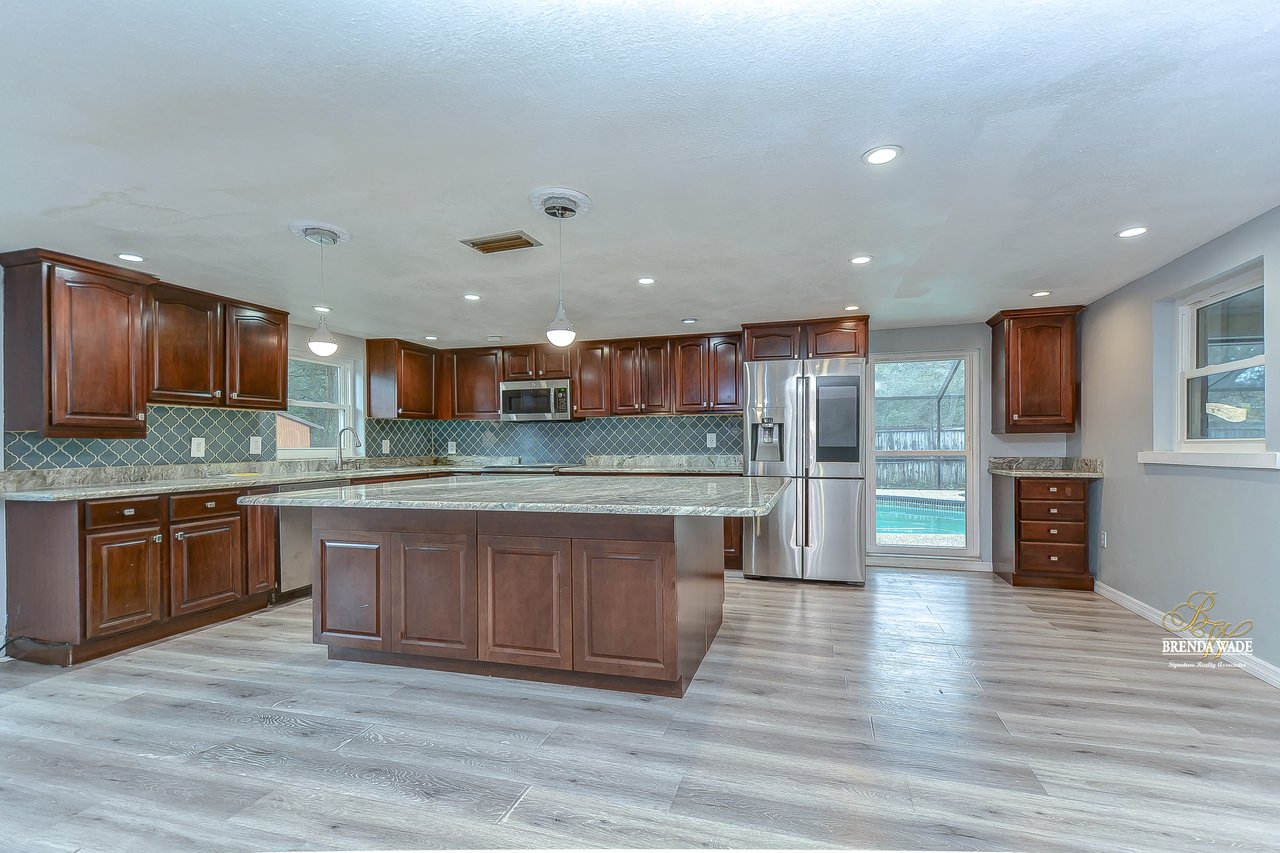 If you are looking for a one-of-a-kind POOL home sitting on just under 1.5-acres, you’ve found it! This home has a private gate and an extended driveway so if privacy is what you’re looking for, this home will check that box off for you! The pavered walkway and front porch will be your favorite place to enjoy your morning coffee! Check out the fire pit to roast marshmallows and keep warm on cooler nights as well! Enter the double front door and discover the captivating design throughout the home! There is a neutral paint, newer hurricane windows replaced in 2019, and an appealing laminate flooring throughout! Cleaning will be a breeze! The open foyer leads you to the bright living room that has so much room to entertain your guests! This room flows into the family room with a wood-burning fireplace and sliders exit to the enclosed patio with views to the pool! Head to the heart of the home… the A M A Z I N G kitchen! This remodeled kitchen boasts new kitchen cabinets, stone counters, stainless appliances, appealing backsplash, and extensive center island! The chef in the family will LOVE preparing meals and have plenty of space to do it! The kitchen opens to the dining room where you will be able to be the host for all holiday meals moving forward! The master suite offers an exceptional getaway with floor to ceiling windows, walk-in closet, and updated en-suite with walk-in shower! Two secondary bedrooms share an updated bathroom nearby! If you work from home, youre in luck! You will find a peaceful setting behind french doors to work from home in the office! That’s not all… there is the perfect setup to transform the room at the back of the home into the ideal mother-in-law suite! The fourth bedroom has its own private bathroom and closet space! Check out the backyard, starting with the 10-foot-deep pool where everyone can enjoy the sunny Florida weather! You don’t find pools like that anymore! This oversized lot has NO HOA and NO CDD, so bring all of your boats, RV’s, and trailers and store them on property with ease! Well, what are you waiting for?! Get your showing scheduled today!