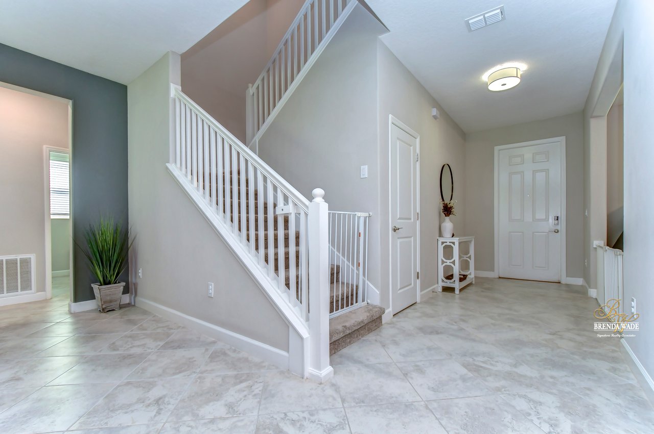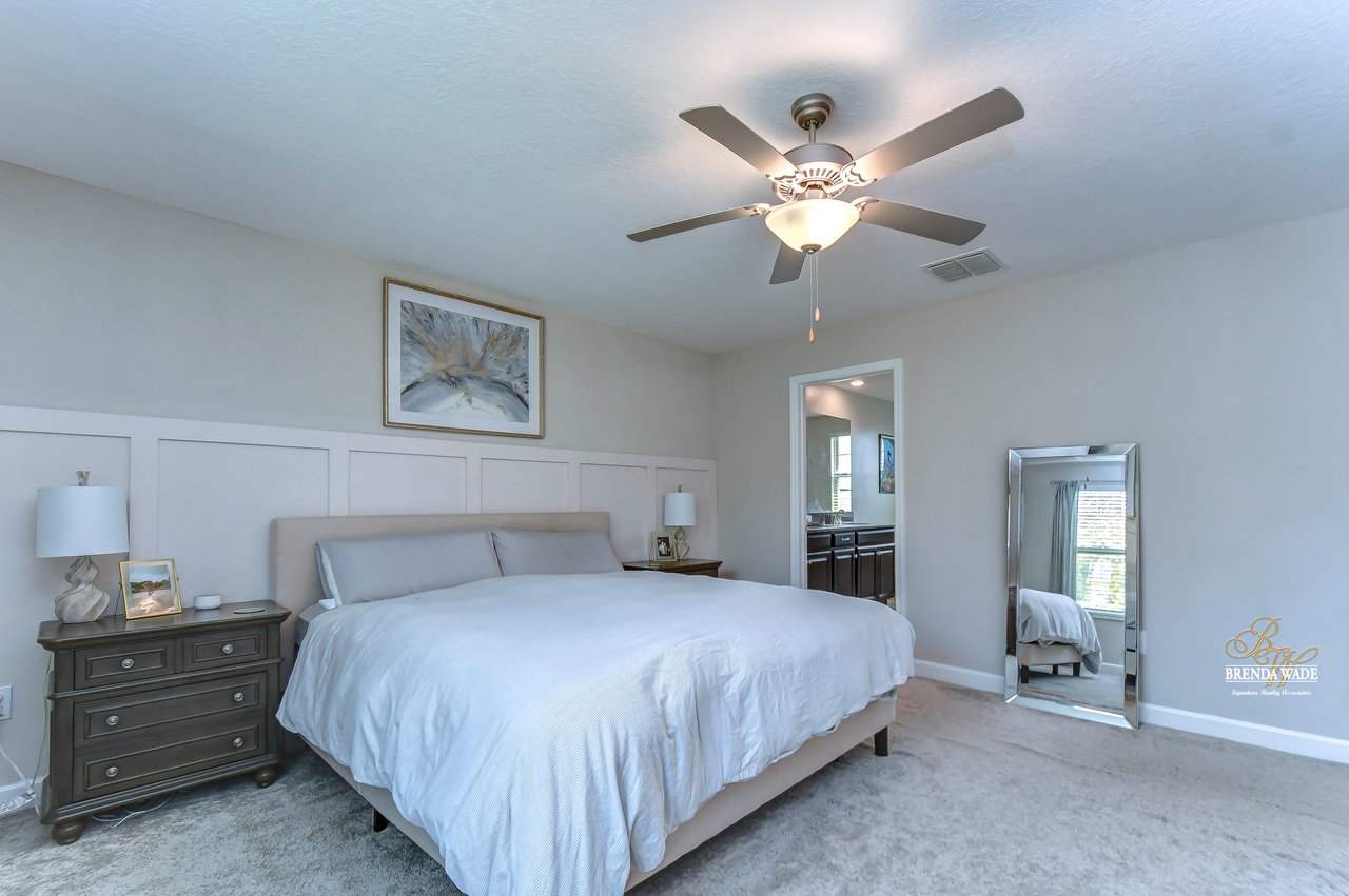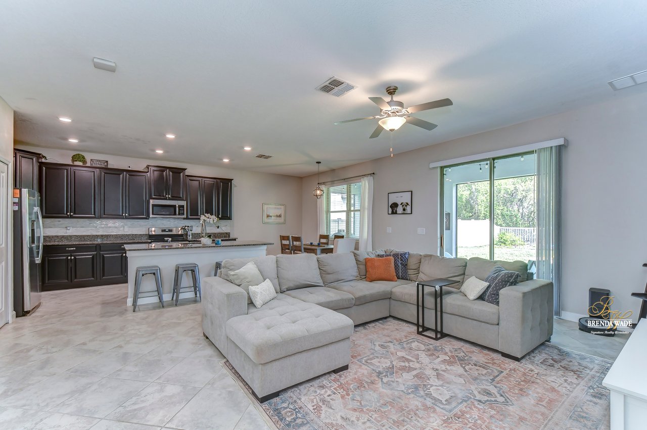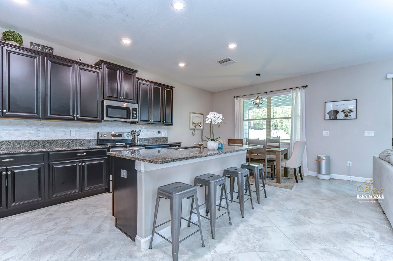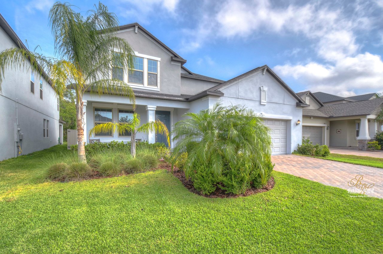 Nestled in the heart of Riverview lies a truly exquisite home that will steal your heart! This 4 bedroom, 3 bath home has over 2,500 sq. ft of sprawling living space, spread across two floors! This is the perfect home for you and your family! As you enter the gates of Crestview Lakes, you will be greeted by a well-maintained community with large playground and dog park for your furry friends! As you step into this home you will be captivated by its charm, starting with the gorgeous flooring and bright paint! The entrance way leads to a delightful flexible space that can be used as a dining room or office space with tile flooring and two large windows, inviting in the natural Florida light! As you move through the home, the open kitchen will stop you in your tracks! This kitchen boasts a large center island with seating, granite countertops, updated backsplash, stainless appliances, and 42" staggered Scottsdale Maple Espresso cabinets with crown! The breakfast nook is adjacent to the kitchen and offers wonderful backyard views, which is perfect for enjoying early morning coffee with your loved ones! The great room, with its effortless flow and open layout, will invite you to sit back and relax! This spacious room opens to the lanai through sliding doors, creating an indoor-outdoor living experience that is perfect for entertaining! Located downstairs just off the great room is a secondary bedroom and gorgeous secondary bath with granite countertops, shower/tub combo and added linen closet for extra storage! Speaking of storage, this home has multiple linen closets throughout and spacious storage closet under the stairs to make for a clutter-free living experience! Make your way upstairs and you will be captivated by an over-sized loft/bonus room that would make an excellent play room or entertainment space! Just down the hall, you will see another secondary bath with double sinks, granite countertops, and shower/tub combo! The plush carpeted second and third bedrooms sit just off the bonus room and boast large walk-in closets! The en-suite is a retreat itself featuring a gigantic walk-in closet with more than enough room for all of your belongings! The en-suite bath is beautiful and profiles granite countertops with double sinks, soaking tub with a window that invites natural light to pour in and separate walk-in shower with beautiful tile and added storage closet! Step outside and discover the great outdoors! This home has a spacious covered lanai and fenced in backyard that is perfect for relaxation and play! Did we mention that this home also features a hybrid water heater, which makes for lower water bills, wi-fi adapters on both floors and hurricane shutters! But just wait, this community also has a lake with a dock! This home is just waiting for you to come and make it your own!