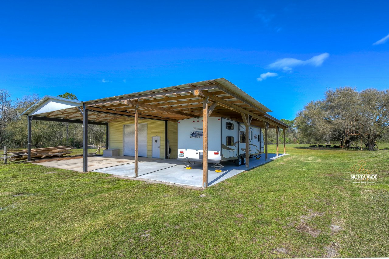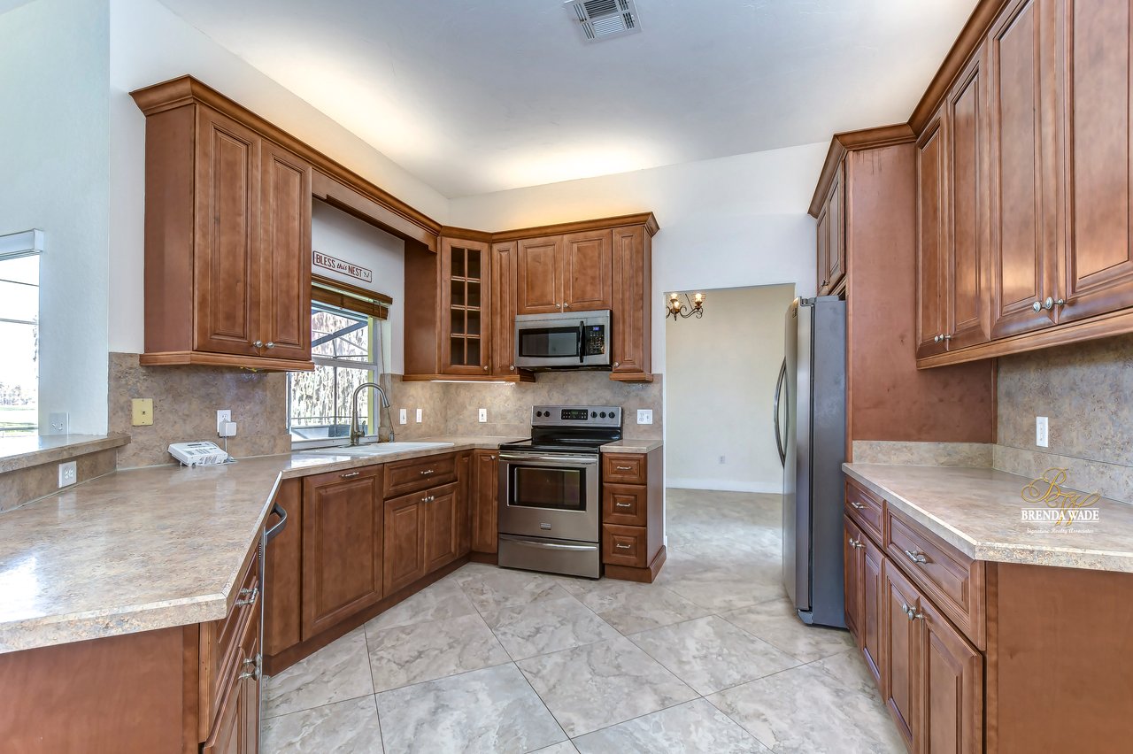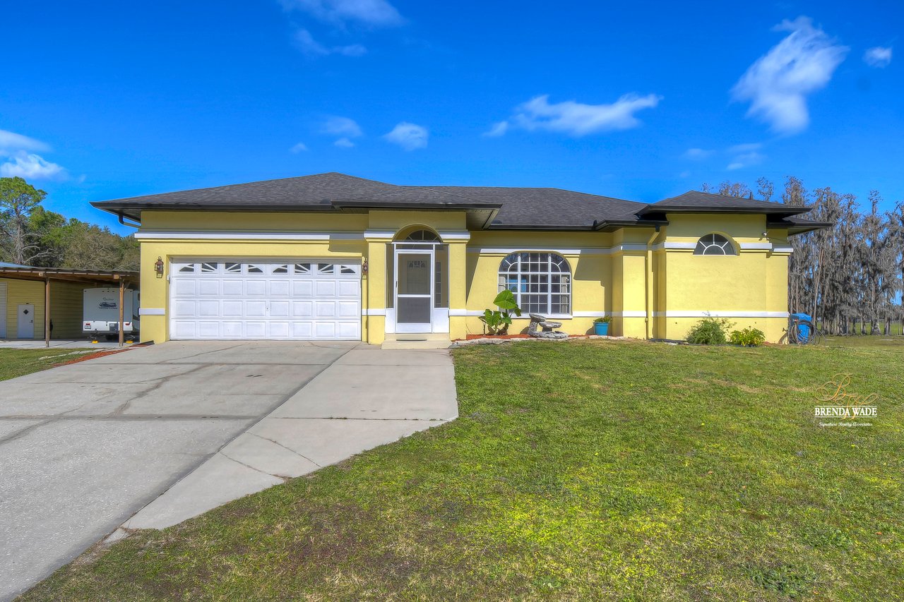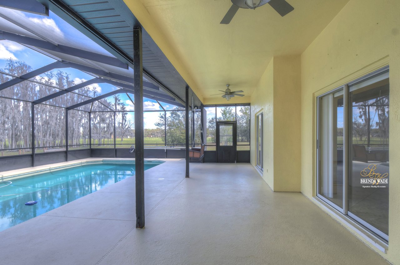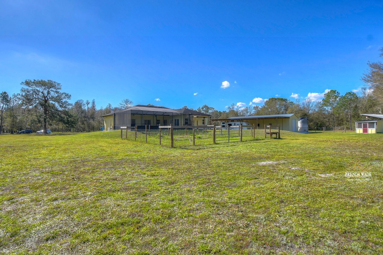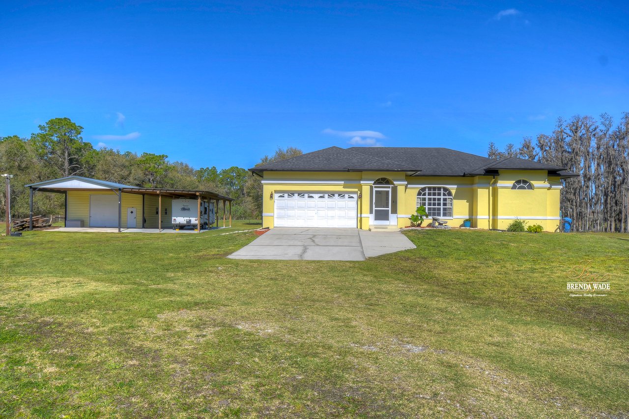 This is what you've been searching for! If you're looking for a tranquil and serene home nestled among nature's beauty, you've found it! This peaceful farmhouse is surrounded by greenery, tucked back from the traffic! The home itself boasts a cozy and inviting atmosphere, perfect for relaxing after a long day. With ample natural light streaming in from the large windows, you'll feel at one with the outdoors without ever leaving the comfort of your home. Inside awaits high ceilings, new tile flooring in 2021, and fresh neutral paint ready to pair perfectly with your decor! The chef's kitchen boasts stainless appliances, 42-in cherry cabinets topped with crown, soft close drawers, breakfast bar seating, and closet pantry! The great room allows for plenty of space to gather as a family or have guests over to entertain! This home offers TWO primary suites both with large walk-in closets! The main primary suite features an updated bathroom with two sinks, garden tub, and walk-in shower with a frameless shower door on the way! The second primary has a large garden tub/shower combo while both primary bedrooms have a private slider that takes you to the pool! Step outside onto the spacious screened lanai and pool and take in the breathtaking views of the natural surroundings. You'll feel as though you've been transported to a private oasis, where you can unwind and recharge in complete peace and quiet! The pool lanai was refinished and rescreened in 2022! Don't forget to check out the 24'x50' workshop barn! You can appreciate the epoxied floors and 100 amp service along with multiple outlets wired for 220v. There is also an attached 24'x80' concrete pad equipped to store your boats, RV's, trailers, and farm equipment with the two 30 amp RV hookups with water! There is also a 3-stall pole barn and custom chicken coop! There is a newer bridge that crosses the creek and allows you to walk the whole property! This property truly offers the best of both worlds, with the convenience of city living just a short drive away and the tranquility of nature right at your doorstep. Don't miss your chance to call this peaceful haven your own!