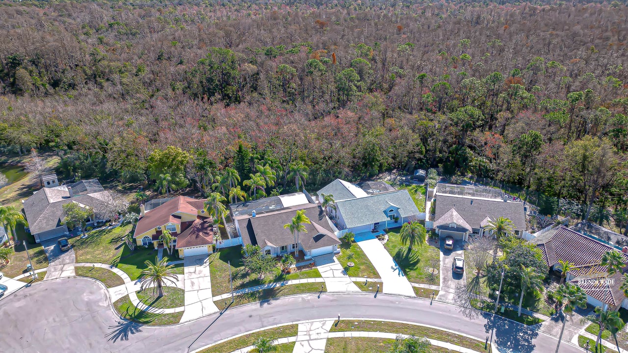 Set on a serene conservation lot, this beautifully maintained pool home offers rare privacy, peaceful views, and a true connection to nature. Enjoy mornings watching deer and local wildlife from your own backyard while still being close to everything Tampa has to offer. Inside, a bright and open floor plan features tile and bamboo flooring and flows seamlessly to the screened pool and expansive outdoor living area. The covered lanai creates the perfect space for entertaining or relaxing year-round. The saltwater pool includes solar heating and Nebula lighting, creating the ideal setting for both daytime enjoyment and evening ambiance. The kitchen and bathrooms have been tastefully upgraded, complemented by an upgraded Culligan water filtration system in the kitchen for enhanced everyday living. Major system updates provide peace of mind, including a replaced electrical panel, a newer A/C unit, hurricane-rated windows and shutters, and a 7,000 kW generator. Just off the entry foyer, the formal dining room sits opposite a dedicated office, ideal for working from home or flexible use. The kitchen opens to a spacious family room featuring a fireplace, built-in cabinetry, and shelving, while the adjacent breakfast nook overlooks the pool, lanai, and tranquil conservation views. The owner's suite offers a large walk-in closet and a well-appointed bath with dual vanities, a makeup station, separate shower, and jetted tub, complete with Bluetooth speaker and night lighting. Three additional bedrooms provide generous space and ample storage. Recent exterior improvements include new fencing and upgraded walkways, enhancing both curb appeal and functionality. Additional features include a Kitchen reverse osmosis system for filtered drinking water and ice, a water softener, and attic storage with stair access from the garage. A new washer and dryer are also included. Located in the desirable Countryway Golf Community, this home is close to top-rated schools, parks, shopping, and dining, just 15 minutes from Tampa International Airport and approximately 30 minutes to award-winning Gulf beaches.