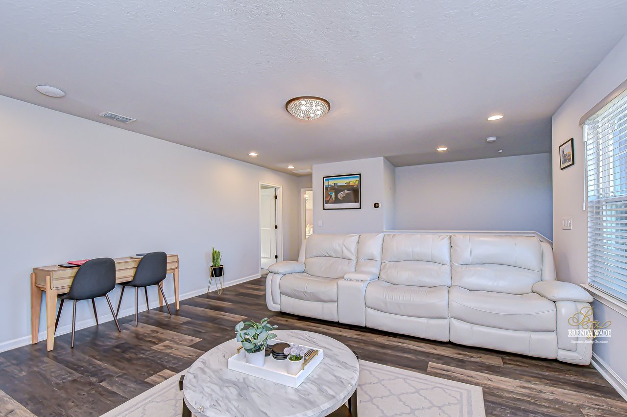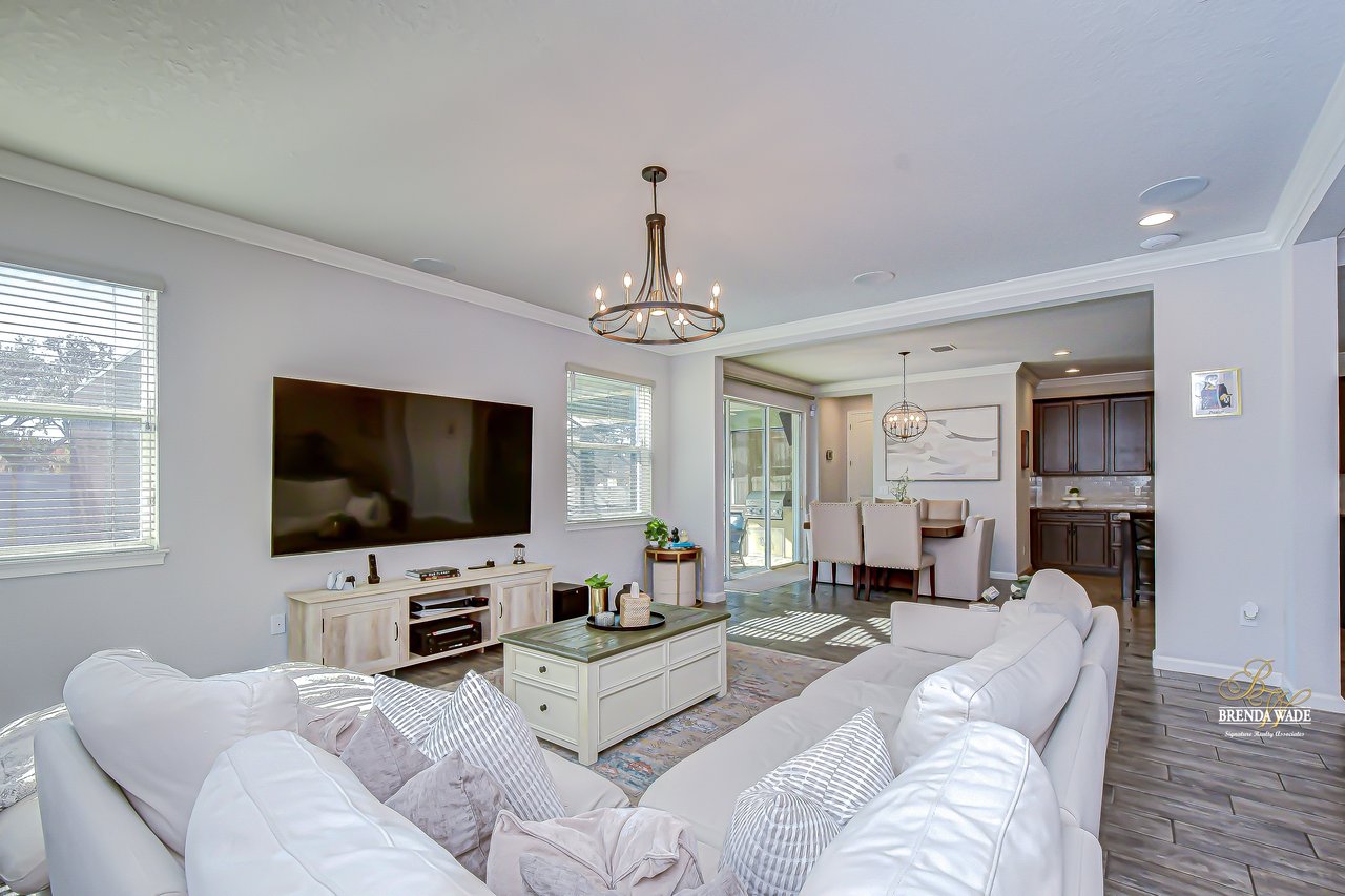 Welcome to this beautifully appointed home in the sought-after, gated Boyette Park community. Tucked away on a quiet loop street with no through traffic, this saltwater pool home sits on an oversized pie-shaped homesite with no backyard neighbors, offering exceptional privacy. From the stone-accented elevation and paver driveway to the lush, upgraded landscaping, this home makes an immediate impression. Inside, an open and light-filled floor plan awaits, featuring ceramic tile wood plank flooring throughout the main living areas. The kitchen is thoughtfully designed with 42" wood cabinetry with soft-close drawers and upgraded hardware, granite countertops, a large center island, undermount sink, spice cabinet, tile backsplash, upgraded stainless steel appliances, and enhanced lighting. A generously sized walk-in pantry is conveniently located under the stairs. The kitchen flows seamlessly into the great room and breakfast nook, making it ideal for everyday living and entertaining. Custom barn doors off the great room lead to a private flex space, perfect for a home office, playroom, or gym. Upstairs, a spacious loft provides a second living area with endless flexibility. The primary suite features a private en-suite bath and his-and-hers walk-in closets with custom organizational cabinetry. Three additional bedrooms are generously sized and share a full bath. This home is equipped with an ELAN smart home panel with four cameras and a 7.1 surround sound system throughout, including the covered lanai--perfect for entertaining. The laundry room includes built-in cabinetry and a utility sink for added convenience. The three-car garage offers Wi-Fi-enabled garage door openers, a dedicated workshop area, speckled epoxy-style flooring, built-in cabinetry, and EV charger hookup ready. Step outside to the screened lanai and enjoy the beautiful saltwater pool and outdoor kitchen, creating the ultimate outdoor retreat. With no direct backyard neighbors, this space offers both privacy and the perfect setting for gatherings with family and friends. This community offers an exceptional lifestyle, featuring the added security of gated living along with the convenience of lawn and exterior maintenance. Residents also enjoy resort-style amenities including a community pool, playground, splash pad, covered pavilion, dog park, and a peaceful seating area overlooking the pond--perfect for enjoying Florida's natural beauty. Ideally located near restaurants, shopping centers, and grocery stores, with easy access to the interstate, this home truly combines comfort, convenience, and community living. Schedule your private showing today and experience all that Boyette Park has to offer.