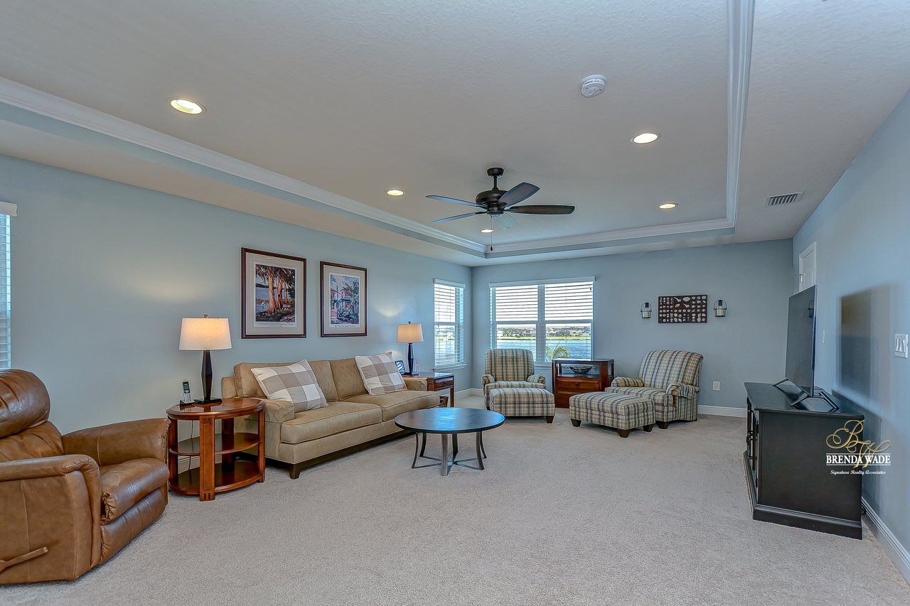 PERFECTION! This like-new home is located in the beloved, gated Lucaya Lake Club! With the 78-acre Lake in your backyard, you will ADORE the view and appreciate the privacy with no backyard neighbors! This community offers Florida living at its best with all of the resort-style amenities including a zero-entry pool, state-of-the-art fitness center, large clubhouse, splash park, playgrounds, and the private Lucaya Lake with a community dock! Enjoy the water life with the ability to go canoeing, paddleboarding, and kayaking! As you arrive at this unsurpassed home you will notice the finer details immediately with the paver driveway, well-manicured landscaping with tropical touches, 3-car garage, and glass front door that leads you into this grand design! Beautiful engineered hardwood flooring, high ceilings, wide baseboards, calming paint palette, and open concept living! You will cherish your formal meals with friends in the bright dining room with crown molding that is just around the corner to the gourmet kitchen! This DREAM kitchen will have the chef in the family sold! Granite counters, extensive 42 in raised cabinetry with crown and soft close drawers, under cabinet lighting, subway tile backsplash, and stainless appliances including a built-in double oven! Preparing meals as a family will be a breeze with the oversized center island with seating! You can have your everyday meals easily in your breakfast nook just off the kitchen! The great room is a TREAT that you will want to take a minute to soak in! The VIEW!! You have quad sliding glass doors that open from the center displaying the soothing lake view that will encourage you to keep the sliders open year-round! The owner’s retreat is secluded on the first floor with that same remarkable water view, HUGE walk-in closet with custom organizers, and a luxurious en-suite with walk-in shower, dual sinks, and stone counters! The picture-perfect second floor offers an open loft AND a huge bonus room! You have endless opportunities to create a game room, home office, media room, or even just a playroom for the kids! There are 3 additional bedrooms that have ample closet space that share a second full bathroom with a fourth bedroom around the corner that can be a second master suite or the ideal guest suite with an attached bathroom and walk-in closet! The spacious and peaceful backyard has so much room to enjoy the weather and relax! You are even within walking distance to the amazing community amenities! Welcome home!