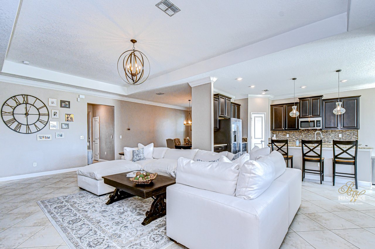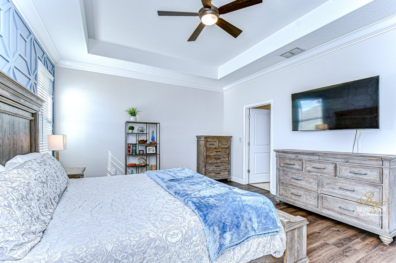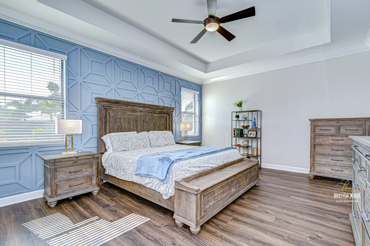 Welcome to Waterleaf -- a beautiful gated community in the heart of Riverview! This stunning Lennar Grand Cayman floor plan offers over 2,500 square feet of living space on a premium lot backing to a serene pond, providing both privacy and picturesque views. Step inside to discover thoughtful upgrades throughout, including accent walls in multiple rooms, luxury vinyl flooring in all bedrooms (2022), and upgraded landscaping that enhances curb appeal. The entire home, including doors and windows, was freshly painted in 2025, with additional updates such as sprinkler system improvements (2021), modern light fixtures (2017), and garage doors repainted in 2025. This property also features reclaimed water for irrigation and a remaining one-year builder warranty for added peace of mind. The open-concept layout boasts a triple-split floor plan, giving each area of the home its own sense of privacy. The spacious kitchen is a chef's dream, featuring GE(r) stainless steel appliances, granite countertops, a center island with bar seating, and a cozy breakfast nook with stunning pond views. Host special occasions in the formal dining room, and unwind in the massive great room highlighted by a stacked stone accent wall that adds warmth and style. The primary suite is a true retreat, with a custom accent wall, walk-in closet, and private en-suite bathroom complete with a garden tub, dual sinks, and ample counter space. Three additional bedrooms provide flexibility for guests, a playroom, or a home office. Step out onto the screened lanai, complete with hardwired power and Ethernet, where you can stream your favorite shows while enjoying panoramic pond views--an ideal space for year-round relaxation or effortless entertaining. The three-car garage offers plenty of space for vehicles and storage, ideal for busy households. Living in Waterleaf provides access to incredible luxury amenities, including a community pool, open-air clubhouse, fire pit, walking trails, fitness equipment, playground, and basketball court. HOA fees even include cable and high-speed internet, making life here effortless. The location is unbeatable -- just minutes from Apollo Beach, Pelican Cove, Little Manatee River State Park, and Cockroach Bay State Park for endless outdoor adventures.