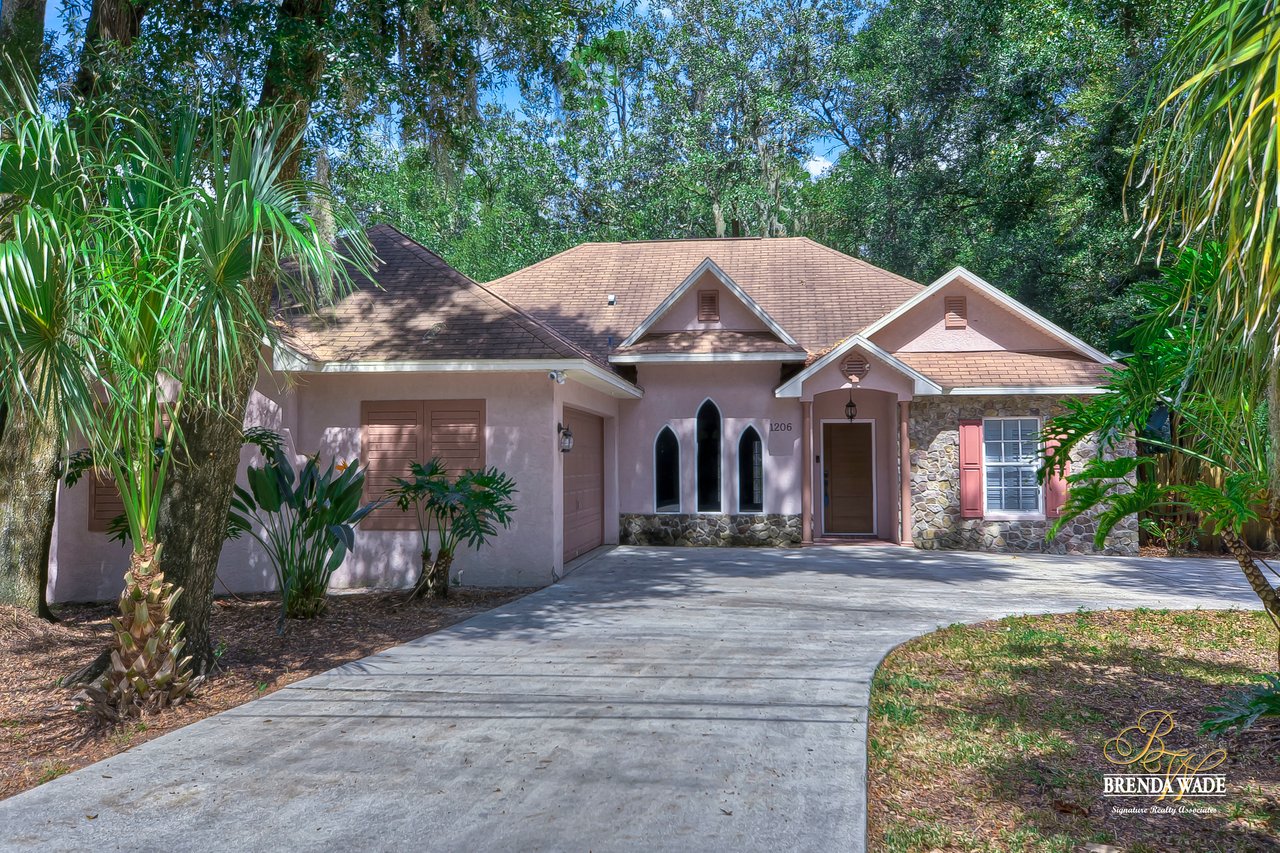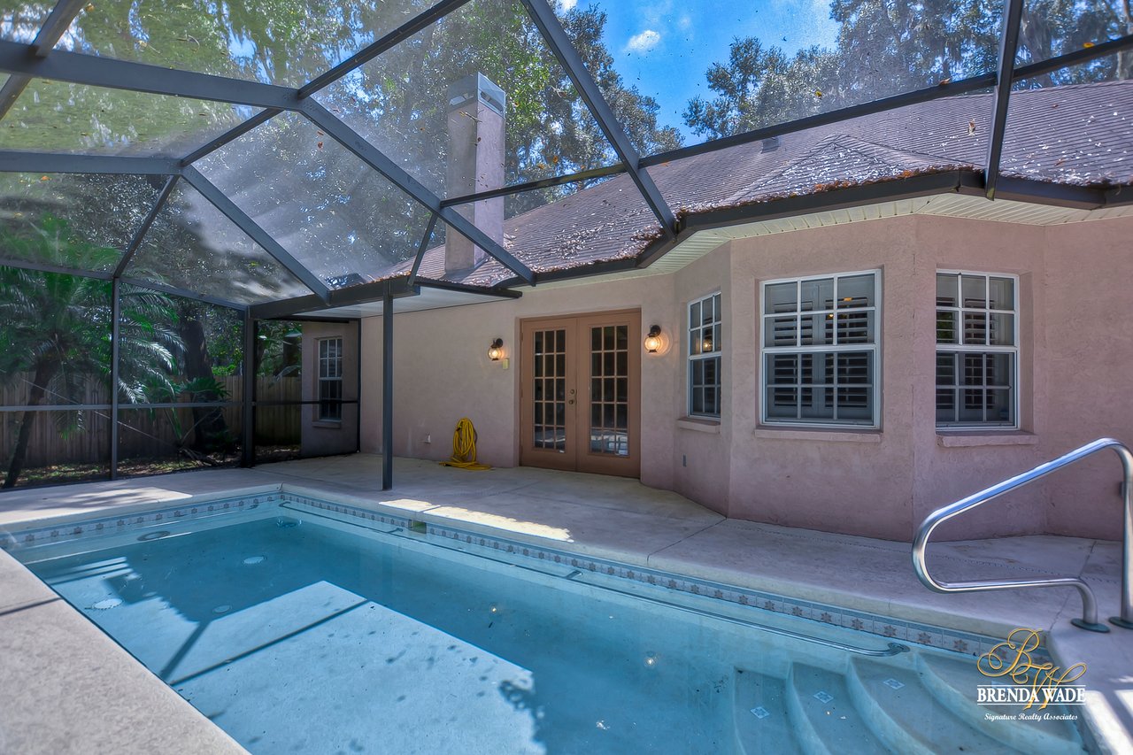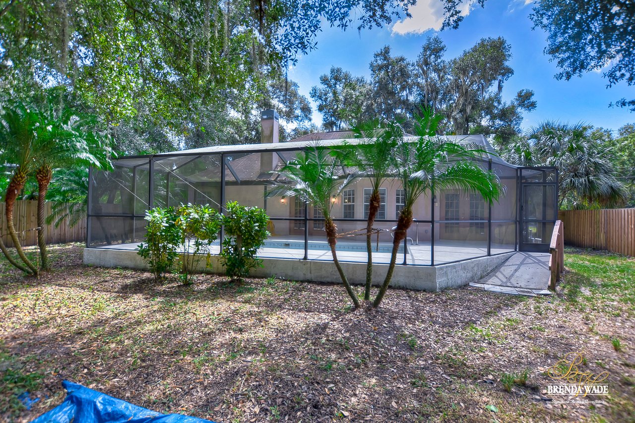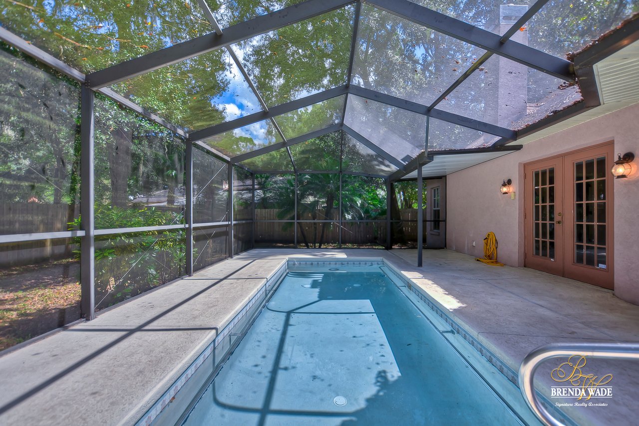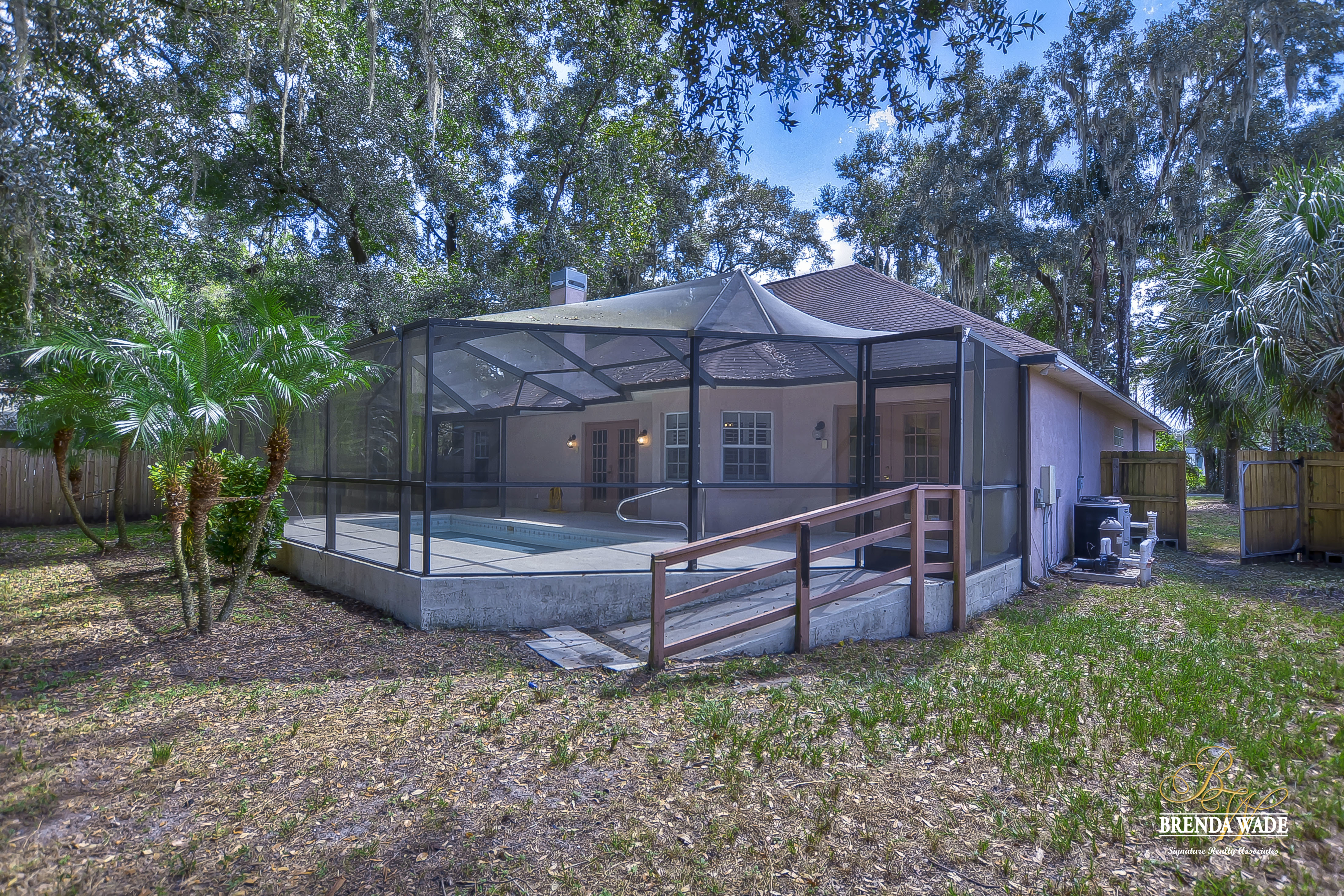 Wow! This home is a showstopper! Located on a private wooded lot with large drive in front, you will appreciate the curb appeal! The moment you step inside you will notice the stunning ceramic tile floors that run throughout the entire house. Large great room space opens up to the kitchen and dining with cathedral vaulted ceiling, wood burning fireplace, double French doors leading to the lanai and tons of natural light make this great room open and bright! The modern kitchen with its hard surface counters has lots of cabinet space, stainless appliances and a pretty mosaic tile behind the oven and sink! The breakfast nook sits by the kitchen window and has views of the pool and lanai! There is a large utility room with mud sink, cabinets and storage cupboard connecting to the garage - lots of room for all your storage needs! Master suite is a true retreat with custom accent wall, walk-in closets, a private exit to the lanai, a study nook and a spa-like en-suite bathroom with walk-in shower and floor to ceiling subway tiles! Straight out of Architectural Digest, gorgeous!! The other two bedrooms are a perfect size for kids or an office and share a beautifully updated bathroom. If that’s not enough, you will love spending time outside in the pool and on the quiet lanai. This home has all the details you will love! Come take a tour so you can appreciate all it’s beauty!