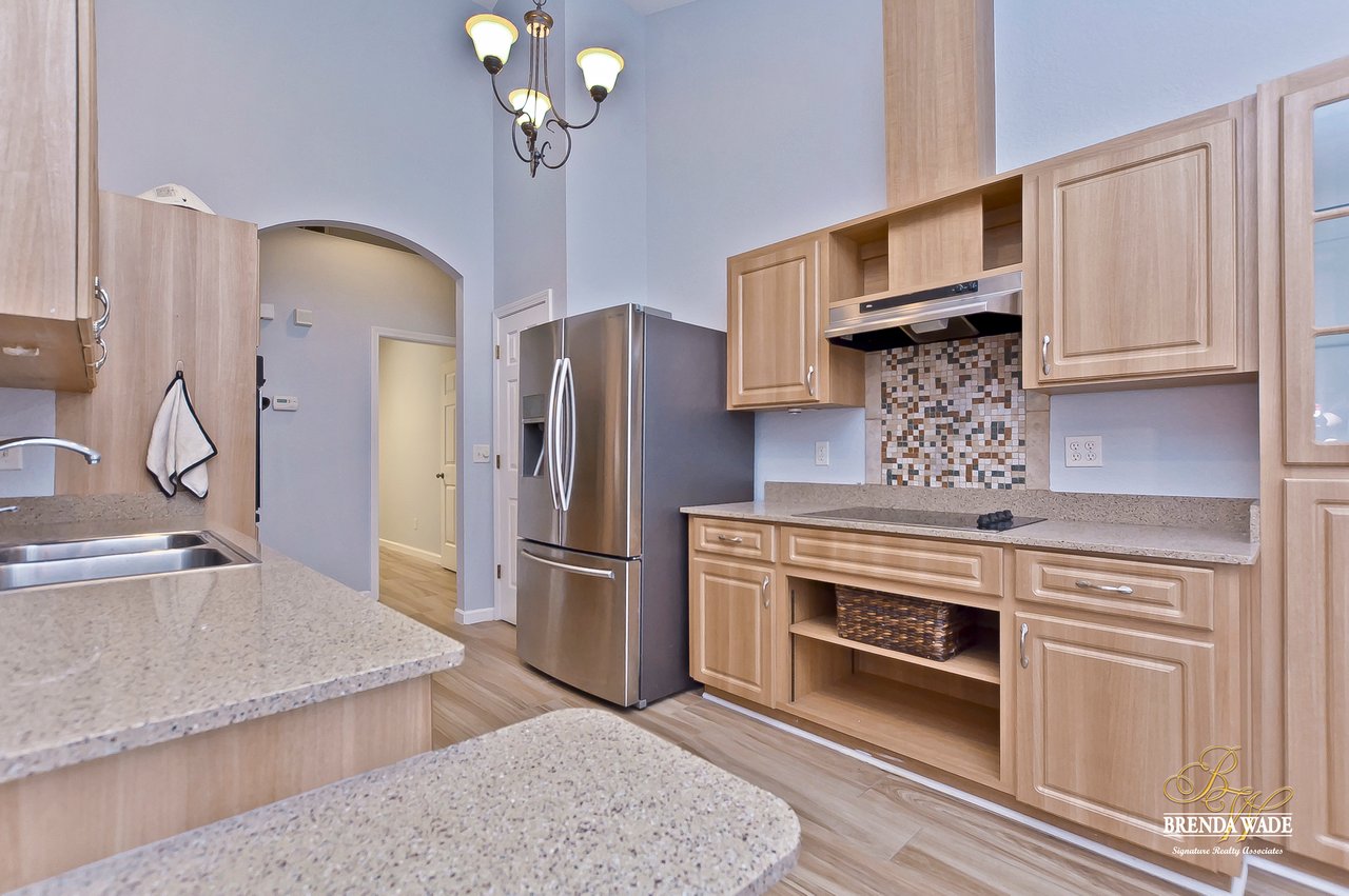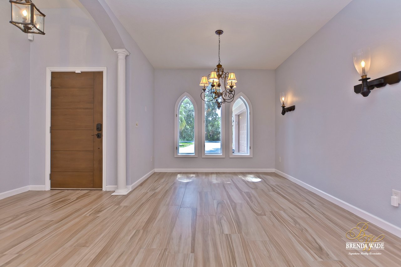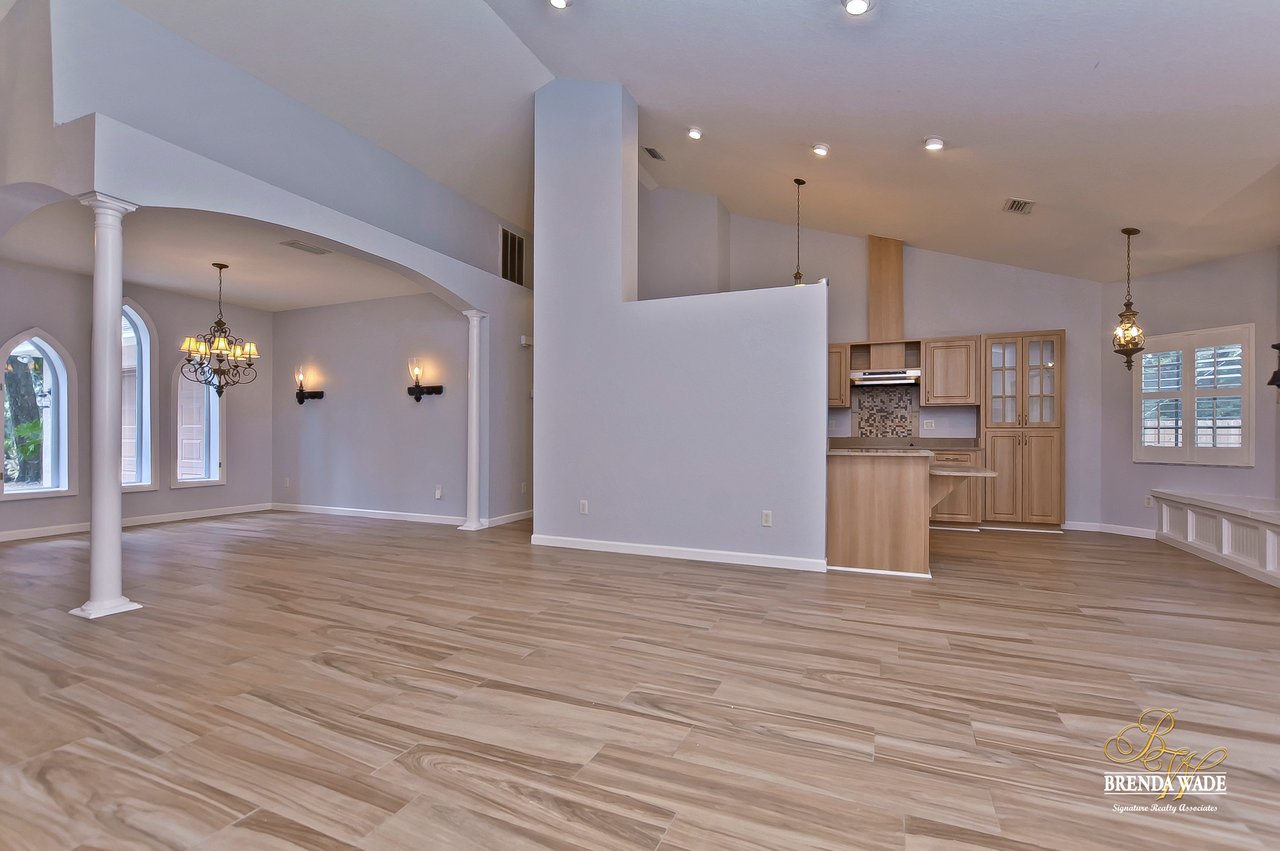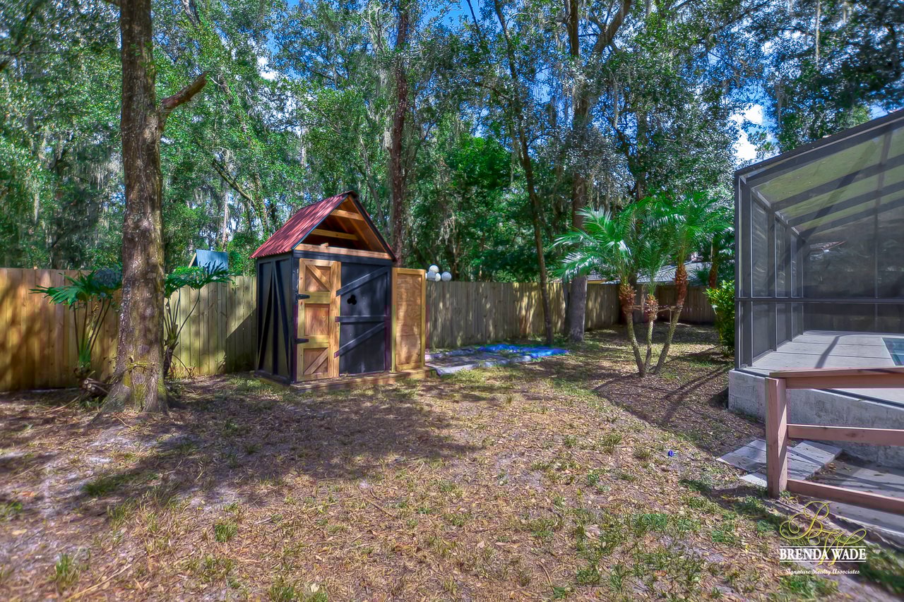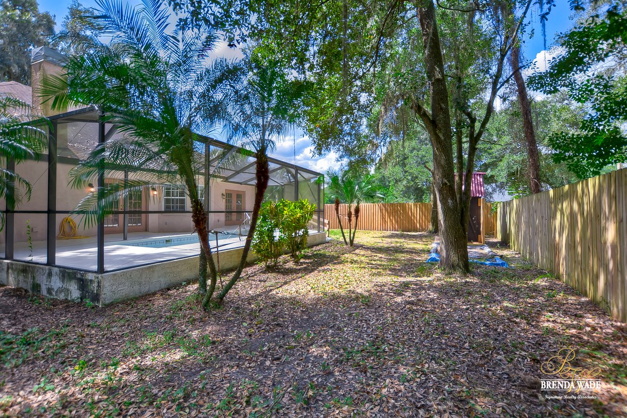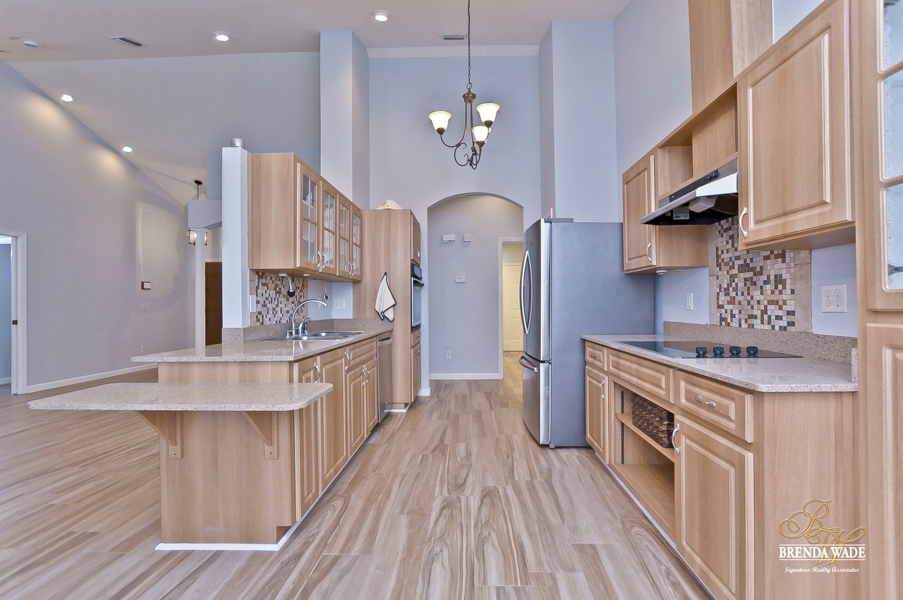 Wow! This home is a showstopper! Located on a private wooded lot with large drive in front, you will appreciate the curb appeal! The moment you step inside you will notice the stunning ceramic tile floors that run throughout the entire house. Large great room space opens up to the kitchen and dining with cathedral vaulted ceiling, wood burning fireplace, double French doors leading to the lanai and tons of natural light make this great room open and bright! The modern kitchen with its hard surface counters has lots of cabinet space, stainless appliances and a pretty mosaic tile behind the oven and sink! The breakfast nook sits by the kitchen window and has views of the pool and lanai! There is a large utility room with mud sink, cabinets and storage cupboard connecting to the garage - lots of room for all your storage needs! Master suite is a true retreat with custom accent wall, walk-in closets, a private exit to the lanai, a study nook and a spa-like en-suite bathroom with walk-in shower and floor to ceiling subway tiles! Straight out of Architectural Digest, gorgeous!! The other two bedrooms are a perfect size for kids or an office and share a beautifully updated bathroom. If that’s not enough, you will love spending time outside in the pool and on the quiet lanai. This home has all the details you will love! Come take a tour so you can appreciate all it’s beauty!