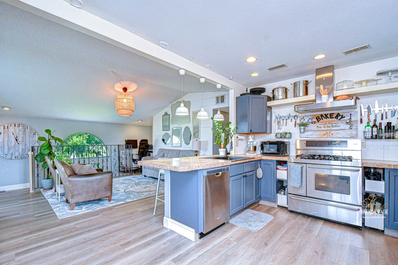 One-of-a-kind waterfront living in the heart of Valrico--this fully remodeled home offers a rare opportunity to own 60 feet of direct frontage on beautiful Valrico Lake, complete with a private dock and access to a community boat ramp. From the moment you step inside, you're greeted by a bright, open interior designed to showcase breathtaking water views from nearly every angle. The seamless flow between the kitchen and great room creates an inviting space that feels both elevated and effortless. The kitchen is truly magazine-worthy, featuring upgraded appliances, stunning countertops, custom cabinetry, and stylish floating shelves that perfectly blend form and function. The great room is anchored by a charming shiplap accent wall and includes a thoughtfully designed office nook--ideal for working from home while enjoying tranquil lake views. Upstairs, the primary suite offers a private en-suite retreat, while two additional bedrooms share a beautifully updated full bath. Downstairs, an additional living area provides flexible space and opens through French doors to the outdoor patio. Step outside and discover what truly sets this home apart. A spacious deck overlooking the water is perfect for morning coffee, outdoor dining, or simply soaking in the peaceful surroundings. The private floating dock invites you to fish for bass, bluegill, or catfish right from your backyard. A private boat ramp, along with access to a community boat ramp, allows for easy enjoyment of the full Lake Valrico experience--including sunset cruises and days on the water. Additional features include a 2024 roof, 2021 AC unit and water heater, a storage shed for added convenience, and a garage complete with a workbench. Located in a welcoming neighborhood with no HOA or CDD, this property offers both freedom and charm in an unbeatable setting. Truly a rare waterfront gem--homes like this don't come around often.