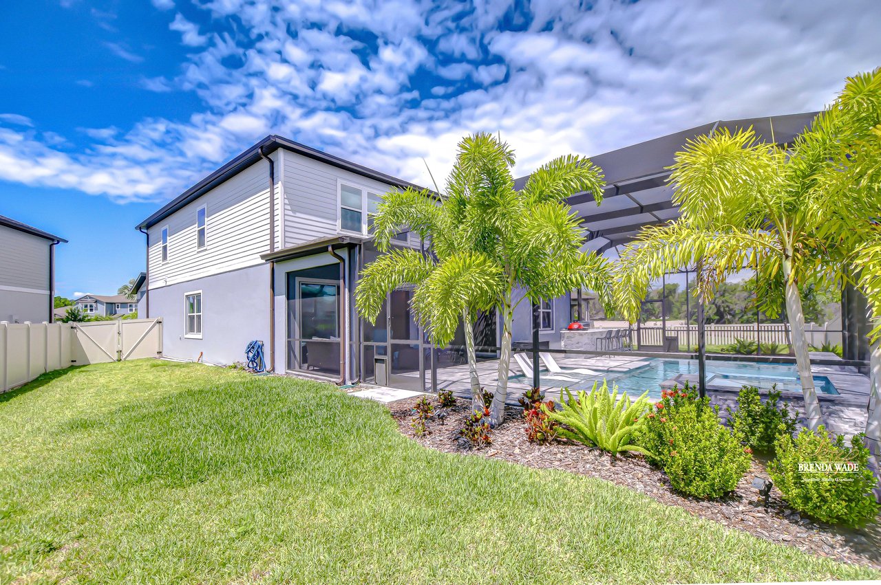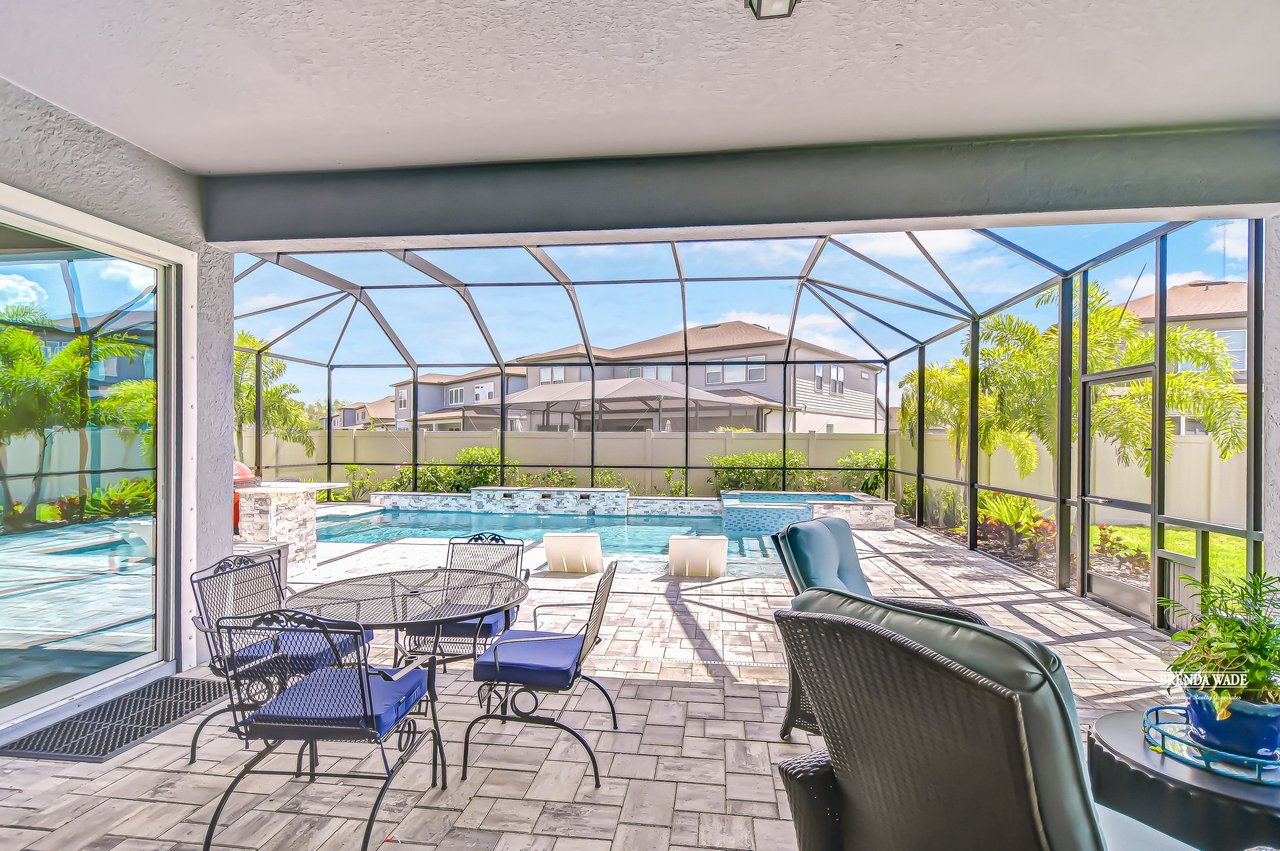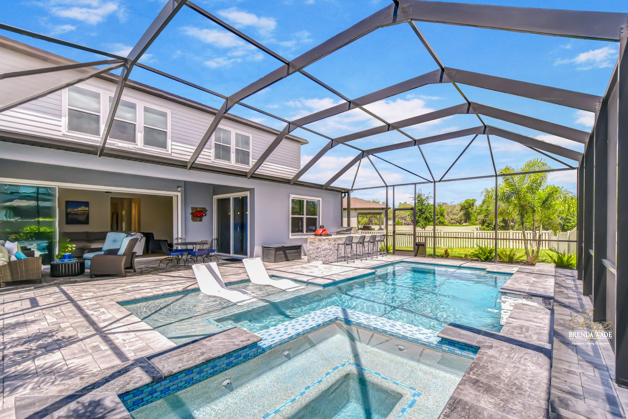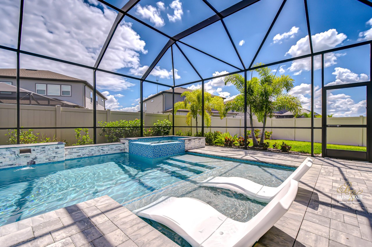 Welcome to this better-than-new Yorkshire model by Pulte Homes, a stunning 5-bedroom, 3.5-bathroom residence located on a quiet cul-de-sac in the highly desirable Cedarbrook community-- with an HOA of only $99 per year--one of the lowest in the area--you'll enjoy premium living without the premium fees. Ideally situated in Riverview, this home offers the perfect blend of peaceful suburban living and everyday convenience. You'll enjoy quick access to I-75, shopping, dining, top-rated schools, and the area's beautiful parks and nature preserves. This thoughtfully designed home showcases $165,000 in upgrades, including an outdoor oasis that truly sets it apart. Plus, the remainder of the builder's warranty is transferable, with 8 years of structural coverage still in place, offering valuable peace of mind. Step inside to find soaring ceilings, luxury vinyl plank and ceramic tile flooring throughout, and an open-concept layout perfect for modern living. The gourmet kitchen is a chef's dream with 42-inch soft-close wood cabinetry, crown molding, quartz countertops, and a spacious walk-in pantry for extra storage and prep space. The great room features large pocket sliding doors the create the ideal indoor/outdoor living space with a fully screened-in lanai featuring a brand-new pool and hot tub, a custom outdoor kitchen with built-in grill, and two spacious side yards, all enclosed with fencing for added privacy. Whether you're hosting weekend barbecues, holiday gatherings, or simply relaxing under the stars, this space is ideal for entertaining and unwinding year-round. The home offers maximum flexibility, featuring a first-floor guest suite with its own en-suite bath and walk-in closet, along with a versatile flex room currently used as a home office. Upstairs, the luxurious primary suite includes a spa-inspired bath with dual vanities, a super shower, and walk-in closet. Four additional bedrooms--all with walk-in closets--share a spacious loft, perfect for a play area, media room, or reading nook. The upstairs laundry room adds convenience. The oversized 3-car garage provides ample room for vehicles and storage and includes a premium water softener system for purified water throughout the home. Community amenities are just a short walk away. Don't miss this opportunity to own an extraordinary home that perfectly balances luxury, location, and value in one of Riverview's most desirable neighborhoods.
