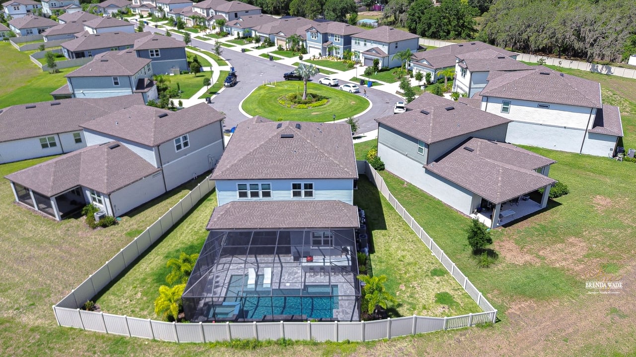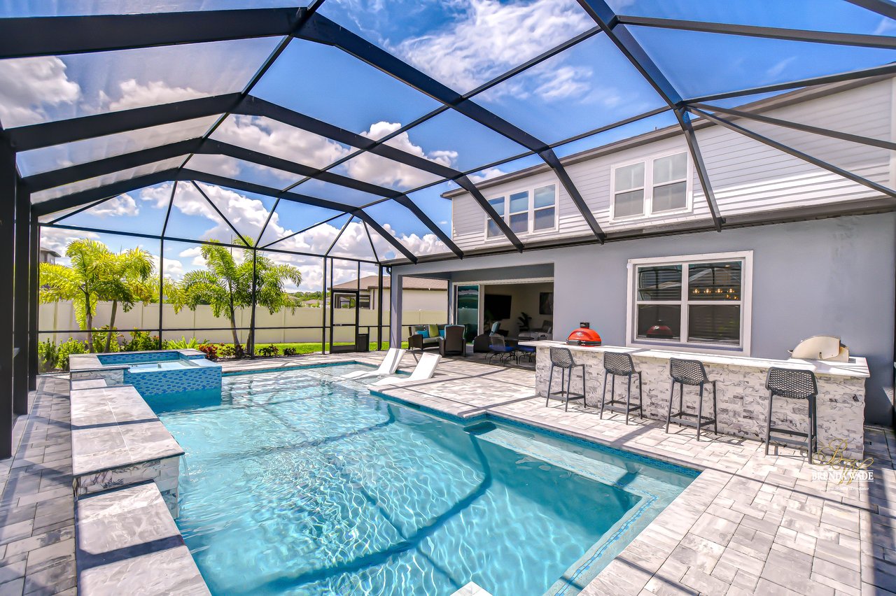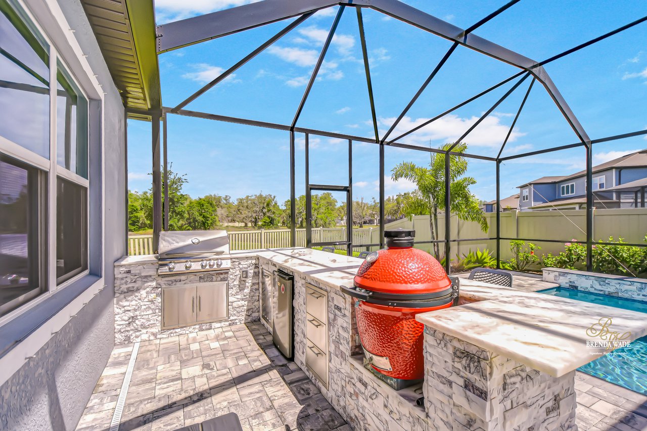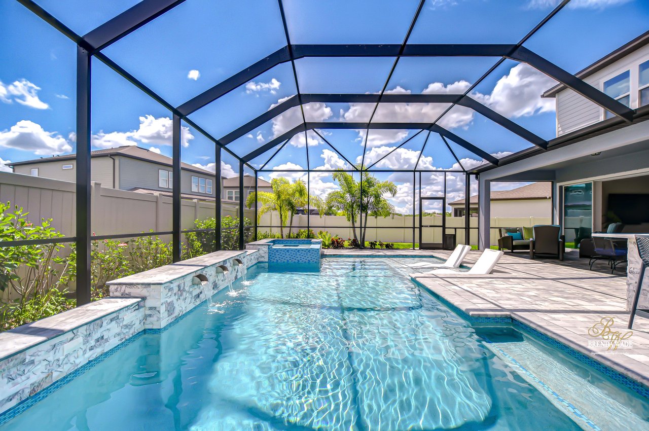 Welcome to this better-than-new Yorkshire model by Pulte Homes, a stunning 5-bedroom, 3.5-bathroom residence located on a quiet cul-de-sac in the highly desirable Cedarbrook community-- with an HOA of only $99 per year--one of the lowest in the area--you'll enjoy premium living without the premium fees. Ideally situated in Riverview, this home offers the perfect blend of peaceful suburban living and everyday convenience. You'll enjoy quick access to I-75, shopping, dining, top-rated schools, and the area's beautiful parks and nature preserves. This thoughtfully designed home showcases $165,000 in upgrades, including an outdoor oasis that truly sets it apart. Plus, the remainder of the builder's warranty is transferable, with 8 years of structural coverage still in place, offering valuable peace of mind. Step inside to find soaring ceilings, luxury vinyl plank and ceramic tile flooring throughout, and an open-concept layout perfect for modern living. The gourmet kitchen is a chef's dream with 42-inch soft-close wood cabinetry, crown molding, quartz countertops, and a spacious walk-in pantry for extra storage and prep space. The great room features large pocket sliding doors the create the ideal indoor/outdoor living space with a fully screened-in lanai featuring a brand-new pool and hot tub, a custom outdoor kitchen with built-in grill, and two spacious side yards, all enclosed with fencing for added privacy. Whether you're hosting weekend barbecues, holiday gatherings, or simply relaxing under the stars, this space is ideal for entertaining and unwinding year-round. The home offers maximum flexibility, featuring a first-floor guest suite with its own en-suite bath and walk-in closet, along with a versatile flex room currently used as a home office. Upstairs, the luxurious primary suite includes a spa-inspired bath with dual vanities, a super shower, and walk-in closet. Four additional bedrooms--all with walk-in closets--share a spacious loft, perfect for a play area, media room, or reading nook. The upstairs laundry room adds convenience. The oversized 3-car garage provides ample room for vehicles and storage and includes a premium water softener system for purified water throughout the home. Community amenities are just a short walk away. Don't miss this opportunity to own an extraordinary home that perfectly balances luxury, location, and value in one of Riverview's most desirable neighborhoods.