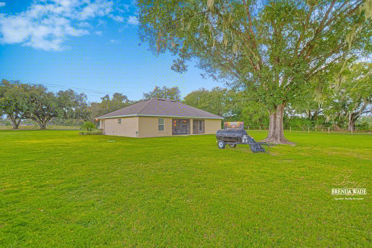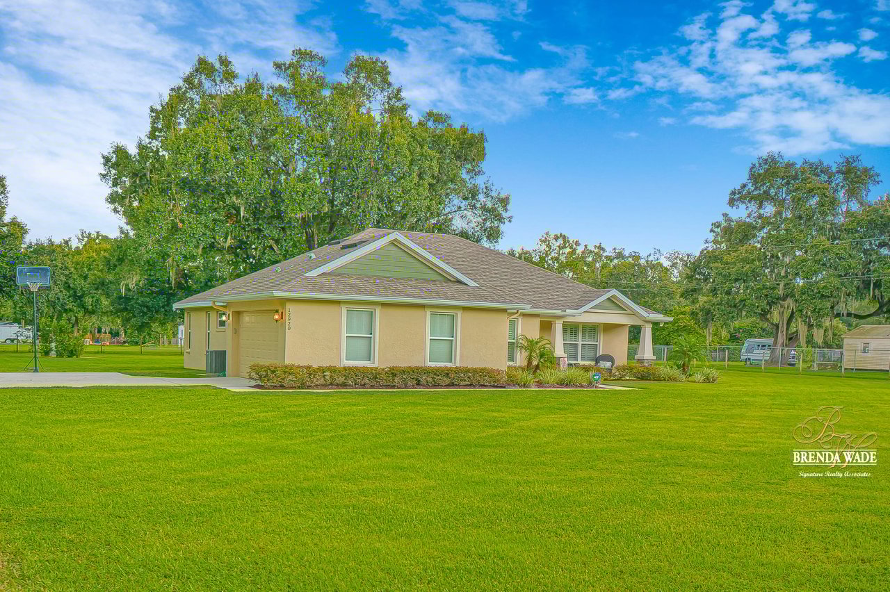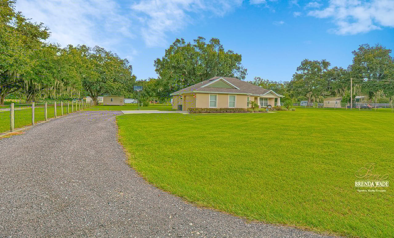 Wow you will not find another one like this out there! A one of a kind, CUSTOM BUILT estate sitting on a lush 1.18 acres that will definitely check all the boxes on your list! From the moment you arrive you will appreciate the private gated entry and the extended driveway leading up to the most magnificent curb appeal! Plenty of parking on the oversize parking pad with side entry garage! Step inside and discover the ultimate OPEN CONCEPT FLOOR PLAN! With volume ceilings, neutral paint colors, wide baseboard, wood look tile floor and so many more beautiful details throughout you will instantly know you have found home! The sunny, open family room is flooded with natural light through the double French doors leading out to your very own screened and covered lanai. The space also opens up effortlessly to the dining room that boasts beautiful and board and batten details! The kitchen is on another level with designer, 42 in white cabinets with additional uppers and crown molding, dazzling countertops an accent center island big enough for breakfast bar seating; imagine all the wonderful memories to be made in this exquisite space! One of the best features of this home is the well thought out split floorplan! The master retreat is secluded with a private exit to the lanai and a spa-like en-suite featuring an oversize walk-in shower, custom cabinetry including his in her sinks, and an oversize walk-in closet! What more could you ask for!? Two more spacious bedrooms are on the opposite side of the home with a shared second bathroom, perfect for guests! Only three years young this home is move-in ready and waiting for even the most discerning buyer, if you’re looking to spread your wings on a little slice of heaven, look no further! Come take a look today before you miss it!