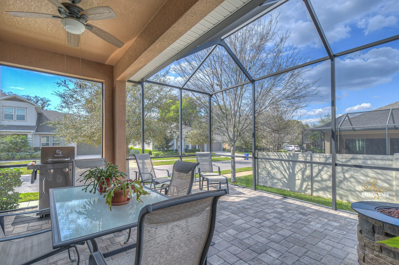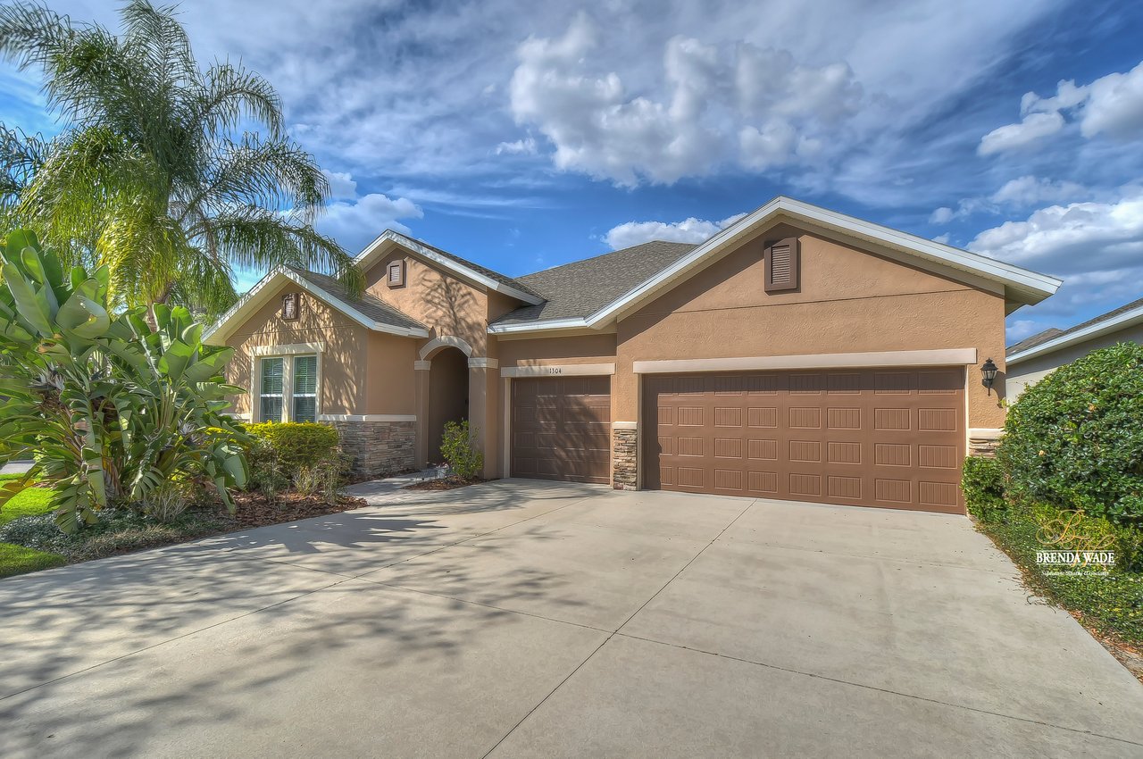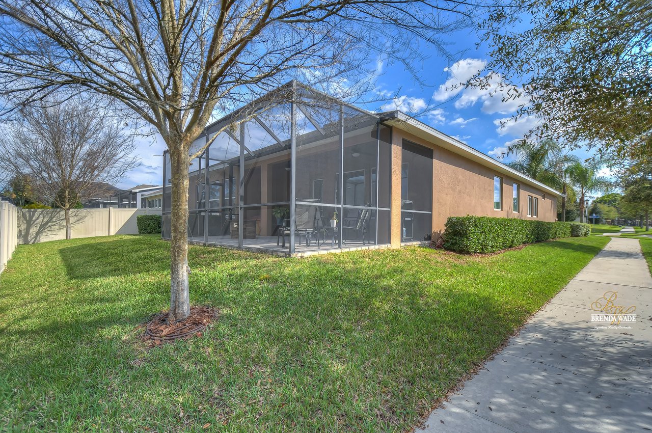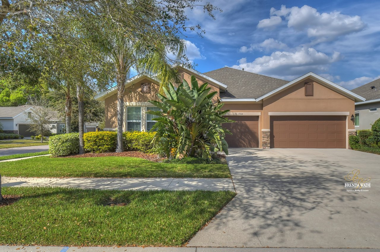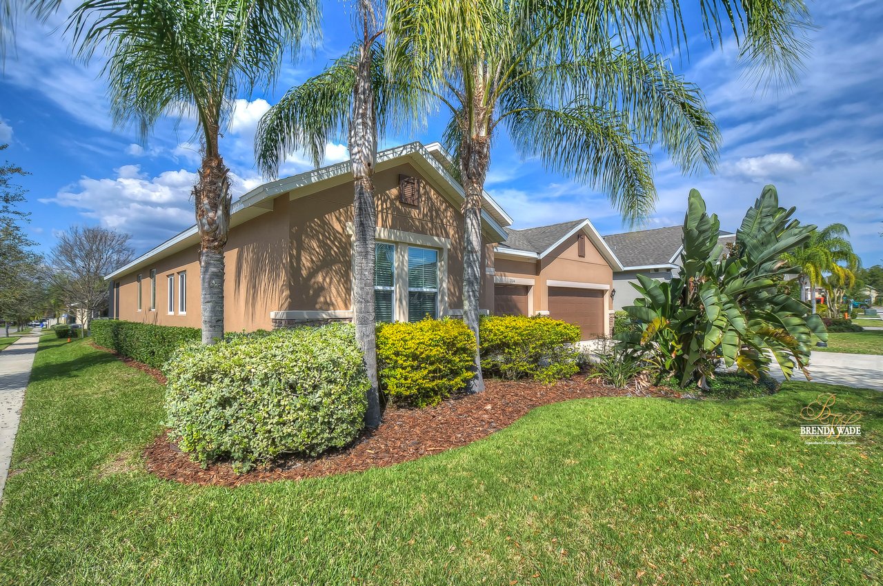 It is our pleasure to welcome you to this STUNNING corner lot beauty located in the gated Brooker Reserve community! Meticulous landscaping, 3-car garage, stacked stone accents, and pavered walkway all tie together to create the ideal front elevation! Step inside and you will instantly know that THIS IS THE ONE! High ceilings, crown molding, neutral paint, and a highly functional open floor plan! This home has spectacular, large windows and there is no shortage of them allowing in the best natural lighting throughout the whole home! The formal dining room on the left offers a tray ceiling with crown, surely to be the new spot for all of your holiday meals! The absolute STAR of the home is the immaculate kitchen! Granite counters, designer cabinets topped with crown, tile backsplash, stainless appliances, and oversized island! Open to the kitchen is a more casual breakfast nook with a workstation and cabinetry for extra storage! The open great room will be your family's favorite place to kick back and relax! The owner's retreat is exquisite with a wall of windows, tray ceiling, HUGE walk-in closet, and generous en-suite with dual sinks, soaking tub, and separate walk-in shower! This ideal layout offers a triple split floor plan with the second bedroom located near the front of the home and a full bathroom nearby! The third bedroom is PERFECT as a guest or in-law suite with its own wing of the home complete with a loft area, private bathroom, and bedroom! What a lovely getaway for guests! The screened and pavered lanai is the best place to spend time with loved ones enjoying the amazing weather! There is a covered seating area and a hot tub spa for colder days! This marvelous home is move-in ready in the gated Brooker Reserve community! In a great location, you will enjoy being central to all the dining and shops on Bloomingdale Ave as well as SR-60! This home will show for itself how wonderful it is, come see it today!
