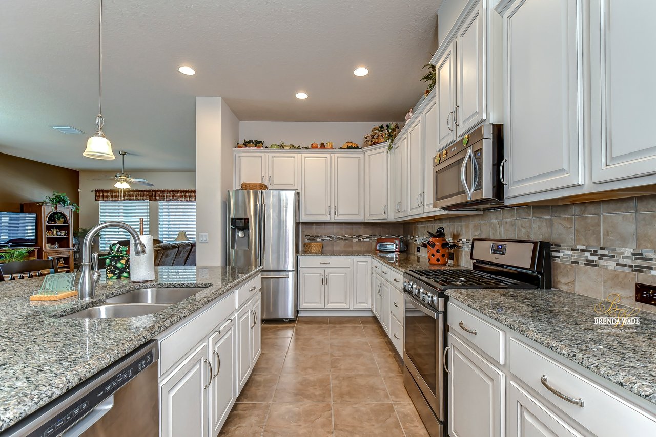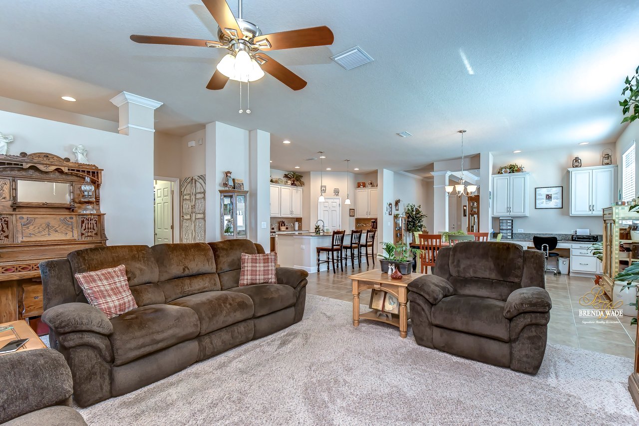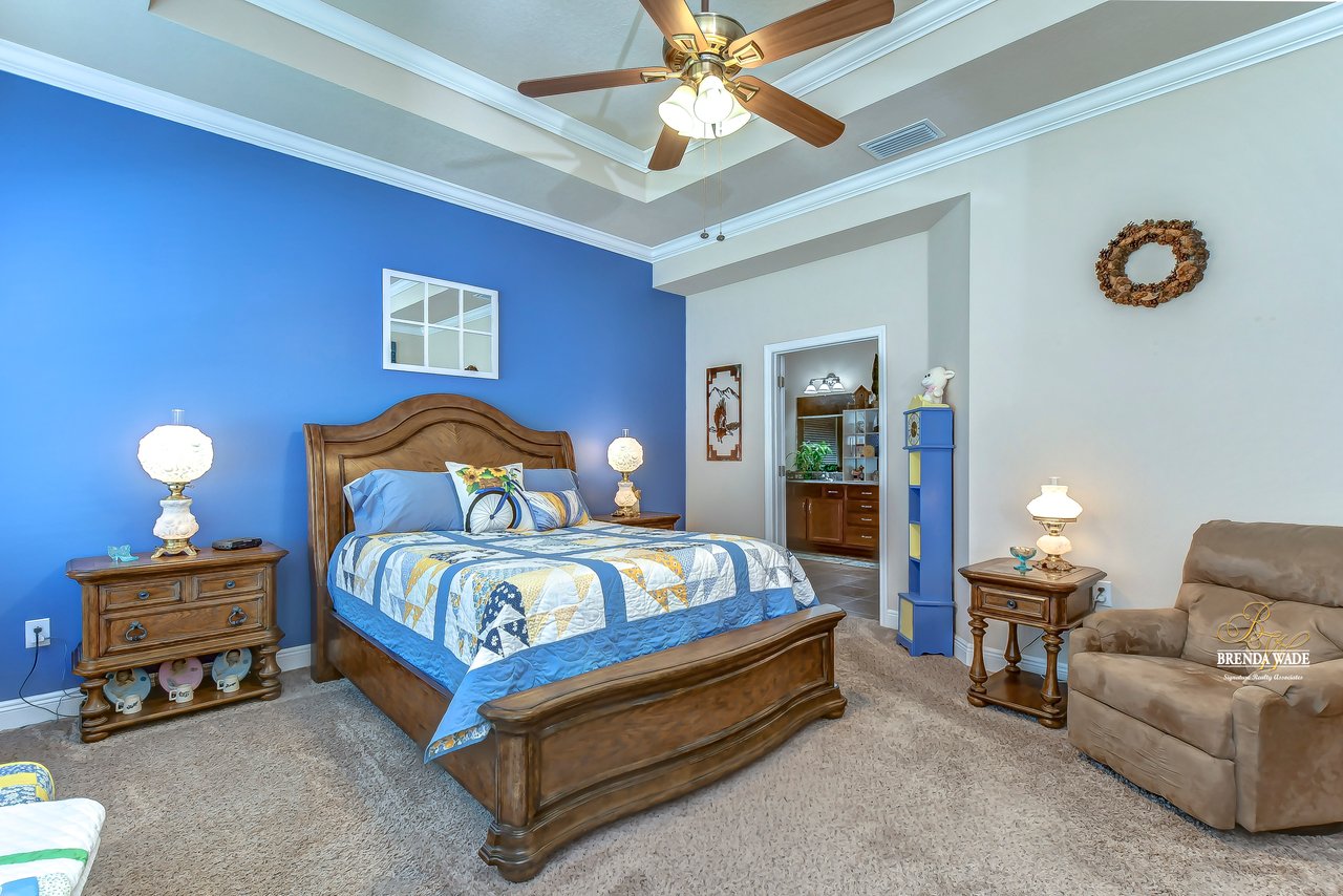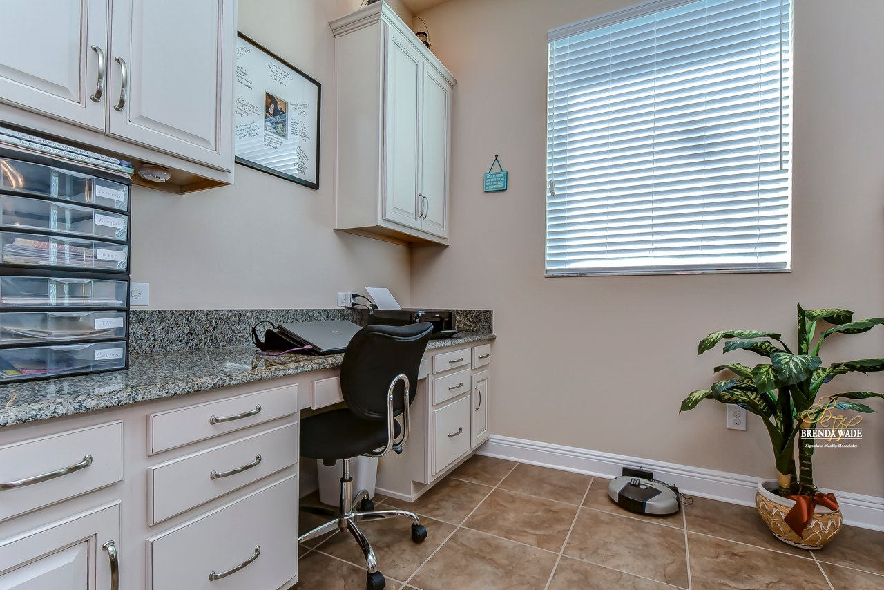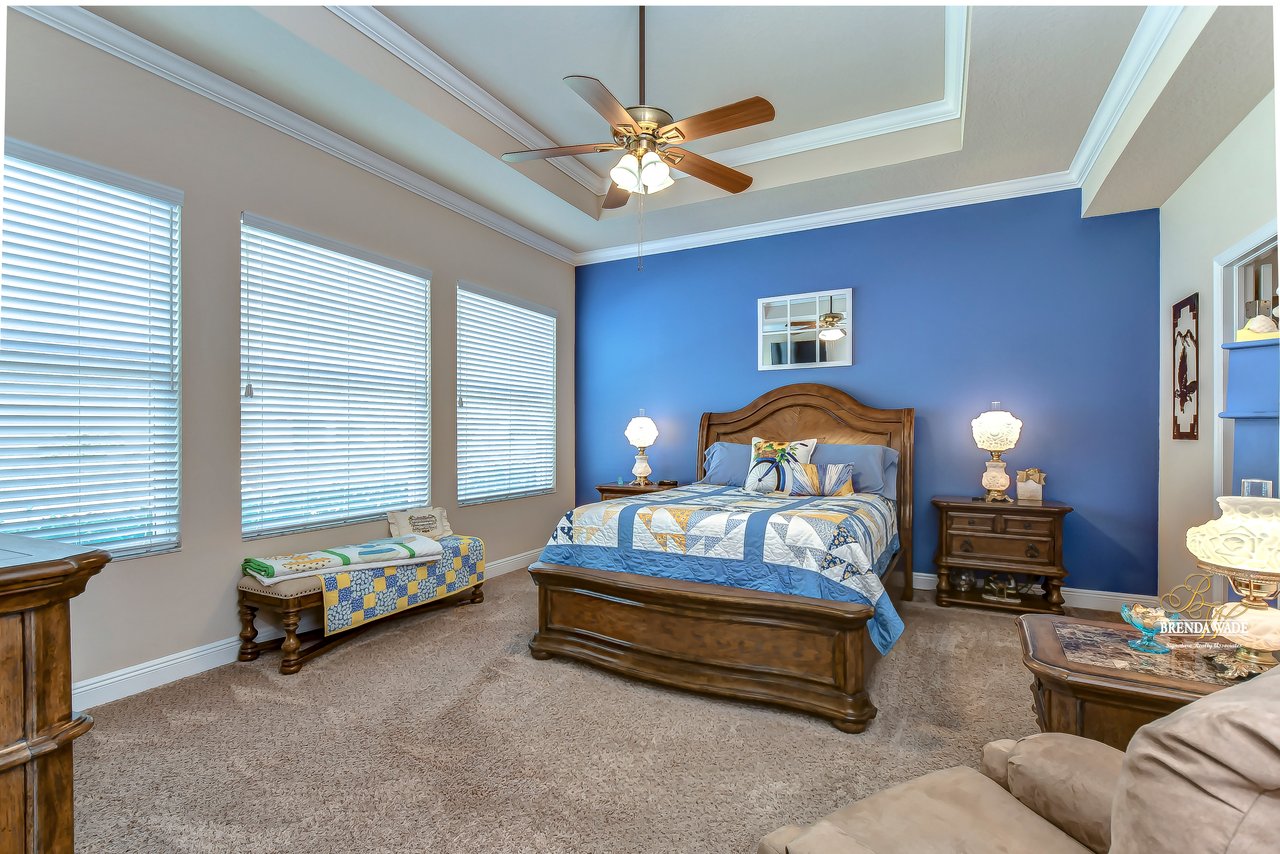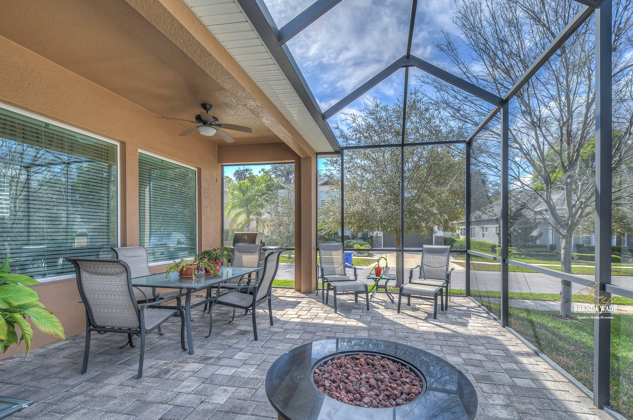 It is our pleasure to welcome you to this STUNNING corner lot beauty located in the gated Brooker Reserve community! Meticulous landscaping, 3-car garage, stacked stone accents, and pavered walkway all tie together to create the ideal front elevation! Step inside and you will instantly know that THIS IS THE ONE! High ceilings, crown molding, neutral paint, and a highly functional open floor plan! This home has spectacular, large windows and there is no shortage of them allowing in the best natural lighting throughout the whole home! The formal dining room on the left offers a tray ceiling with crown, surely to be the new spot for all of your holiday meals! The absolute STAR of the home is the immaculate kitchen! Granite counters, designer cabinets topped with crown, tile backsplash, stainless appliances, and oversized island! Open to the kitchen is a more casual breakfast nook with a workstation and cabinetry for extra storage! The open great room will be your family's favorite place to kick back and relax! The owner's retreat is exquisite with a wall of windows, tray ceiling, HUGE walk-in closet, and generous en-suite with dual sinks, soaking tub, and separate walk-in shower! This ideal layout offers a triple split floor plan with the second bedroom located near the front of the home and a full bathroom nearby! The third bedroom is PERFECT as a guest or in-law suite with its own wing of the home complete with a loft area, private bathroom, and bedroom! What a lovely getaway for guests! The screened and pavered lanai is the best place to spend time with loved ones enjoying the amazing weather! There is a covered seating area and a hot tub spa for colder days! This marvelous home is move-in ready in the gated Brooker Reserve community! In a great location, you will enjoy being central to all the dining and shops on Bloomingdale Ave as well as SR-60! This home will show for itself how wonderful it is, come see it today!