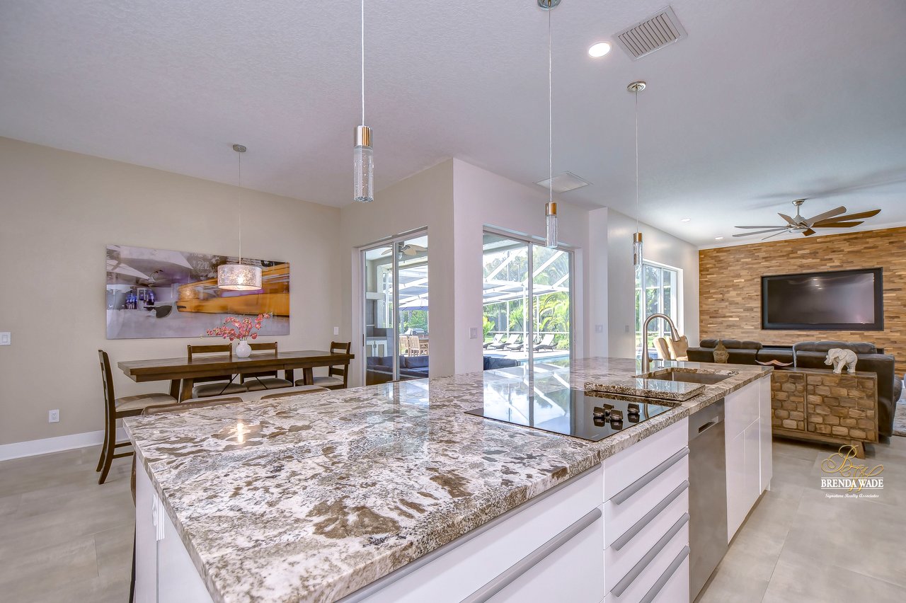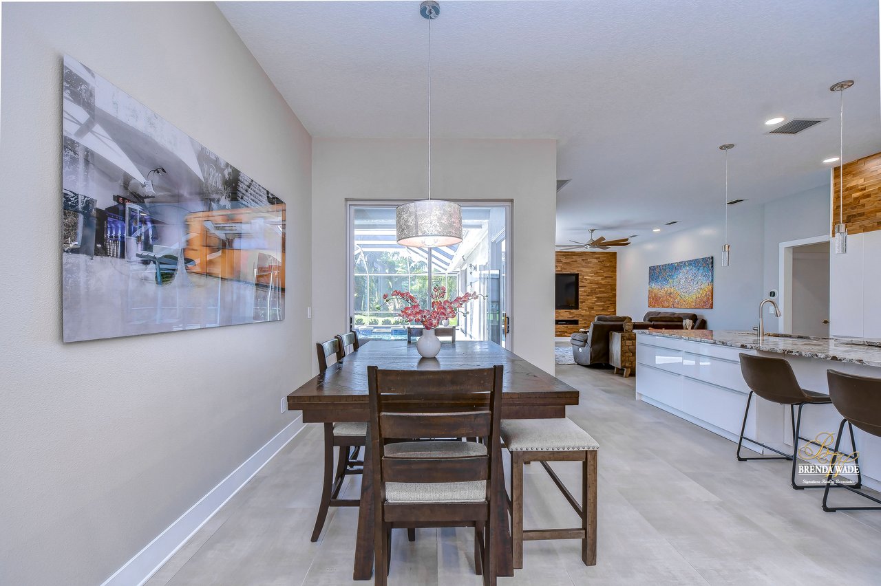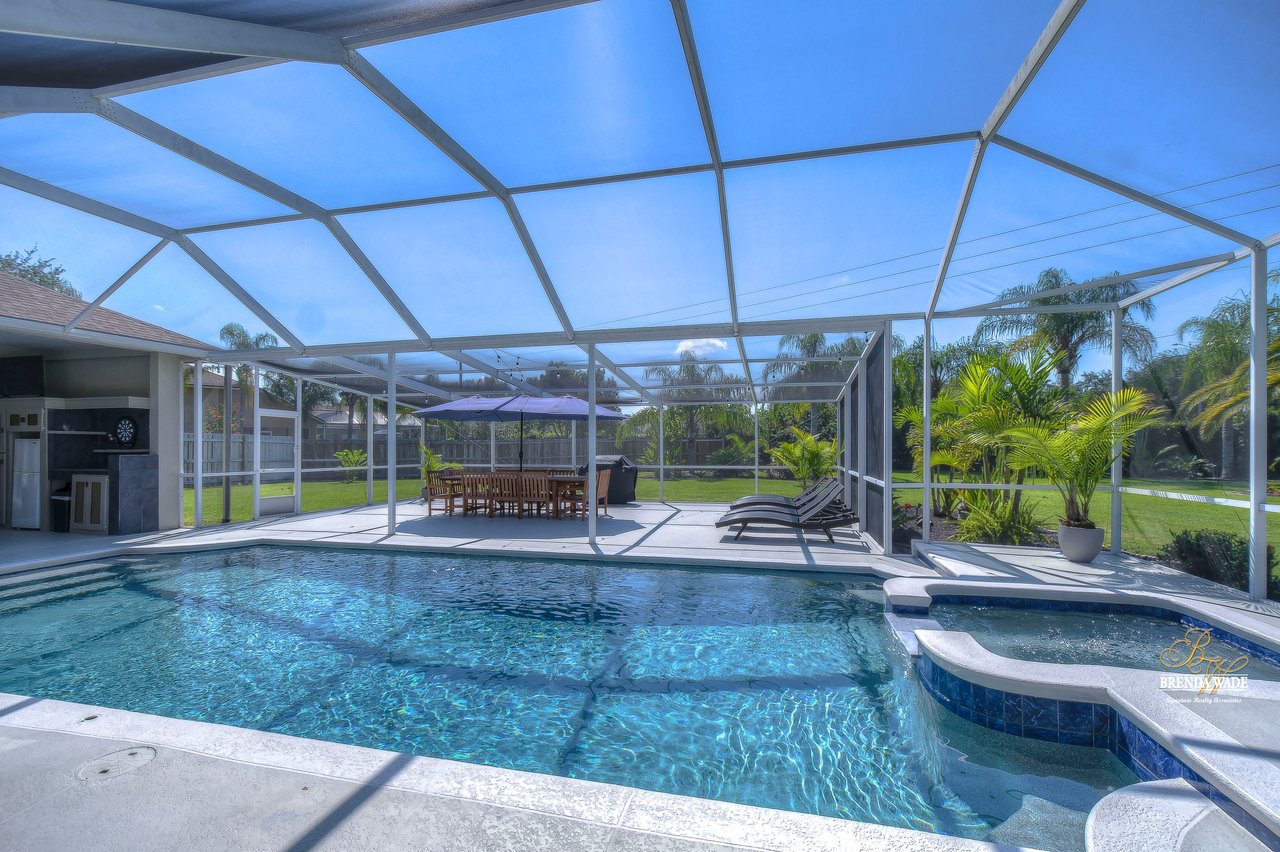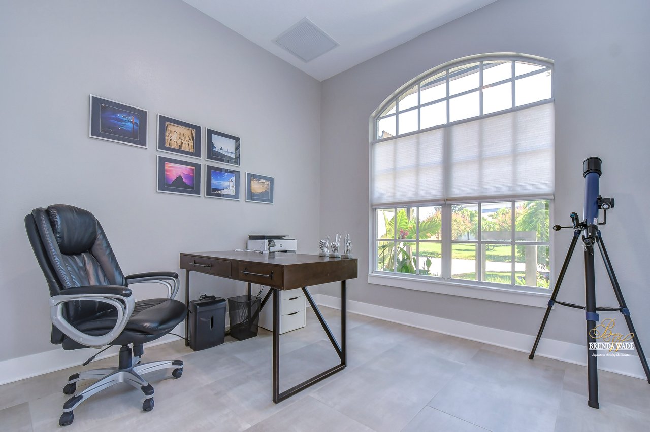 MARVELOUS, CAPTIVATING, LUXURIOUS! These are just a few words that come to mind when describing this fully remodeled estate located in the wonderful Providence Lakes community! The owners have completely remodeled this home from stem to stern! This home sits on just shy of a half-acre lot that is fenced and beautifully landscaped! You'll never want to leave; this home has it all! Stunning upgraded tile flooring spans through the main living areas making cleaning a breeze! A spacious home office at the front of the home features tons of natural light and beautiful glass French doors for added privacy! The completely remodeled kitchen is the heart of the home featuring floor-to-ceiling white cabinets, luxury granite countertops, stainless appliances, wood accents, and breakfast bar seating! With the great room adjacent to the kitchen, you'll never miss out on the conversation. The great room showcases a stunning wood accent wall with custom built-ins and large sliders leading you to the screened lanai! The primary suite is a true retreat featuring large tile flooring, private access to the lanai, stunning texture accents, and a custom wall feature that makes you feel like you're staying in a high-end resort. His and her closets boast custom organization storage, and private en-suite bath that will have you feeling like you're at the spa with beautiful polished concrete floors, a floating vanity, custom light mirror, and a custom rain walk-in shower with luxury tile to wash away the day! Two additional bedrooms sit on the opposite side of the home featuring custom doors, and large closets and share a beautiful bath. Two additional large bedrooms sit on a fully secluded wing of the home with private access off the lanai that could easily have one turned into a full kitchen making this the perfect space for multi-generational families. A beautiful custom bathroom serves as a wonderful pool bath and private en-suite bath! This home has it all and we haven't even started talking about the incredible backyard! The massive lanai features a large covered area, an extended screened patio, and a beautifully remodeled heated saltwater pool and spa! A second covered space on the lanai offers an area to build your custom outdoor grill! You'll love spending all your free time making lasting memories here. With this home sitting on almost half an acre there is an unbelievable amount of green space for kids and pets to play. You won't ever find another lot like this! Convenience is at your fingertips, as this home offers easy access to shopping, restaurants, I-75, and the Crosstown Expressway. Opportunities like this don't come often. Schedule your showing today!