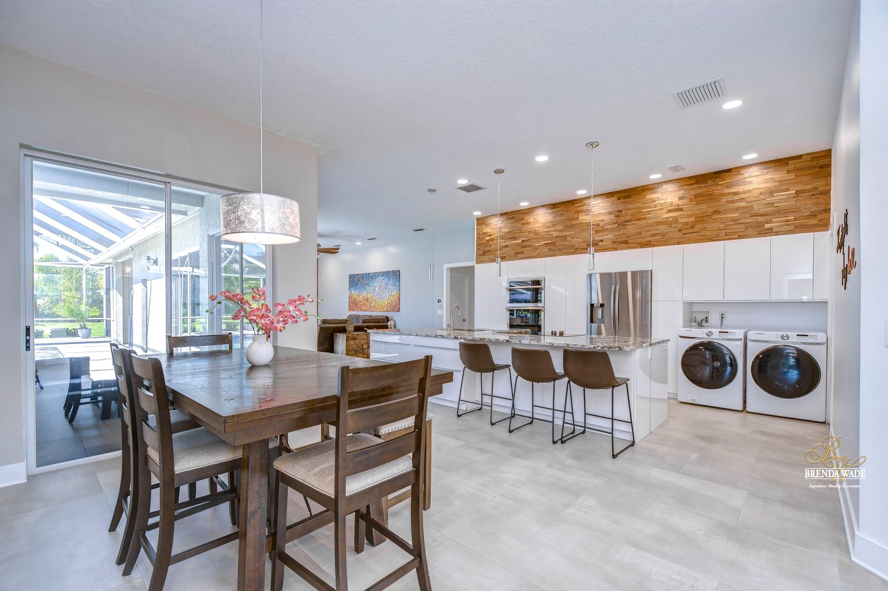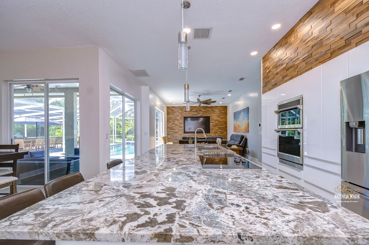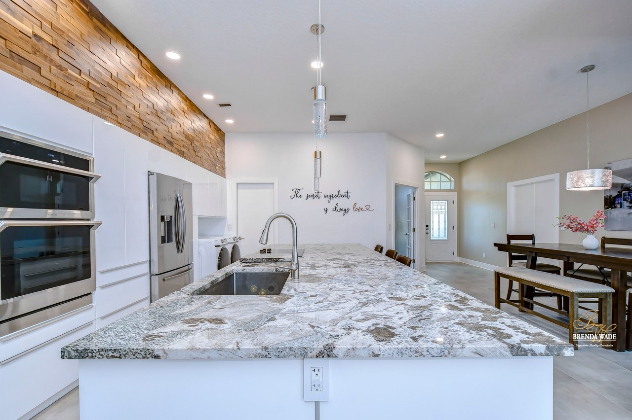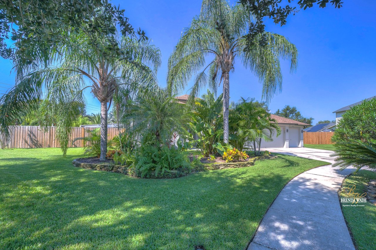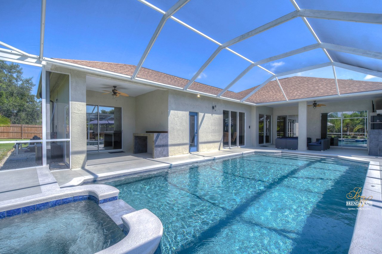 MARVELOUS, CAPTIVATING, LUXURIOUS! These are just a few words that come to mind when describing this fully remodeled estate located in the wonderful Providence Lakes community! The owners have completely remodeled this home from stem to stern! This home sits on just shy of a half-acre lot that is fenced and beautifully landscaped! You'll never want to leave; this home has it all! Stunning upgraded tile flooring spans through the main living areas making cleaning a breeze! A spacious home office at the front of the home features tons of natural light and beautiful glass French doors for added privacy! The completely remodeled kitchen is the heart of the home featuring floor-to-ceiling white cabinets, luxury granite countertops, stainless appliances, wood accents, and breakfast bar seating! With the great room adjacent to the kitchen, you'll never miss out on the conversation. The great room showcases a stunning wood accent wall with custom built-ins and large sliders leading you to the screened lanai! The primary suite is a true retreat featuring large tile flooring, private access to the lanai, stunning texture accents, and a custom wall feature that makes you feel like you're staying in a high-end resort. His and her closets boast custom organization storage, and private en-suite bath that will have you feeling like you're at the spa with beautiful polished concrete floors, a floating vanity, custom light mirror, and a custom rain walk-in shower with luxury tile to wash away the day! Two additional bedrooms sit on the opposite side of the home featuring custom doors, and large closets and share a beautiful bath. Two additional large bedrooms sit on a fully secluded wing of the home with private access off the lanai that could easily have one turned into a full kitchen making this the perfect space for multi-generational families. A beautiful custom bathroom serves as a wonderful pool bath and private en-suite bath! This home has it all and we haven't even started talking about the incredible backyard! The massive lanai features a large covered area, an extended screened patio, and a beautifully remodeled heated saltwater pool and spa! A second covered space on the lanai offers an area to build your custom outdoor grill! You'll love spending all your free time making lasting memories here. With this home sitting on almost half an acre there is an unbelievable amount of green space for kids and pets to play. You won't ever find another lot like this! Convenience is at your fingertips, as this home offers easy access to shopping, restaurants, I-75, and the Crosstown Expressway. Opportunities like this don't come often. Schedule your showing today!