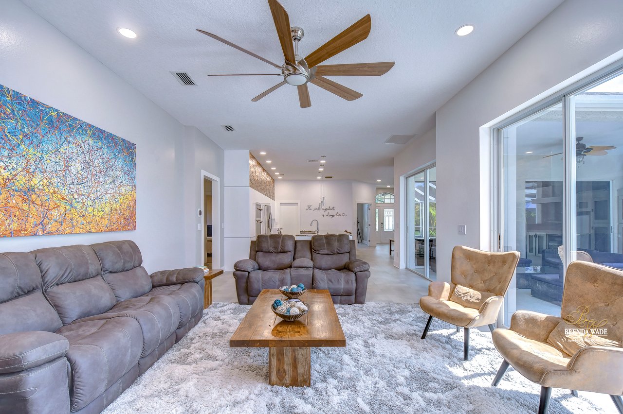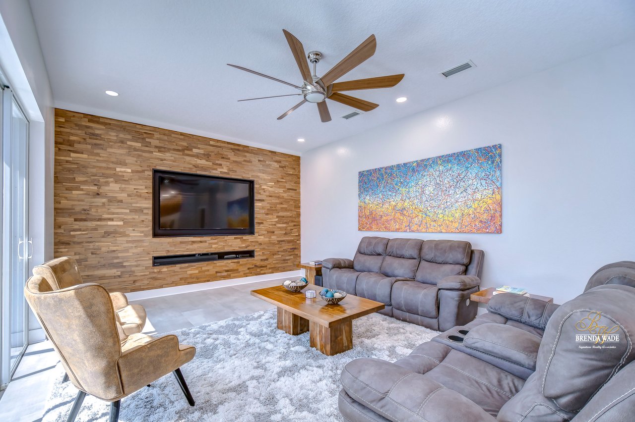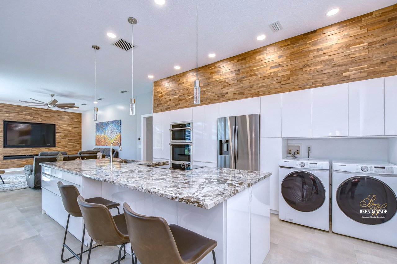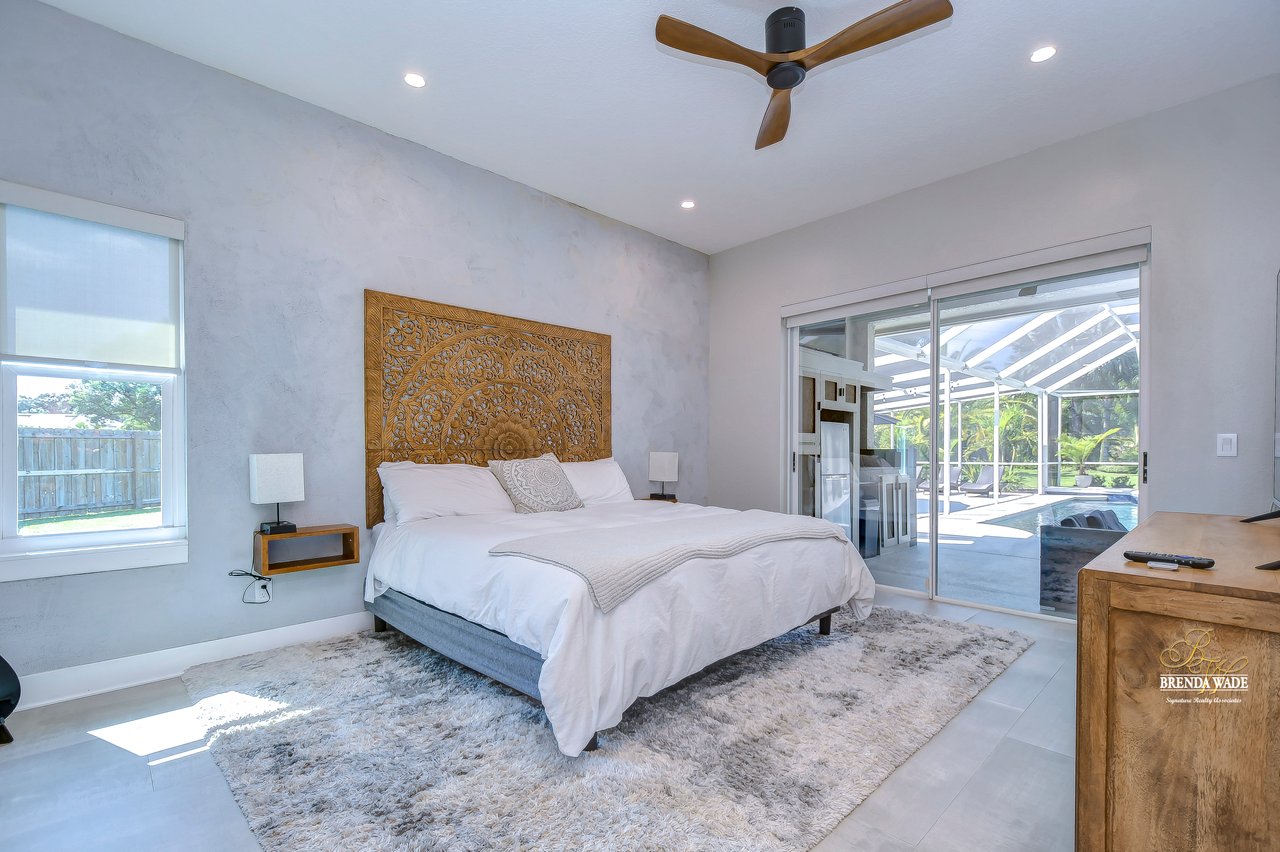 MARVELOUS, CAPTIVATING, LUXURIOUS! These are just a few words that come to mind when describing this fully remodeled estate located in the wonderful Providence Lakes community! The owners have completely remodeled this home from stem to stern! This home sits on just shy of a half-acre lot that is fenced and beautifully landscaped! You'll never want to leave; this home has it all! Stunning upgraded tile flooring spans through the main living areas making cleaning a breeze! A spacious home office at the front of the home features tons of natural light and beautiful glass French doors for added privacy! The completely remodeled kitchen is the heart of the home featuring floor-to-ceiling white cabinets, luxury granite countertops, stainless appliances, wood accents, and breakfast bar seating! With the great room adjacent to the kitchen, you'll never miss out on the conversation. The great room showcases a stunning wood accent wall with custom built-ins and large sliders leading you to the screened lanai! The primary suite is a true retreat featuring large tile flooring, private access to the lanai, stunning texture accents, and a custom wall feature that makes you feel like you're staying in a high-end resort. His and her closets boast custom organization storage, and private en-suite bath that will have you feeling like you're at the spa with beautiful polished concrete floors, a floating vanity, custom light mirror, and a custom rain walk-in shower with luxury tile to wash away the day! Two additional bedrooms sit on the opposite side of the home featuring custom doors, and large closets and share a beautiful bath. Two additional large bedrooms sit on a fully secluded wing of the home with private access off the lanai that could easily have one turned into a full kitchen making this the perfect space for multi-generational families. A beautiful custom bathroom serves as a wonderful pool bath and private en-suite bath! This home has it all and we haven't even started talking about the incredible backyard! The massive lanai features a large covered area, an extended screened patio, and a beautifully remodeled heated saltwater pool and spa! A second covered space on the lanai offers an area to build your custom outdoor grill! You'll love spending all your free time making lasting memories here. With this home sitting on almost half an acre there is an unbelievable amount of green space for kids and pets to play. You won't ever find another lot like this! Convenience is at your fingertips, as this home offers easy access to shopping, restaurants, I-75, and the Crosstown Expressway. Opportunities like this don't come often. Schedule your showing today!