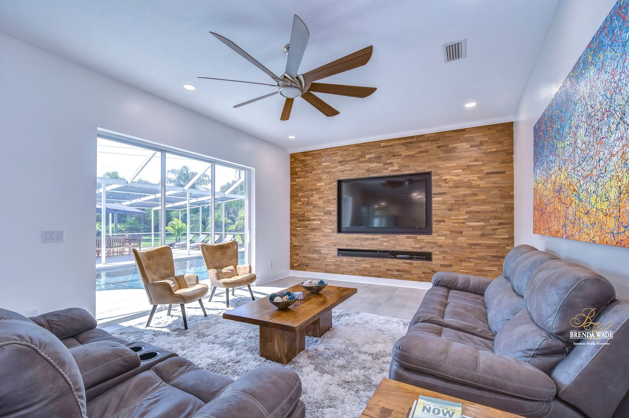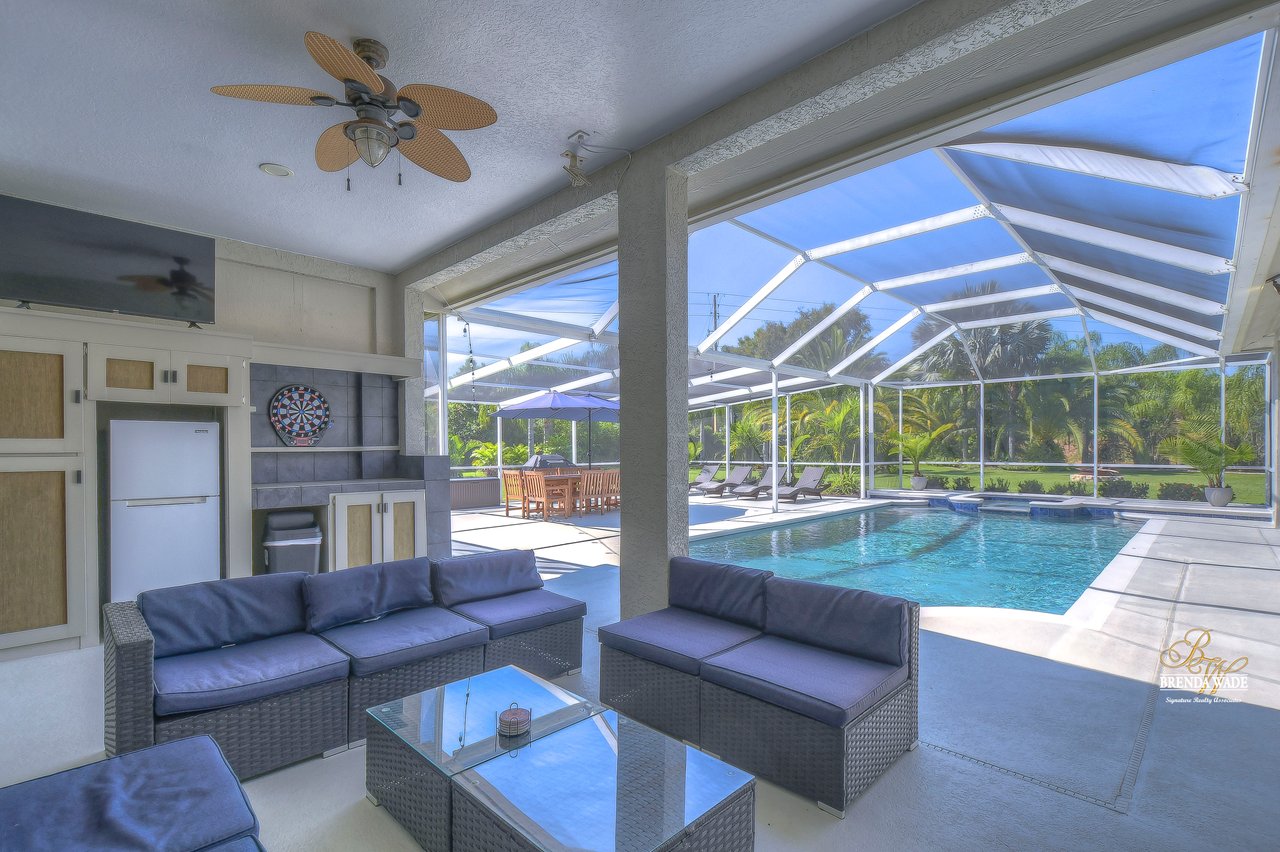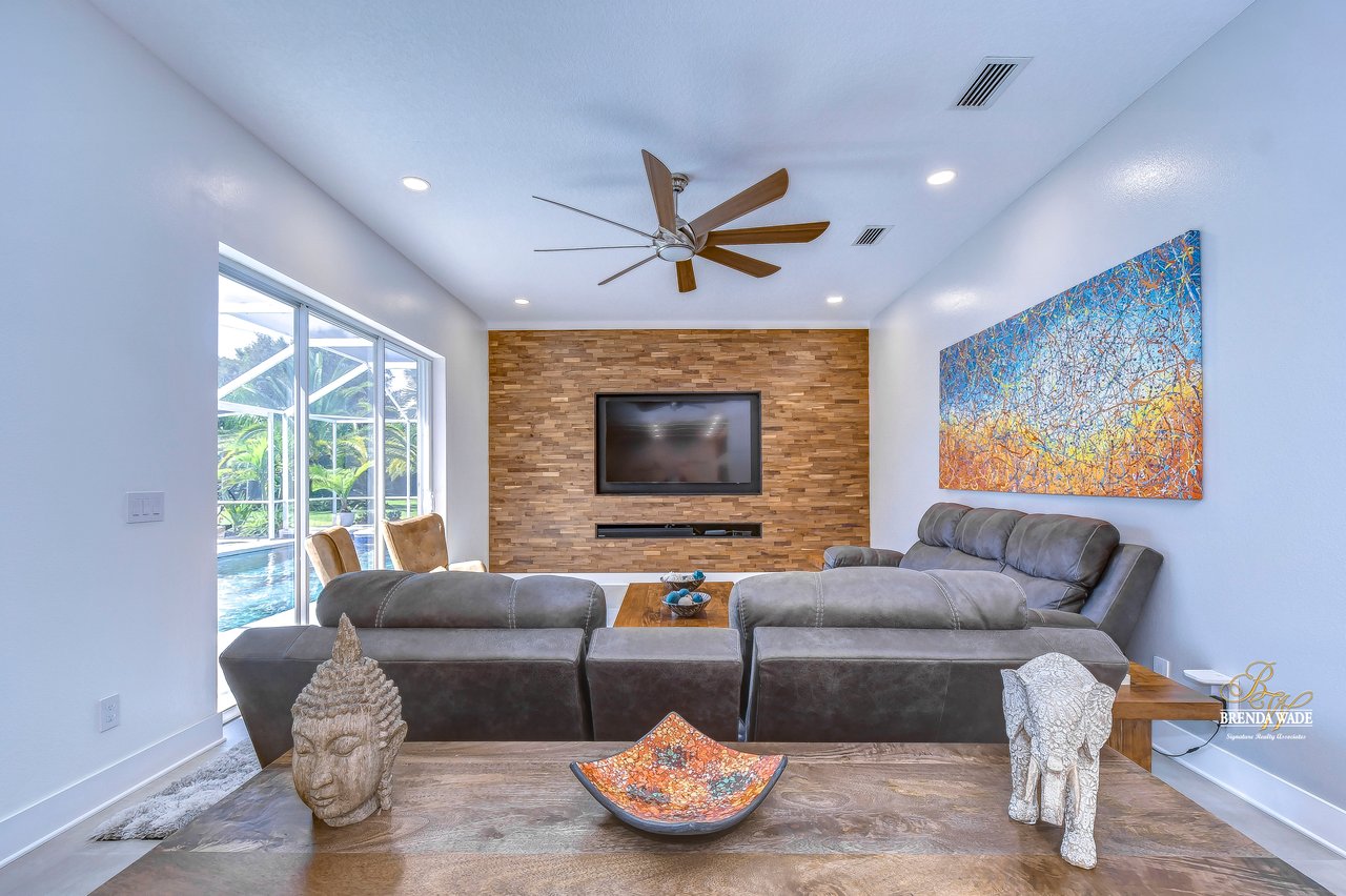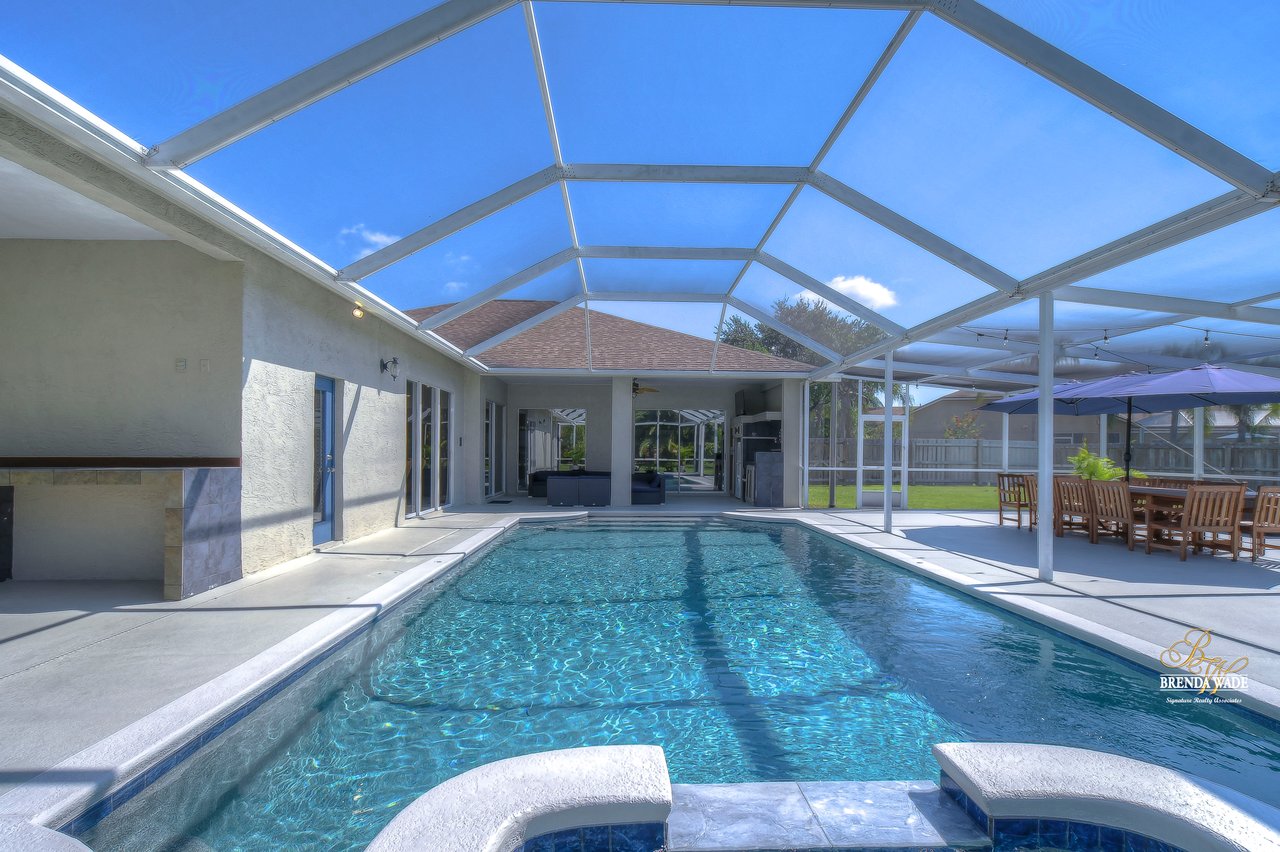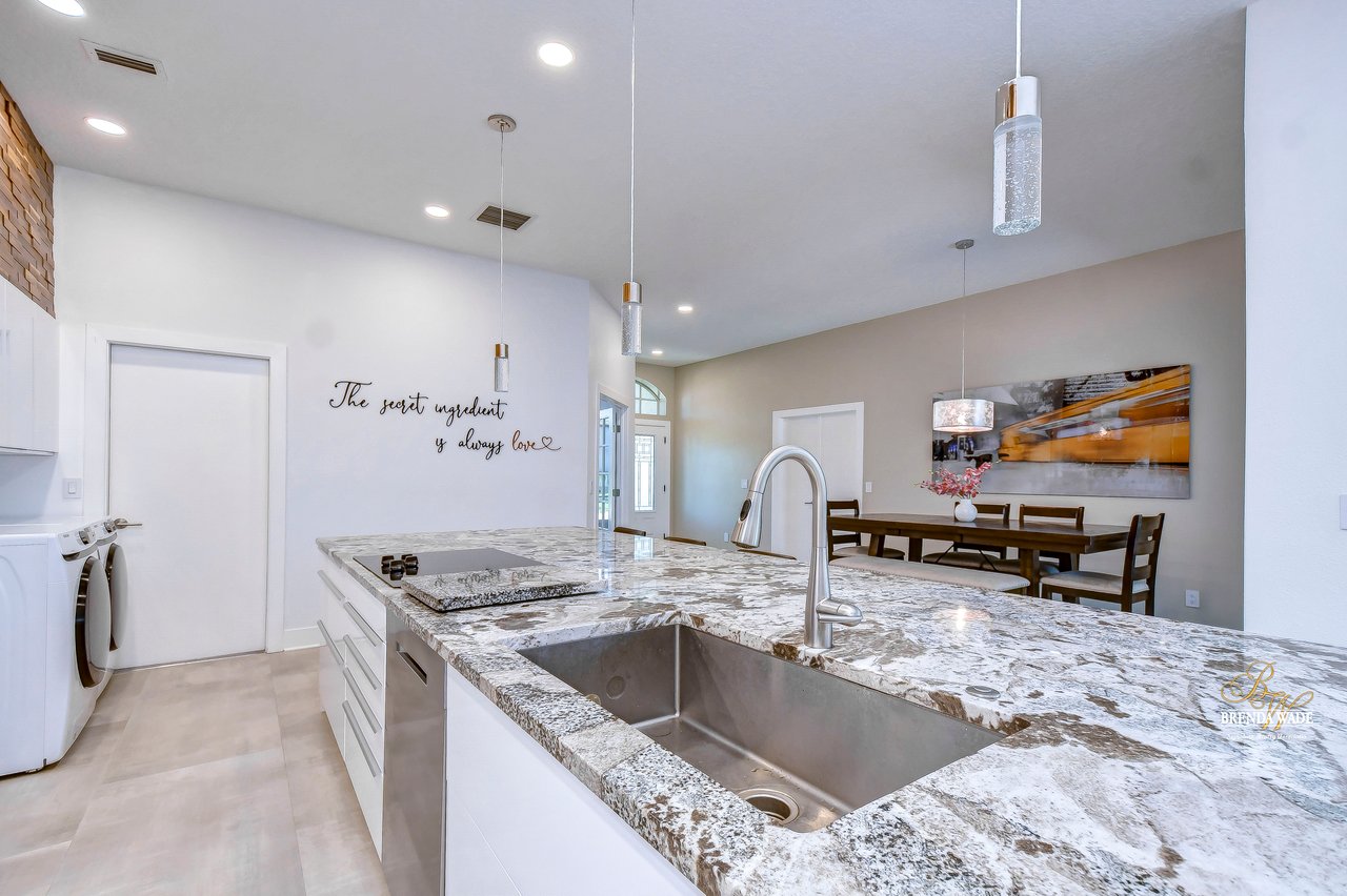MARVELOUS, CAPTIVATING, LUXURIOUS! These are just a few words that come to mind when describing this fully remodeled estate located in the wonderful Providence Lakes community! The owners have completely remodeled this home from stem to stern! This home sits on just shy of a half-acre lot that is fenced and beautifully landscaped! You'll never want to leave; this home has it all! Stunning upgraded tile flooring spans through the main living areas making cleaning a breeze! A spacious home office at the front of the home features tons of natural light and beautiful glass French doors for added privacy! The completely remodeled kitchen is the heart of the home featuring floor-to-ceiling white cabinets, luxury granite countertops, stainless appliances, wood accents, and breakfast bar seating! With the great room adjacent to the kitchen, you'll never miss out on the conversation. The great room showcases a stunning wood accent wall with custom built-ins and large sliders leading you to the screened lanai! The primary suite is a true retreat featuring large tile flooring, private access to the lanai, stunning texture accents, and a custom wall feature that makes you feel like you're staying in a high-end resort. His and her closets boast custom organization storage, and private en-suite bath that will have you feeling like you're at the spa with beautiful polished concrete floors, a floating vanity, custom light mirror, and a custom rain walk-in shower with luxury tile to wash away the day! Two additional bedrooms sit on the opposite side of the home featuring custom doors, and large closets and share a beautiful bath. Two additional large bedrooms sit on a fully secluded wing of the home with private access off the lanai that could easily have one turned into a full kitchen making this the perfect space for multi-generational families. A beautiful custom bathroom serves as a wonderful pool bath and private en-suite bath! This home has it all and we haven't even started talking about the incredible backyard! The massive lanai features a large covered area, an extended screened patio, and a beautifully remodeled heated saltwater pool and spa! A second covered space on the lanai offers an area to build your custom outdoor grill! You'll love spending all your free time making lasting memories here. With this home sitting on almost half an acre there is an unbelievable amount of green space for kids and pets to play. You won't ever find another lot like this! Convenience is at your fingertips, as this home offers easy access to shopping, restaurants, I-75, and the Crosstown Expressway. Opportunities like this don't come often. Schedule your showing today!