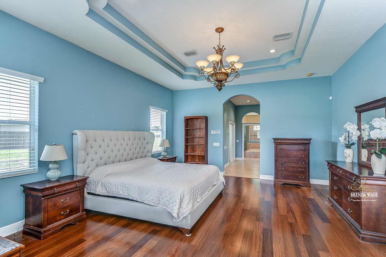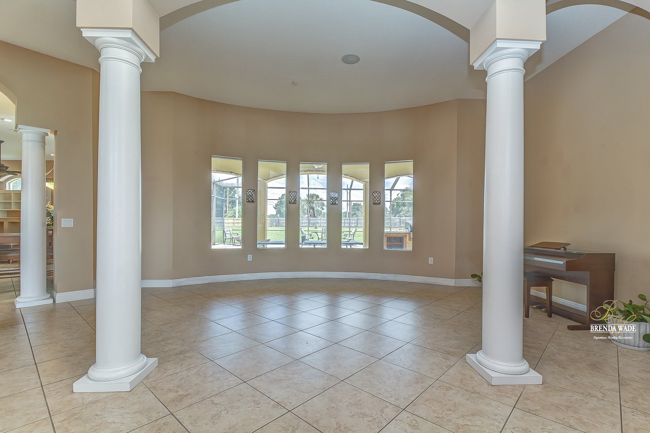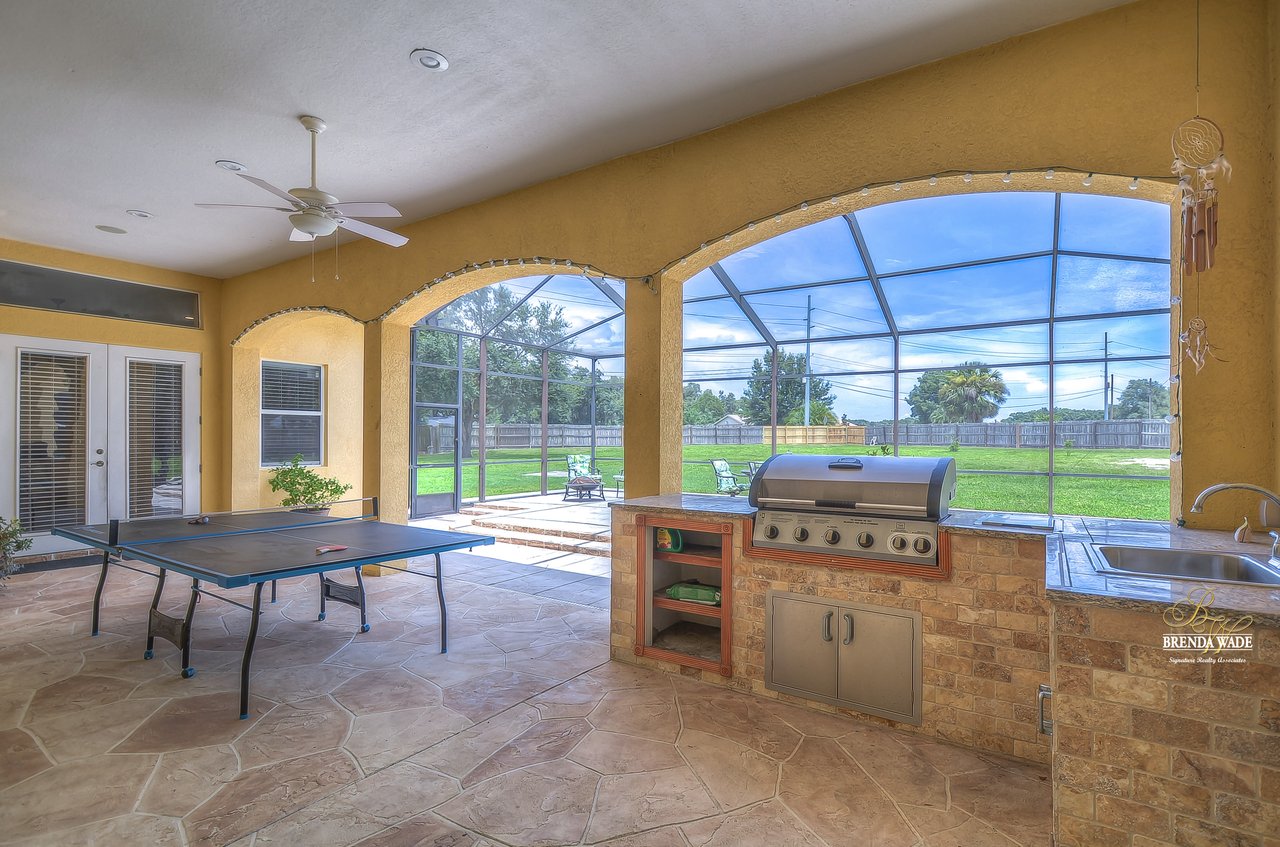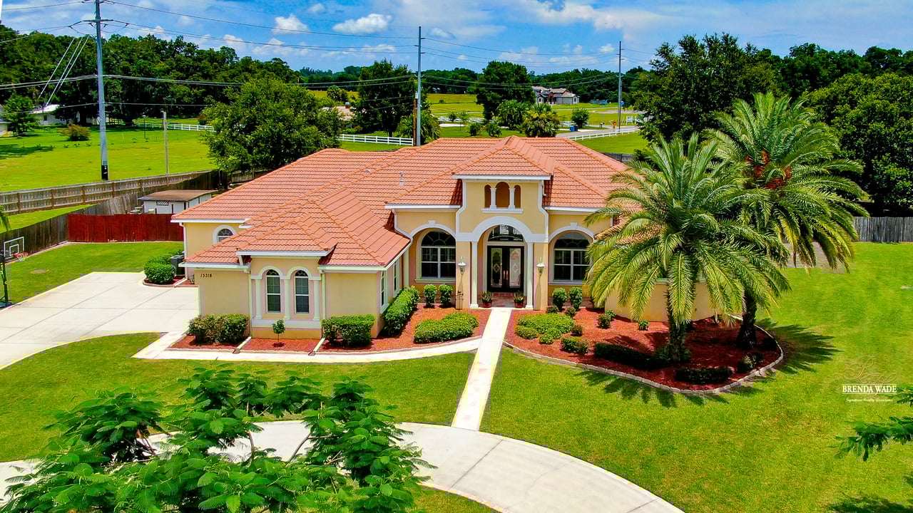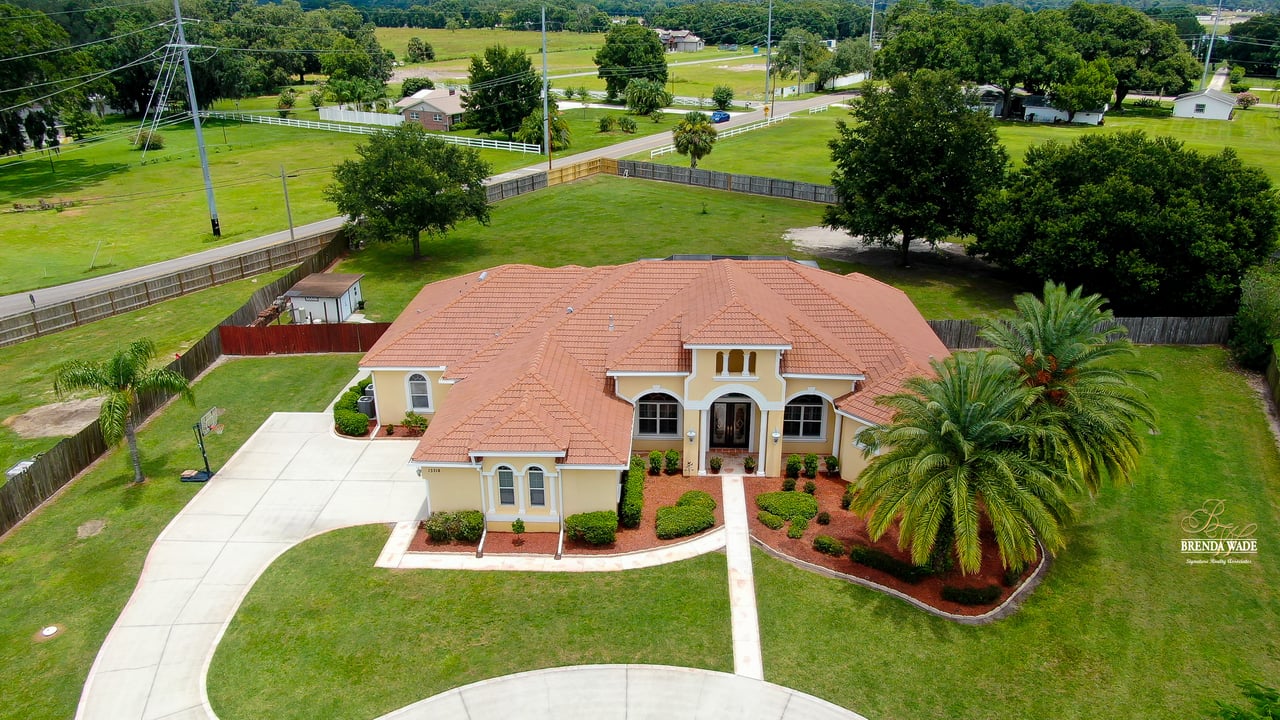 Welcome to this custom-built estate located in the beautiful Jaudon Ranch Estates community! Sitting on an oversized lot, just under 1-acre, the curb appeal will leave you eager to step inside! Complete with a circular driveway, tile roof, well-manicured landscaping, side entry oversized garage, and Mediterranean style exterior! The current owners have replaced the septic drain field, water softener, pressure tank, and gas water heater in 2021! Through the double glass front door is a grand foyer with remarkable light fixtures that leads into the open floor plan with high ceilings, and large tile flooring set at the diagonal! The dining room is perfect for formal meals with a double tray ceiling, adjustable chandelier, and archways with columns that lead you into the living room! The elegant living room boasts a wall of arched windows with views to the pavered lanai! Move into the gourmet kitchen featuring all of the bells and whistles including rich wood cabinets with crown, built-in stainless appliances, granite counters, center island with vegetable sink, and a lengthy breakfast bar! Check out the dry bar with beverage fridge and huge walk-in pantry nearby! There is a cozy breakfast nook for easier meals with a stunning butted glass window! The spacious family room offers French door exit to the lanai with transom window above, built-in entertainment center, and great natural light! Through a set of arched double doors is the master retreat that will be the owners' oasis featuring a double tray ceiling, rich wood flooring, large sitting area, double walk-in closets, and remarkable en-suite! The spa-like master bathroom features separate vanities, walk-through shower, and built-in soaking tub! There are two generously sized bedrooms that share a Jack & Jill bathroom which includes a walk-in shower, garden tub, and dual sinks! Working from home will be a breeze in the private home office with plantation shutters behind a set of French doors! Central to the home office as well as the living areas is a powder bathroom with outdoor access for your convenience! If you love to entertain outdoors, this is the home for you! A large covered seating area, outdoor kitchen, and spacious screened lanai overlooking your HUGE fenced yard! Looking for a pool home? There is plenty of room to build your dream pool here! You can’t beat this home; it is in a quiet neighborhood with amazing neighbors and can easily accommodate a commute to Tampa or Orlando with this great location! Come see it today, before you are too late!