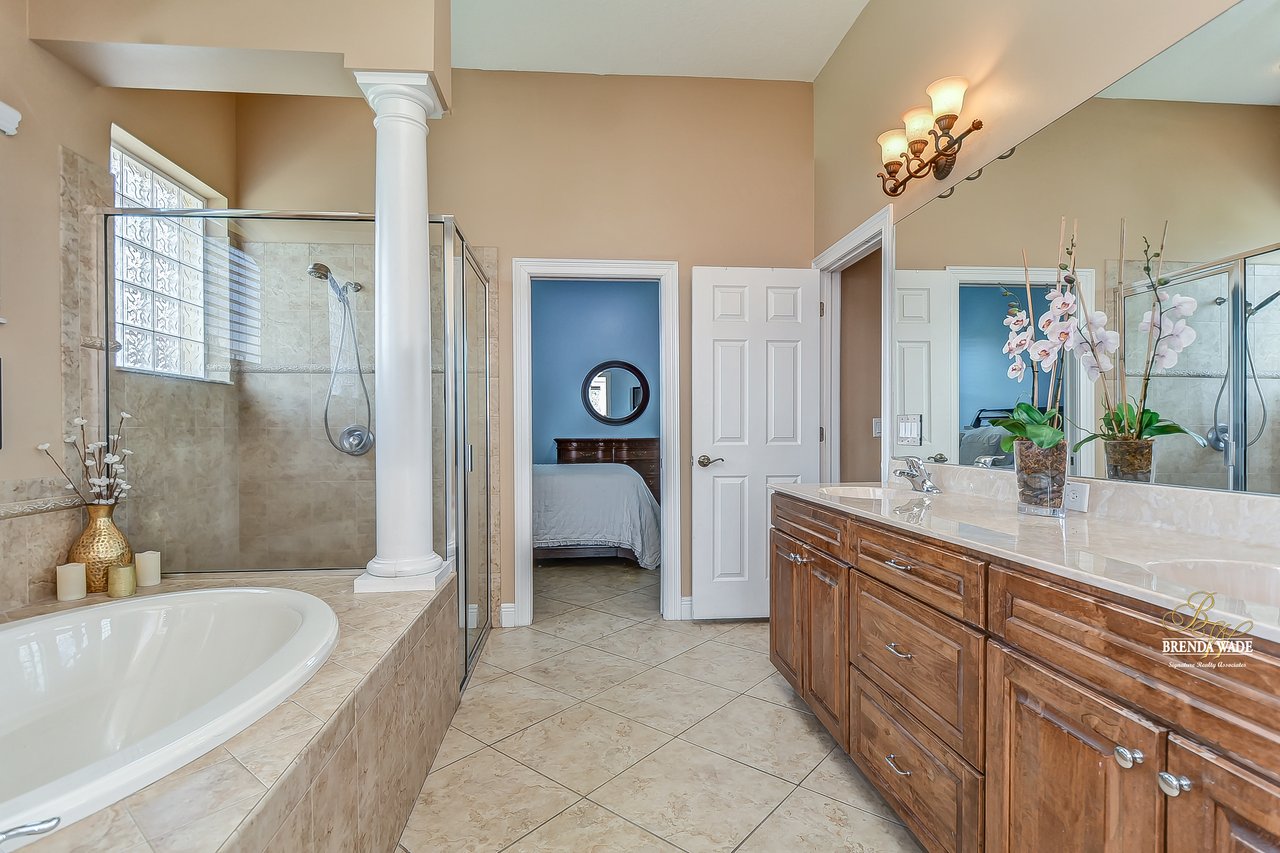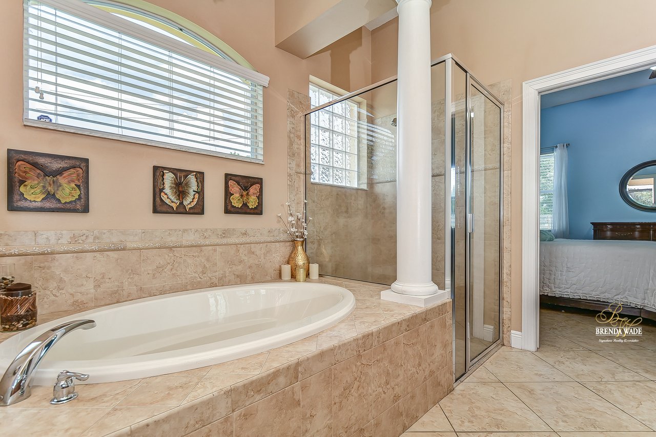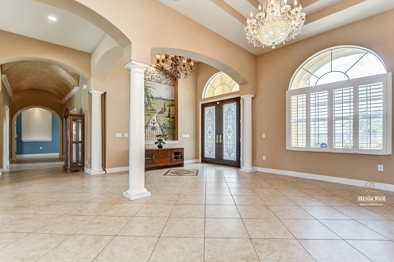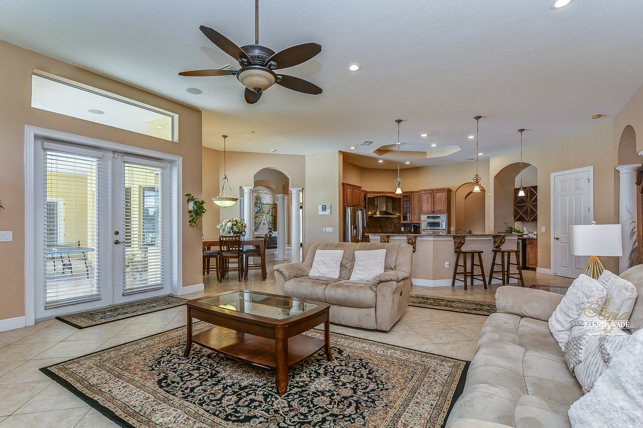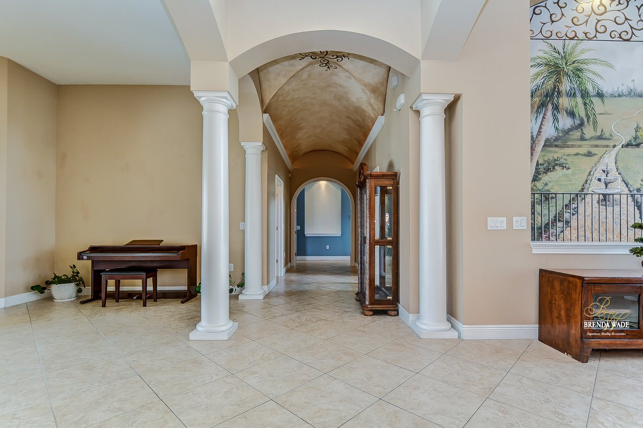 Welcome to this custom-built estate located in the beautiful Jaudon Ranch Estates community! Sitting on an oversized lot, just under 1-acre, the curb appeal will leave you eager to step inside! Complete with a circular driveway, tile roof, well-manicured landscaping, side entry oversized garage, and Mediterranean style exterior! The current owners have replaced the septic drain field, water softener, pressure tank, and gas water heater in 2021! Through the double glass front door is a grand foyer with remarkable light fixtures that leads into the open floor plan with high ceilings, and large tile flooring set at the diagonal! The dining room is perfect for formal meals with a double tray ceiling, adjustable chandelier, and archways with columns that lead you into the living room! The elegant living room boasts a wall of arched windows with views to the pavered lanai! Move into the gourmet kitchen featuring all of the bells and whistles including rich wood cabinets with crown, built-in stainless appliances, granite counters, center island with vegetable sink, and a lengthy breakfast bar! Check out the dry bar with beverage fridge and huge walk-in pantry nearby! There is a cozy breakfast nook for easier meals with a stunning butted glass window! The spacious family room offers French door exit to the lanai with transom window above, built-in entertainment center, and great natural light! Through a set of arched double doors is the master retreat that will be the owners' oasis featuring a double tray ceiling, rich wood flooring, large sitting area, double walk-in closets, and remarkable en-suite! The spa-like master bathroom features separate vanities, walk-through shower, and built-in soaking tub! There are two generously sized bedrooms that share a Jack & Jill bathroom which includes a walk-in shower, garden tub, and dual sinks! Working from home will be a breeze in the private home office with plantation shutters behind a set of French doors! Central to the home office as well as the living areas is a powder bathroom with outdoor access for your convenience! If you love to entertain outdoors, this is the home for you! A large covered seating area, outdoor kitchen, and spacious screened lanai overlooking your HUGE fenced yard! Looking for a pool home? There is plenty of room to build your dream pool here! You can’t beat this home; it is in a quiet neighborhood with amazing neighbors and can easily accommodate a commute to Tampa or Orlando with this great location! Come see it today, before you are too late!