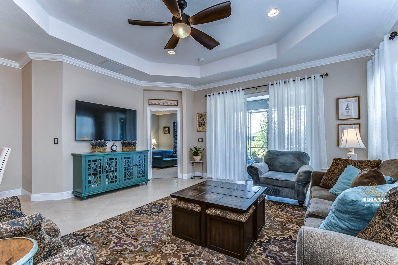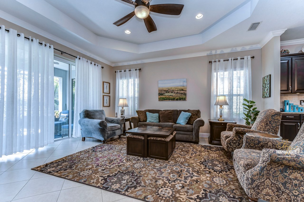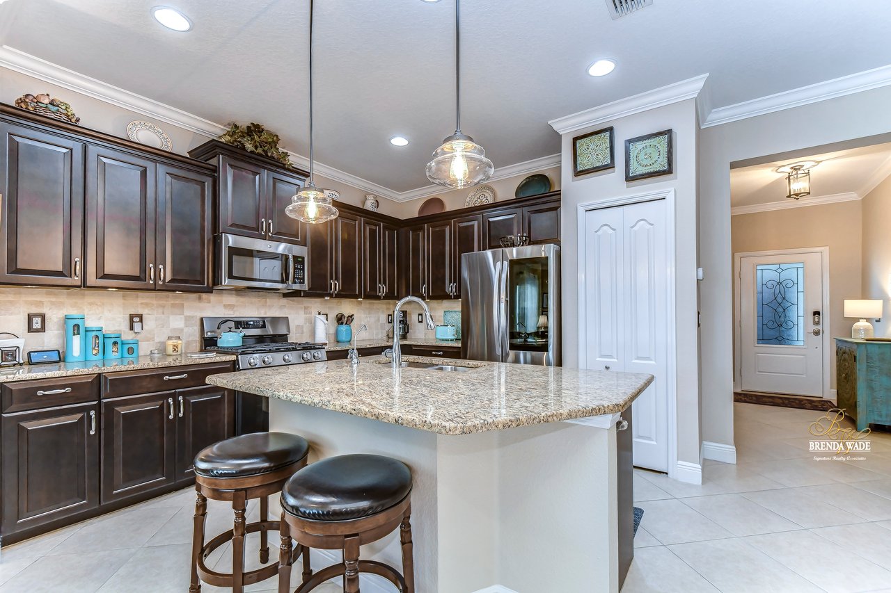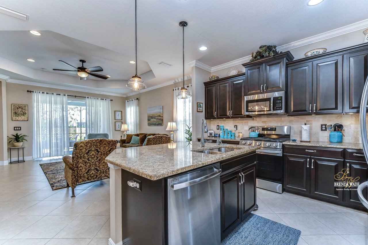 Prepare to be swept off your feet by this stunning home located in the desirable gated Fishhawk West Community! As you approach the property, your eyes will be drawn to the inviting curb appeal, complete with a beautifully manicured lawn, decorative shutters, a beautiful front porch, and an exquisite glass insert on the front door! Once inside, this house will immediately make you feel right at home with its warm and welcoming atmosphere! Every inch of this home has been thoughtfully upgraded featuring gorgeous tile, brand new carpet, engineered hardwood, and crown moulding throughout! A versatile flex room awaits you at the front of the house, ready to serve as a sophisticated office, a cozy sitting room, or a fun playroom for the little ones! The true heart of this home is the spectacular chef's kitchen, which boasts an oversized center island with bar seating, 42" espresso cabinets, IQ gas range, reverse osmosis water system and luxurious granite countertops! You'll love the convenient shelf genie pull-out drawers in the lower cabinets, providing ample storage space while making it effortless to store and retrieve your belongings! The open-concept design of the kitchen and great room creates a spacious and welcoming environment, perfect for gatherings of any size! The dining area is adjacent to the kitchen and allows for flexible seating arrangements, making it possible to accommodate large or small groups of people with ease! As you retreat to the primary suite, you'll be transported to a peaceful sanctuary that will leave you feeling rejuvenated and refreshed! The primary suite features brand new carpet, his and her closets, and a breathtaking en-suite bathroom! The en-suite bath features separate vanities and a large walk-in shower, perfect for unwinding after a long day! The secondary bedroom, located at the front of the house features brand new carpet and a fabulous walk-in closet! The extended screened lanai is the ultimate oasis, offering the perfect spot to savor your morning coffee or to relax and watch the sunset! Plus, with no neighbors directly behind you, you'll enjoy the peace and serenity of your own private paradise! This home also features storm panels and hanging storage racks in the garage giving ample storage space! Don't miss out on this truly exceptional home that will take your breath away!