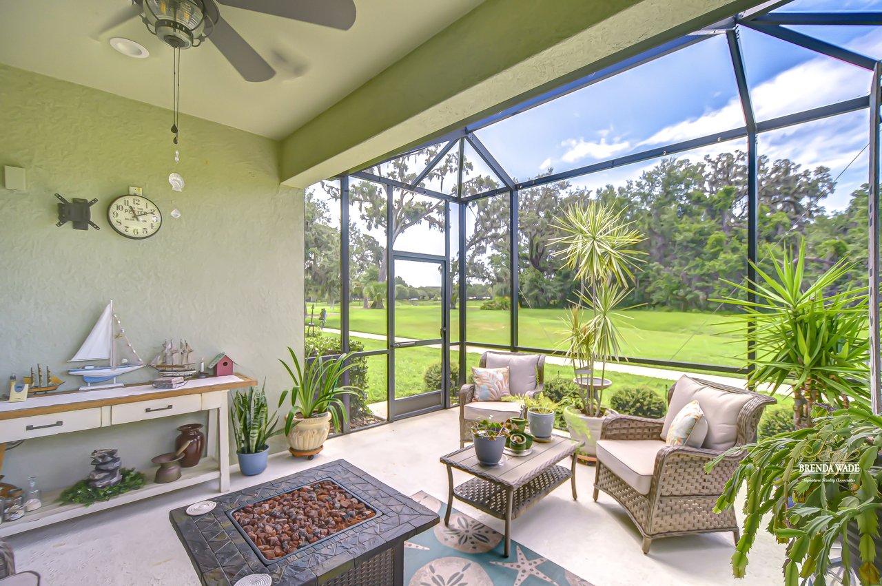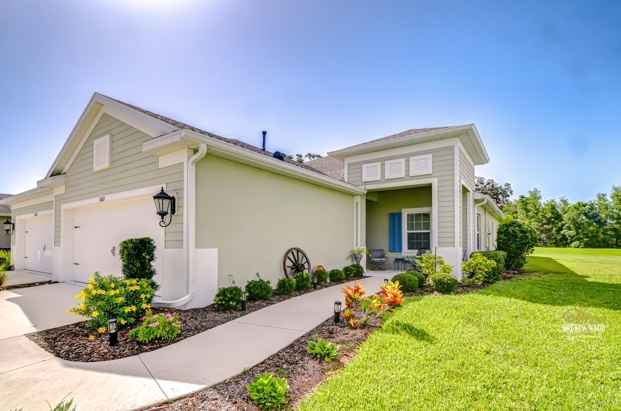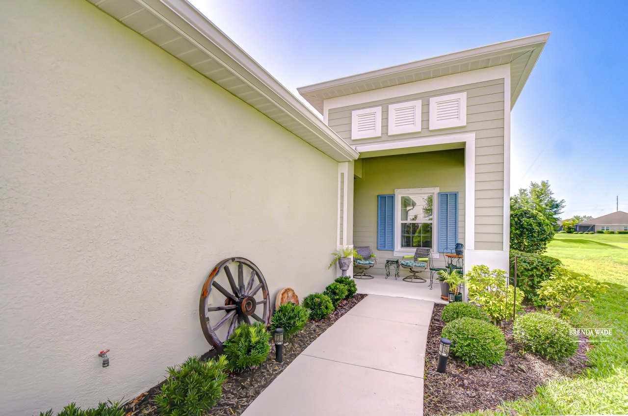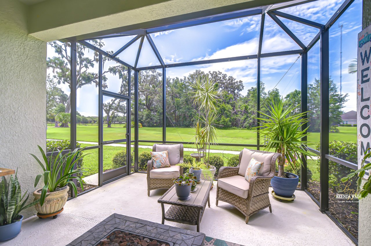 This beautifully maintained 2-bedroom PLUS private office, 2-bathroom, 2-car garage villa offers the best of Florida living! Nestled within Sagewood, a gated enclave of villas in the highly sought-after FishHawk West community, this home delivers low-maintenance living paired with top-rated Hillsborough County schools and resort-style amenities -- including parks, playground, splash pad, fitness center, and a lake house with recreation space -- all just steps from your front door! Meticulously tropical landscaped with a new glass front storm door (2023) and added gutters (2024), this home welcomes you with charming curb appeal and a covered front porch. Inside, double doors open to a private flexible home office, featuring sleek tile flooring -- ideal for working from home, a guest space, playroom, or hobby room to suit your lifestyle needs. The attractive flooring continues throughout the main living areas, enhanced by abundant natural light, crown molding, designer light fixtures throughout the home. The stunning kitchen is sure to impress with upgraded grey cabinetry with crown molding, stainless appliances including a gas range, a bold herringbone subway tile backsplash, and a large center island with breakfast bar seating -- ideal for entertaining. The open-concept design flows seamlessly from the dining area to the spacious family room, featuring a tray ceiling with crown, ceiling fan, additional built-in speakers, and pocket sliders that lead to the screened and covered lanai that also has built-in speakers-- blending indoor and outdoor living with ease. The backyard is a peaceful retreat with no rear neighbors, lush green space-- the perfect setting for entertaining or unwinding in privacy. The luxurious primary suite boasts a picturesque window, walk-in closet, and spa-like en-suite with dual vanities and a large walk-in shower. A split floor plan ensures the secondary bedroom and full guest bath are positioned for optimal privacy. Lovingly cared for and thoughtfully updated, this villa is ready for you to experience the incredible FishHawk West lifestyle -- schedule your tour today!