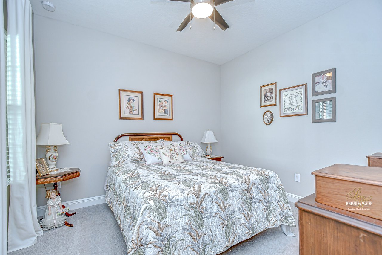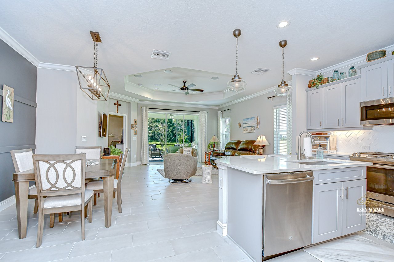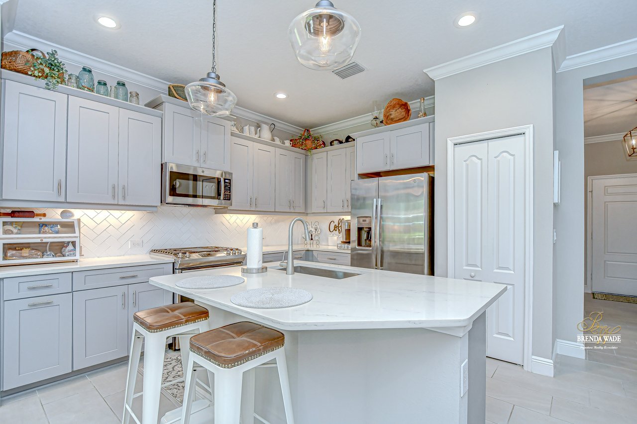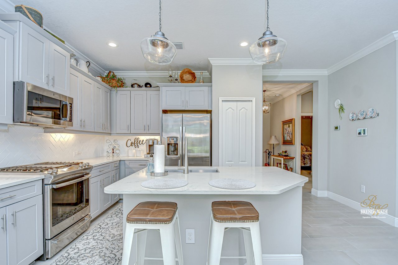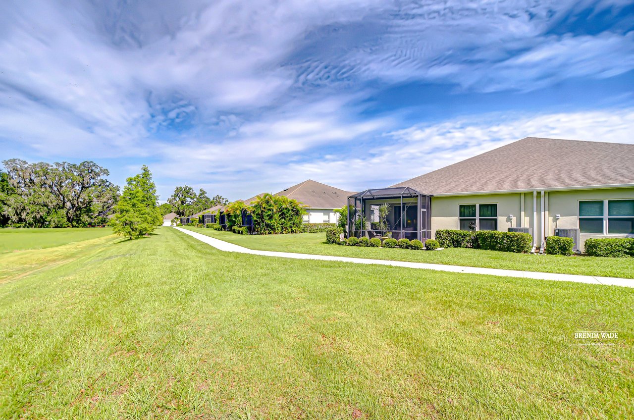 This beautifully maintained 2-bedroom PLUS private office, 2-bathroom, 2-car garage villa offers the best of Florida living! Nestled within Sagewood, a gated enclave of villas in the highly sought-after FishHawk West community, this home delivers low-maintenance living paired with top-rated Hillsborough County schools and resort-style amenities -- including parks, playground, splash pad, fitness center, and a lake house with recreation space -- all just steps from your front door! Meticulously tropical landscaped with a new glass front storm door (2023) and added gutters (2024), this home welcomes you with charming curb appeal and a covered front porch. Inside, double doors open to a private flexible home office, featuring sleek tile flooring -- ideal for working from home, a guest space, playroom, or hobby room to suit your lifestyle needs. The attractive flooring continues throughout the main living areas, enhanced by abundant natural light, crown molding, designer light fixtures throughout the home. The stunning kitchen is sure to impress with upgraded grey cabinetry with crown molding, stainless appliances including a gas range, a bold herringbone subway tile backsplash, and a large center island with breakfast bar seating -- ideal for entertaining. The open-concept design flows seamlessly from the dining area to the spacious family room, featuring a tray ceiling with crown, ceiling fan, additional built-in speakers, and pocket sliders that lead to the screened and covered lanai that also has built-in speakers-- blending indoor and outdoor living with ease. The backyard is a peaceful retreat with no rear neighbors, lush green space-- the perfect setting for entertaining or unwinding in privacy. The luxurious primary suite boasts a picturesque window, walk-in closet, and spa-like en-suite with dual vanities and a large walk-in shower. A split floor plan ensures the secondary bedroom and full guest bath are positioned for optimal privacy. Lovingly cared for and thoughtfully updated, this villa is ready for you to experience the incredible FishHawk West lifestyle -- schedule your tour today!