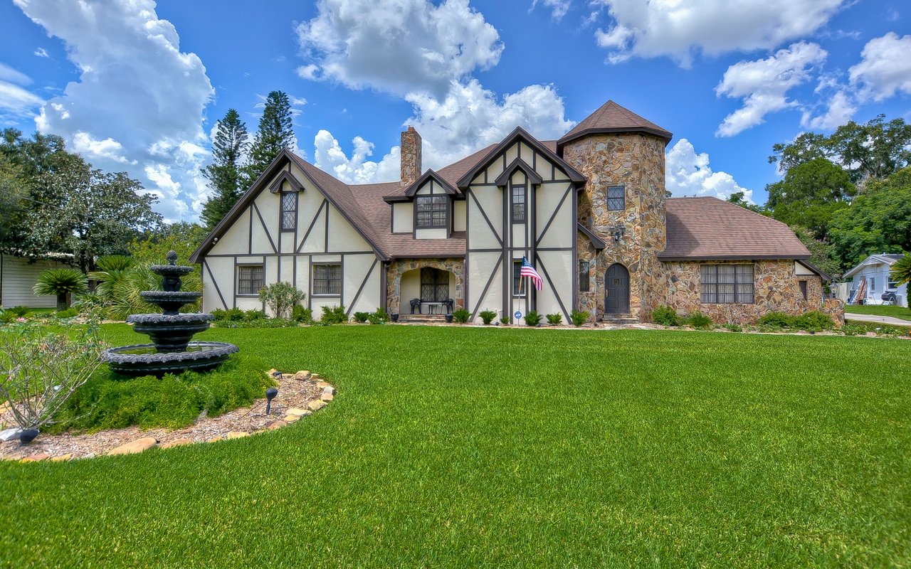 Wow! This home is a showstopper! Derived from the old English architecture, the striking curb appeal of this home is certainly one of a kind! Situated on an oversized lot with lush landscaping and in a prime location, so close to I-4! Easy commute to Lakeland, Tampa and Orlando! New roof 2012! Inside awaits tons of space to entertain guests, multiple living spaces, each with fireplaces with decorative stone surround! This home is flooded with natural light through double French doors leading out to the lanai! Split floor plan offers privacy for family members and guests alike! Large guest suite downstairs with en-suite! Upstairs awaits a captivating loft with hand painted cupula! Master suite is enormous with French door exit to a private balcony and en-suite! Two more bedrooms are also upstairs sharing another full, spa-like bathroom featuring bidet, soaking tub and gold-plated fixtures! Need a home office or play room for the kids? Enormous bonus room upstairs is just the spot! Enclosed lanai becomes another living area with outdoor kitchen and oversized sliders leading to the lanai and another sun room enclosure! Enjoy the hot Florida days in your private, sparkling swimming pool and spa! Two car garage has plenty of additional storage space and a separate workshop for tinkering! This home is being sold with the additional 0.31 acre lot next door housing an enormous garage and workshop along with separate aviary building! Unique, spacious and beautiful! Welcome Home!