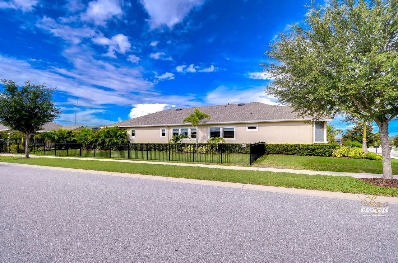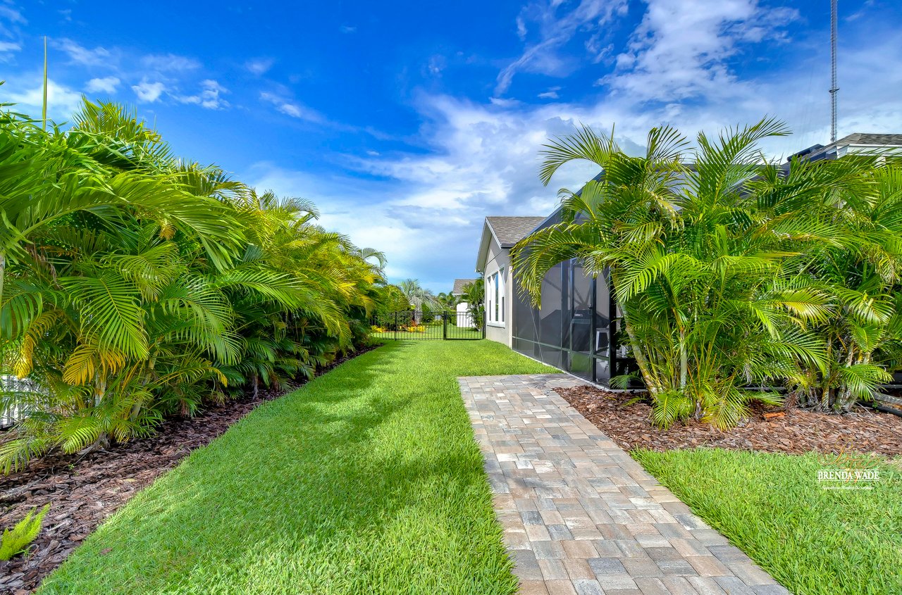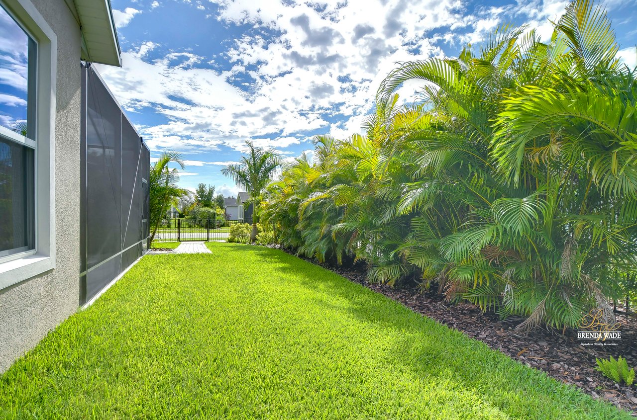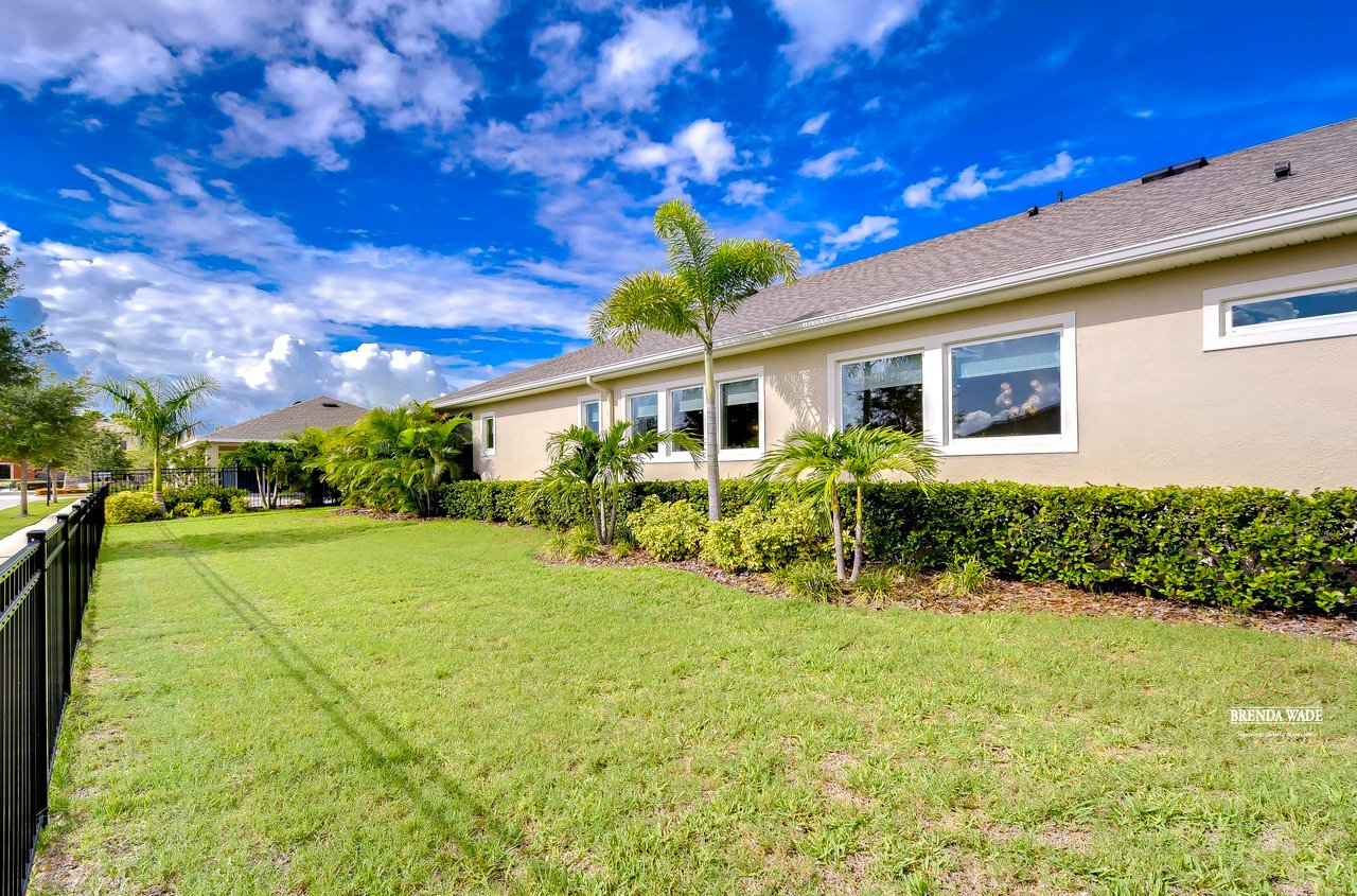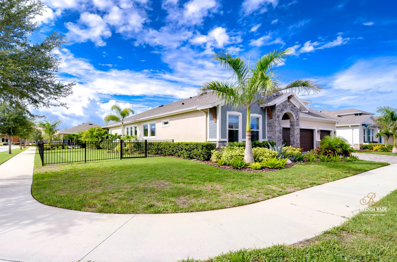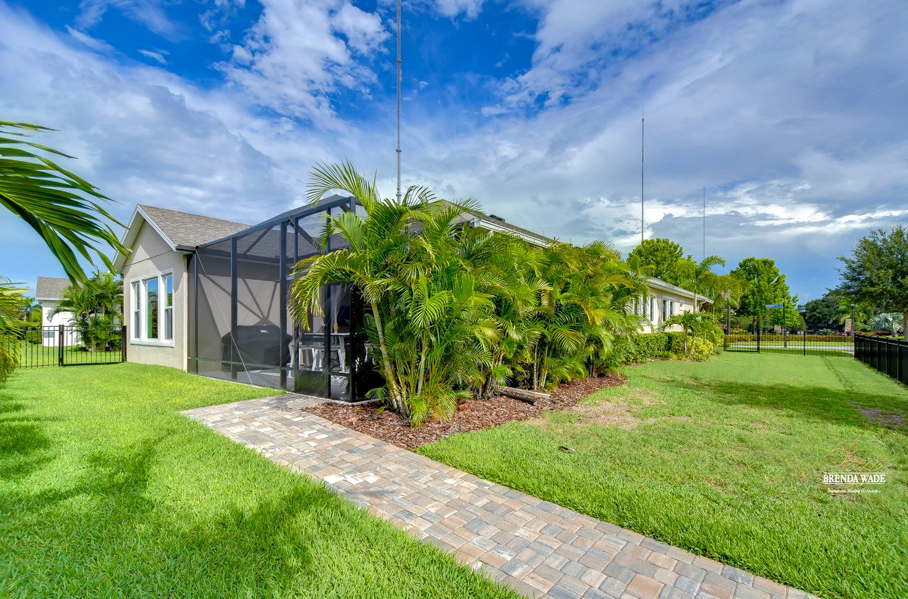 Welcome to the extraordinary resort-style living in Encore, a premier 55+ gated community that redefines the concept of active, hands-free living! A community where an on-site activities director ensures your social calendar is filled with exciting options. The Oasis Club, a hub of leisure and fitness, features a full fitness center, meeting spaces, club and party rooms, a PICKLEBALL court, multiple pools, bocce ball, fire pits, and beautiful trails. Nestled on an oversized corner lot, this stunning 3-bedroom, 3-bath home boasts a spacious 3-car garage, embodying the perfect blend of elegance and practicality. Beautiful tropical landscaping surrounds this exquisite home with pavered driveway, walkway, and stacked stone accents. The open concept and thoughtfully designed split bedroom floor plan offer an inviting and harmonious living experience. The heart of the home is a chef's dream, featuring a stunning kitchen with white cabinets, decorative backsplash, a HUGE center island with bar seating, and top-of-the-line stainless appliances. Entertain guests effortlessly in the spacious dining room adjacent to the kitchen, or enjoy the generous family room with accent well, and French door sliders leading to the inviting lanai. At the front of the home, discover a versatile flex space, perfect for an at-home office, music room, or art studio. The primary suite is a true oasis, graced with a tray ceiling, backyard views, and a STUNNING en-suite bath showcasing a luxurious, oversized walk-in shower and a HUGE custom walk-in closet with an island. Two additional bedrooms, situated in their private wing, offer large closets, and one boasts a private en-suite full bath--an ideal arrangement for guests or extended family. The entire residence emanates a sense of modern comfort and style. Conveniently located near shopping centers, parks, and dining options, this active 55+ community provides a secure and serene environment, making it the perfect place to call home. Don't miss the opportunity to experience this incredible lifestyle--schedule your private showing today and embrace the unparalleled luxury of Encore living!