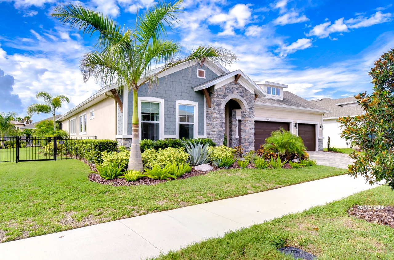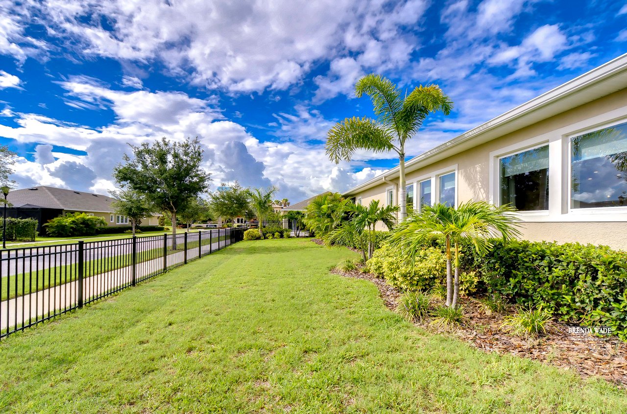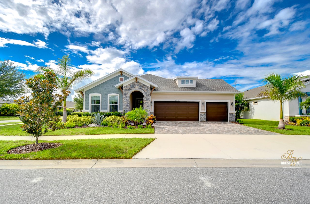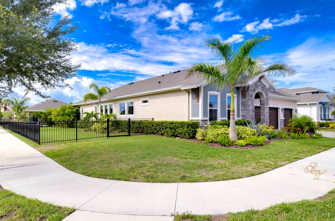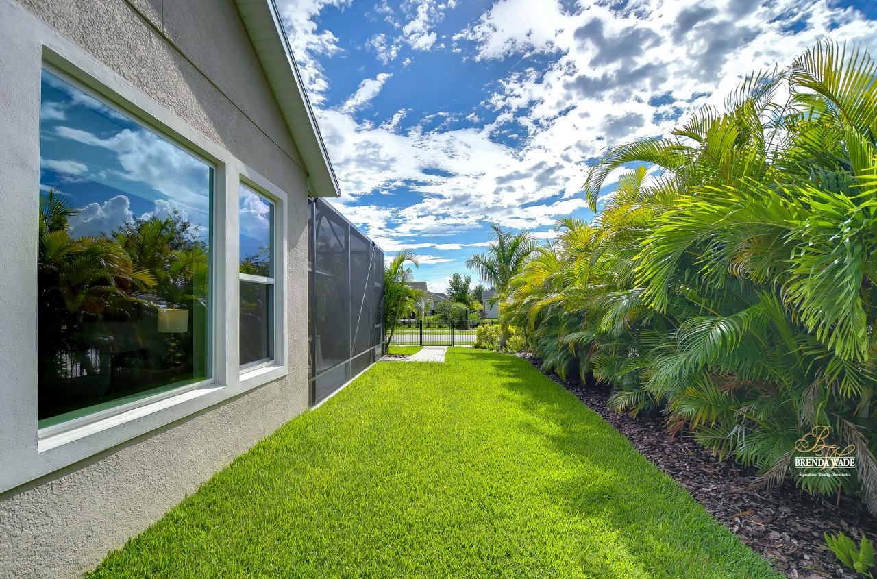 Welcome to the extraordinary resort-style living in Encore, a premier 55+ gated community that redefines the concept of active, hands-free living! A community where an on-site activities director ensures your social calendar is filled with exciting options. The Oasis Club, a hub of leisure and fitness, features a full fitness center, meeting spaces, club and party rooms, a PICKLEBALL court, multiple pools, bocce ball, fire pits, and beautiful trails. Nestled on an oversized corner lot, this stunning 3-bedroom, 3-bath home boasts a spacious 3-car garage, embodying the perfect blend of elegance and practicality. Beautiful tropical landscaping surrounds this exquisite home with pavered driveway, walkway, and stacked stone accents. The open concept and thoughtfully designed split bedroom floor plan offer an inviting and harmonious living experience. The heart of the home is a chef's dream, featuring a stunning kitchen with white cabinets, decorative backsplash, a HUGE center island with bar seating, and top-of-the-line stainless appliances. Entertain guests effortlessly in the spacious dining room adjacent to the kitchen, or enjoy the generous family room with accent well, and French door sliders leading to the inviting lanai. At the front of the home, discover a versatile flex space, perfect for an at-home office, music room, or art studio. The primary suite is a true oasis, graced with a tray ceiling, backyard views, and a STUNNING en-suite bath showcasing a luxurious, oversized walk-in shower and a HUGE custom walk-in closet with an island. Two additional bedrooms, situated in their private wing, offer large closets, and one boasts a private en-suite full bath--an ideal arrangement for guests or extended family. The entire residence emanates a sense of modern comfort and style. Conveniently located near shopping centers, parks, and dining options, this active 55+ community provides a secure and serene environment, making it the perfect place to call home. Don't miss the opportunity to experience this incredible lifestyle--schedule your private showing today and embrace the unparalleled luxury of Encore living!