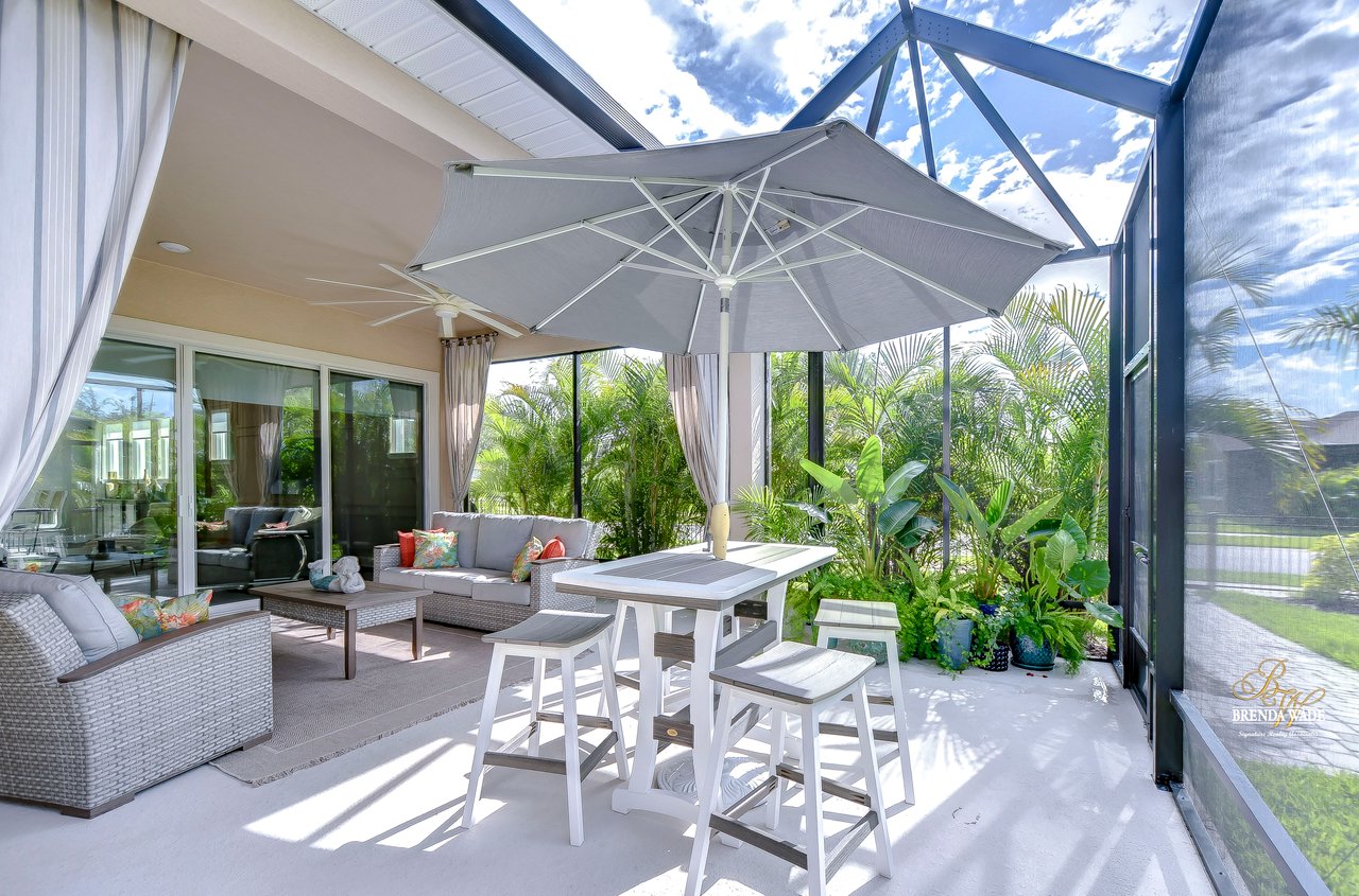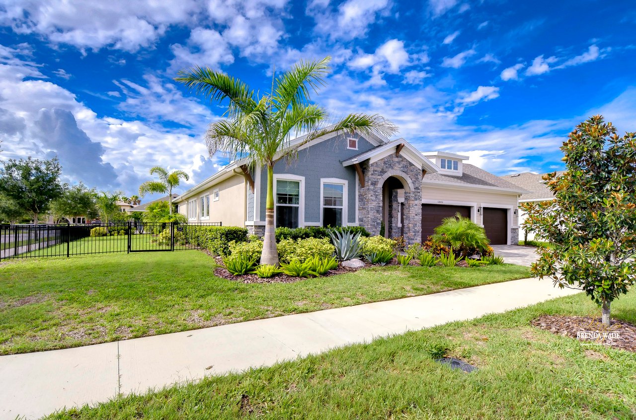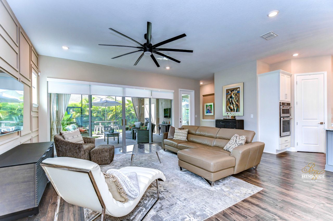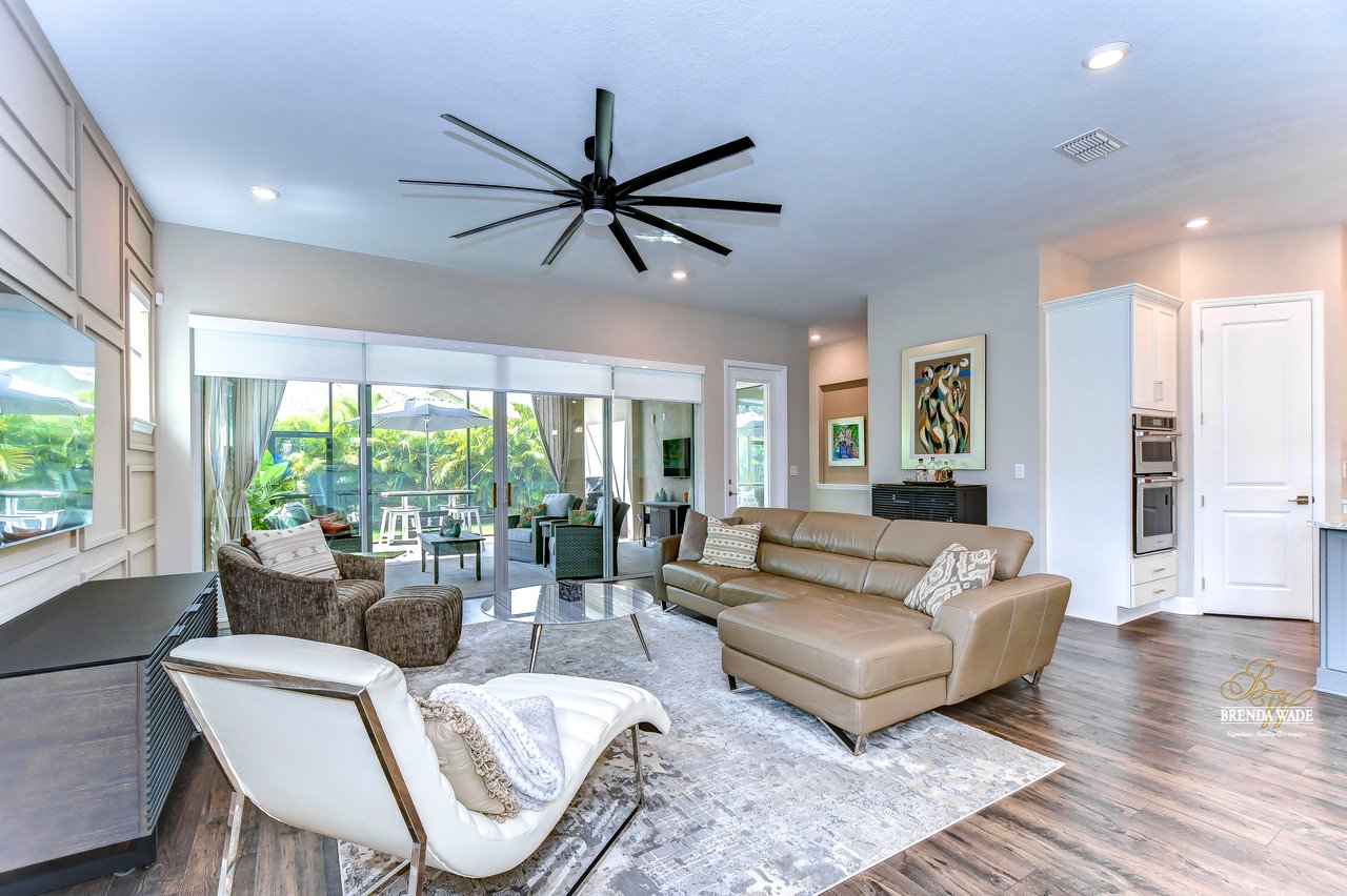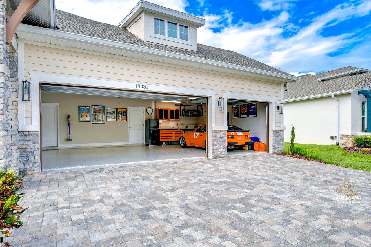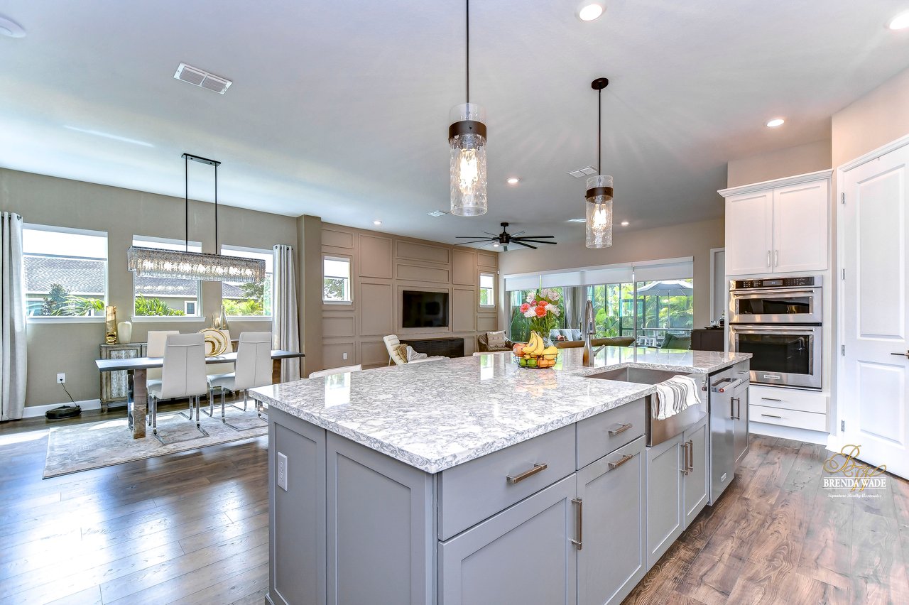 Welcome to the extraordinary resort-style living in Encore, a premier 55+ gated community that redefines the concept of active, hands-free living! A community where an on-site activities director ensures your social calendar is filled with exciting options. The Oasis Club, a hub of leisure and fitness, features a full fitness center, meeting spaces, club and party rooms, a PICKLEBALL court, multiple pools, bocce ball, fire pits, and beautiful trails. Nestled on an oversized corner lot, this stunning 3-bedroom, 3-bath home boasts a spacious 3-car garage, embodying the perfect blend of elegance and practicality. Beautiful tropical landscaping surrounds this exquisite home with pavered driveway, walkway, and stacked stone accents. The open concept and thoughtfully designed split bedroom floor plan offer an inviting and harmonious living experience. The heart of the home is a chef's dream, featuring a stunning kitchen with white cabinets, decorative backsplash, a HUGE center island with bar seating, and top-of-the-line stainless appliances. Entertain guests effortlessly in the spacious dining room adjacent to the kitchen, or enjoy the generous family room with accent well, and French door sliders leading to the inviting lanai. At the front of the home, discover a versatile flex space, perfect for an at-home office, music room, or art studio. The primary suite is a true oasis, graced with a tray ceiling, backyard views, and a STUNNING en-suite bath showcasing a luxurious, oversized walk-in shower and a HUGE custom walk-in closet with an island. Two additional bedrooms, situated in their private wing, offer large closets, and one boasts a private en-suite full bath--an ideal arrangement for guests or extended family. The entire residence emanates a sense of modern comfort and style. Conveniently located near shopping centers, parks, and dining options, this active 55+ community provides a secure and serene environment, making it the perfect place to call home. Don't miss the opportunity to experience this incredible lifestyle--schedule your private showing today and embrace the unparalleled luxury of Encore living!