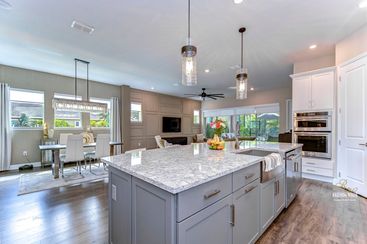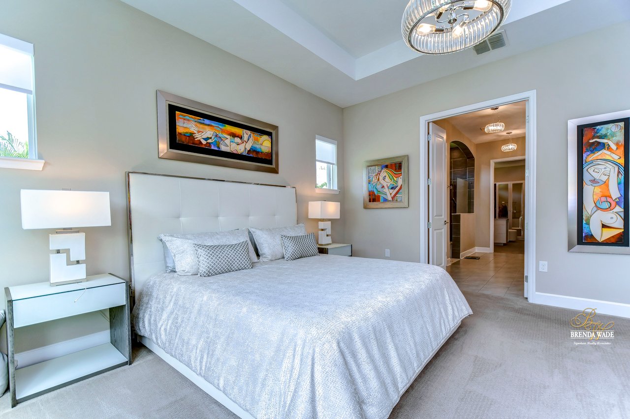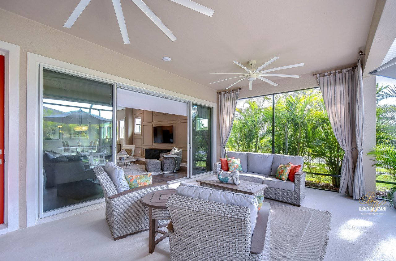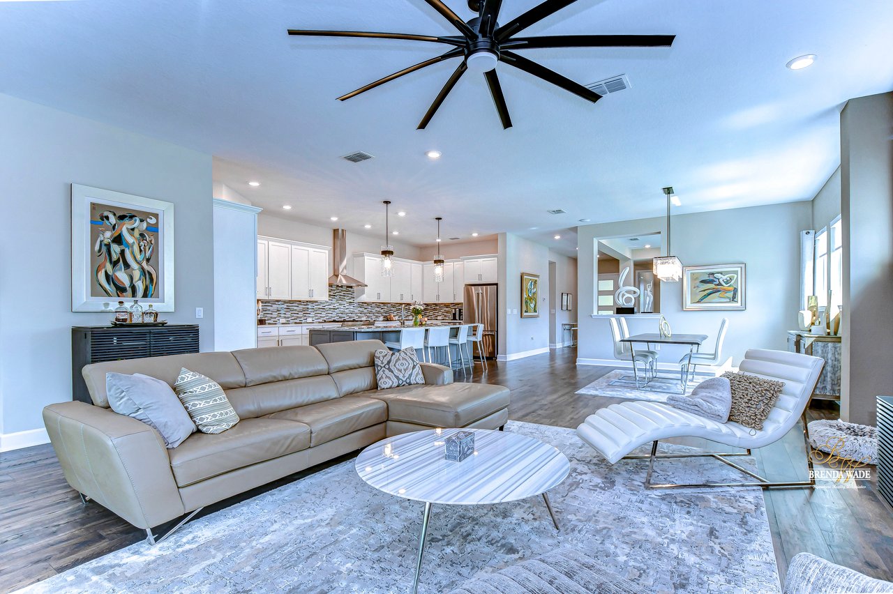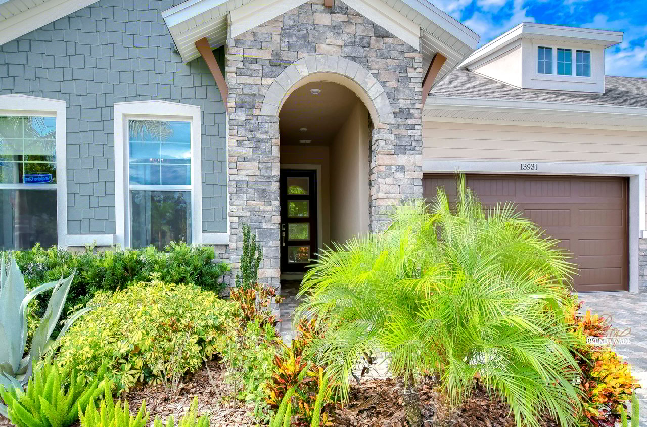Welcome to the extraordinary resort-style living in Encore, a premier 55+ gated community that redefines the concept of active, hands-free living! A community where an on-site activities director ensures your social calendar is filled with exciting options. The Oasis Club, a hub of leisure and fitness, features a full fitness center, meeting spaces, club and party rooms, a PICKLEBALL court, multiple pools, bocce ball, fire pits, and beautiful trails. Nestled on an oversized corner lot, this stunning 3-bedroom, 3-bath home boasts a spacious 3-car garage, embodying the perfect blend of elegance and practicality. Beautiful tropical landscaping surrounds this exquisite home with pavered driveway, walkway, and stacked stone accents. The open concept and thoughtfully designed split bedroom floor plan offer an inviting and harmonious living experience. The heart of the home is a chef's dream, featuring a stunning kitchen with white cabinets, decorative backsplash, a HUGE center island with bar seating, and top-of-the-line stainless appliances. Entertain guests effortlessly in the spacious dining room adjacent to the kitchen, or enjoy the generous family room with accent well, and French door sliders leading to the inviting lanai. At the front of the home, discover a versatile flex space, perfect for an at-home office, music room, or art studio. The primary suite is a true oasis, graced with a tray ceiling, backyard views, and a STUNNING en-suite bath showcasing a luxurious, oversized walk-in shower and a HUGE custom walk-in closet with an island. Two additional bedrooms, situated in their private wing, offer large closets, and one boasts a private en-suite full bath--an ideal arrangement for guests or extended family. The entire residence emanates a sense of modern comfort and style. Conveniently located near shopping centers, parks, and dining options, this active 55+ community provides a secure and serene environment, making it the perfect place to call home. Don't miss the opportunity to experience this incredible lifestyle--schedule your private showing today and embrace the unparalleled luxury of Encore living!