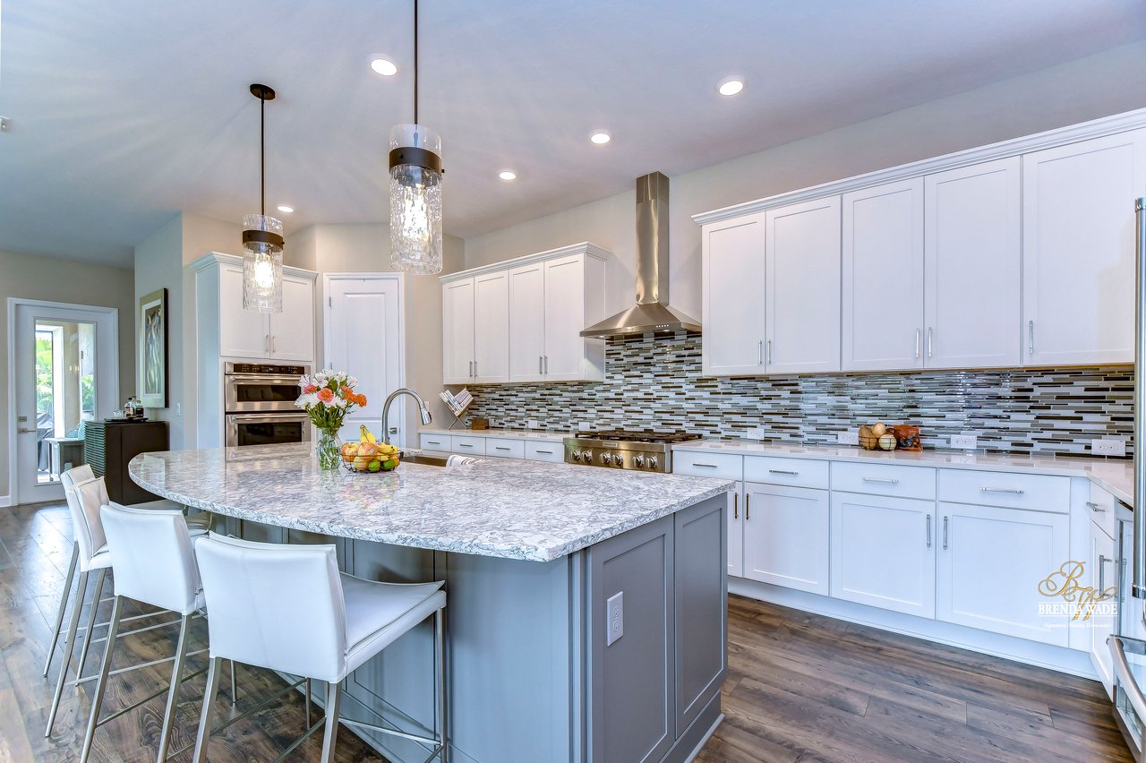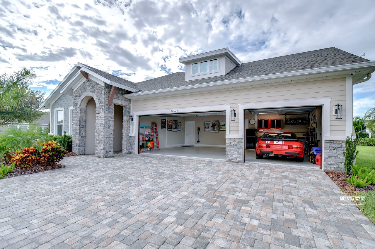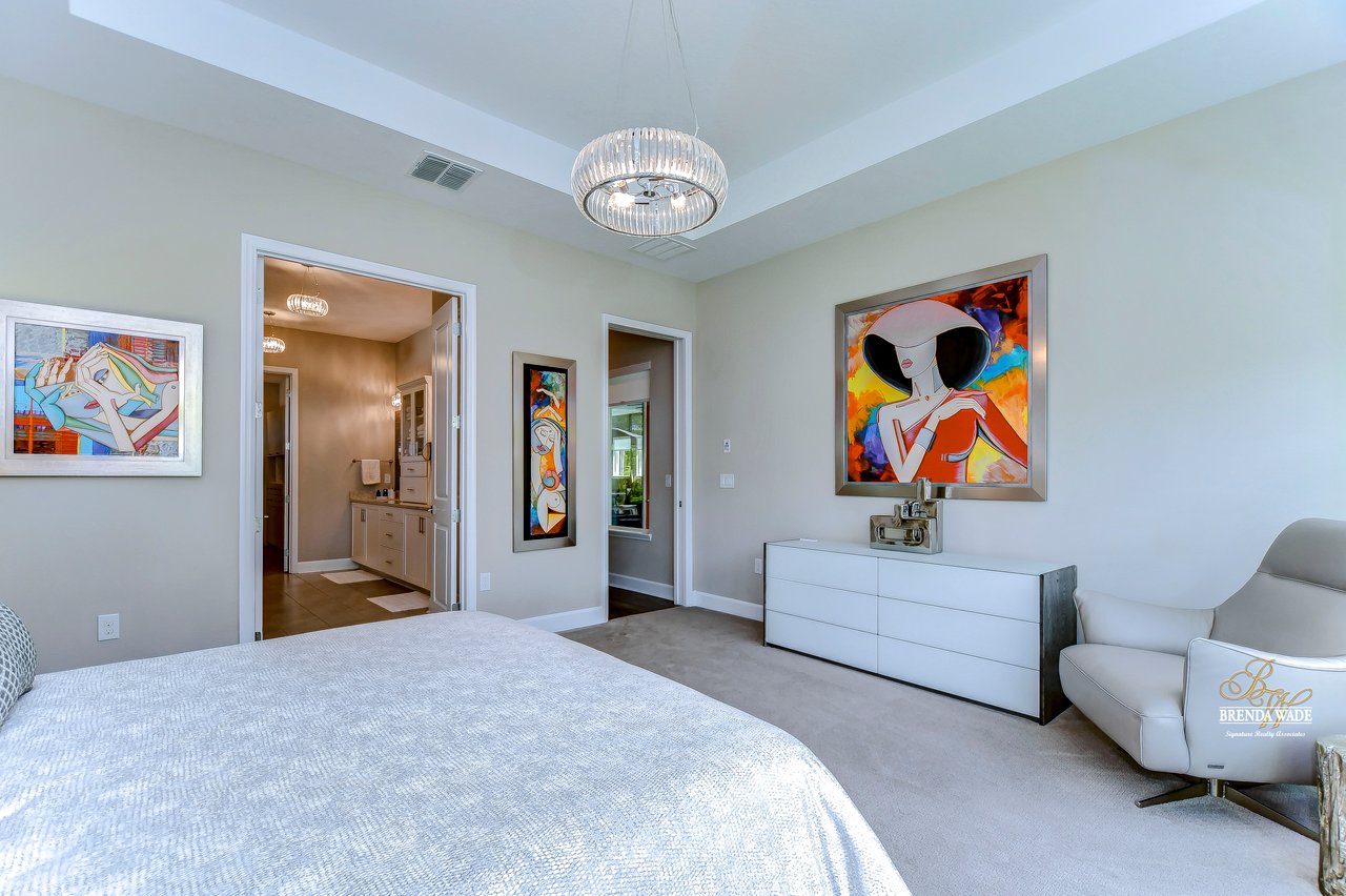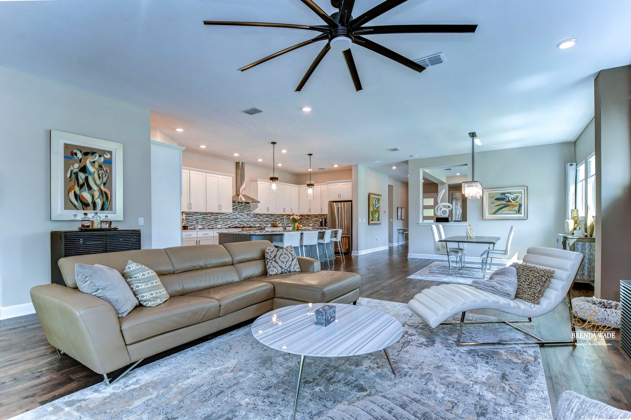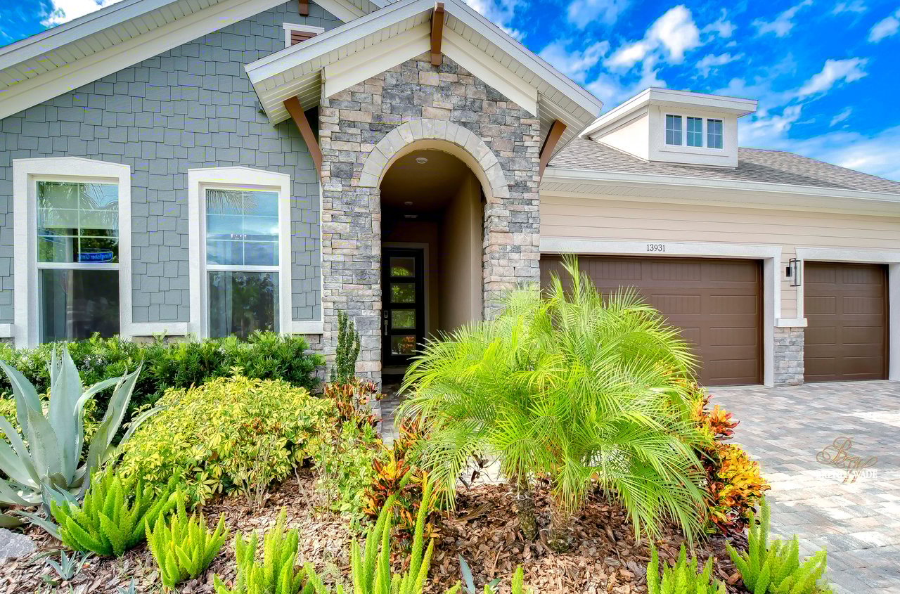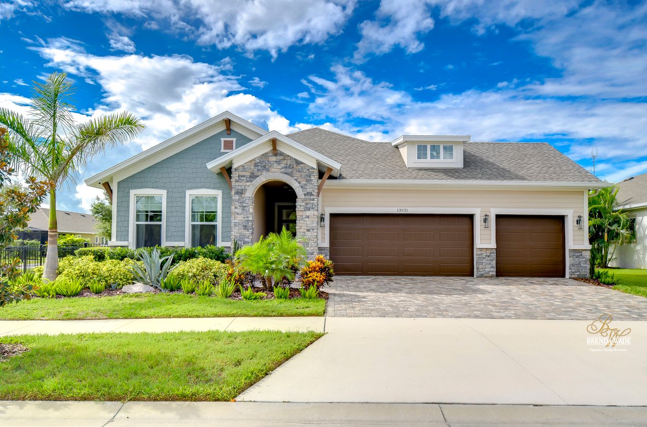 Welcome to the extraordinary resort-style living in Encore, a premier 55+ gated community that redefines the concept of active, hands-free living! A community where an on-site activities director ensures your social calendar is filled with exciting options. The Oasis Club, a hub of leisure and fitness, features a full fitness center, meeting spaces, club and party rooms, a PICKLEBALL court, multiple pools, bocce ball, fire pits, and beautiful trails. Nestled on an oversized corner lot, this stunning 3-bedroom, 3-bath home boasts a spacious 3-car garage, embodying the perfect blend of elegance and practicality. Beautiful tropical landscaping surrounds this exquisite home with pavered driveway, walkway, and stacked stone accents. The open concept and thoughtfully designed split bedroom floor plan offer an inviting and harmonious living experience. The heart of the home is a chef's dream, featuring a stunning kitchen with white cabinets, decorative backsplash, a HUGE center island with bar seating, and top-of-the-line stainless appliances. Entertain guests effortlessly in the spacious dining room adjacent to the kitchen, or enjoy the generous family room with accent well, and French door sliders leading to the inviting lanai. At the front of the home, discover a versatile flex space, perfect for an at-home office, music room, or art studio. The primary suite is a true oasis, graced with a tray ceiling, backyard views, and a STUNNING en-suite bath showcasing a luxurious, oversized walk-in shower and a HUGE custom walk-in closet with an island. Two additional bedrooms, situated in their private wing, offer large closets, and one boasts a private en-suite full bath--an ideal arrangement for guests or extended family. The entire residence emanates a sense of modern comfort and style. Conveniently located near shopping centers, parks, and dining options, this active 55+ community provides a secure and serene environment, making it the perfect place to call home. Don't miss the opportunity to experience this incredible lifestyle--schedule your private showing today and embrace the unparalleled luxury of Encore living!