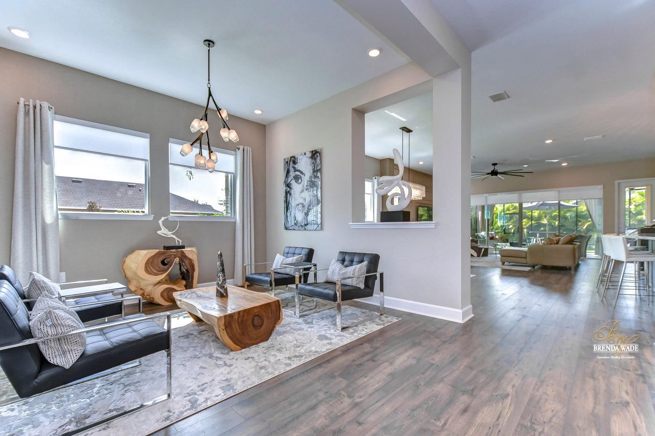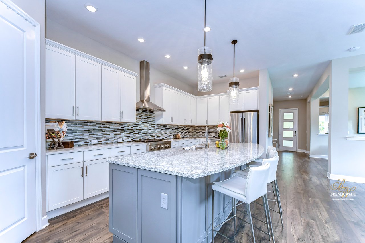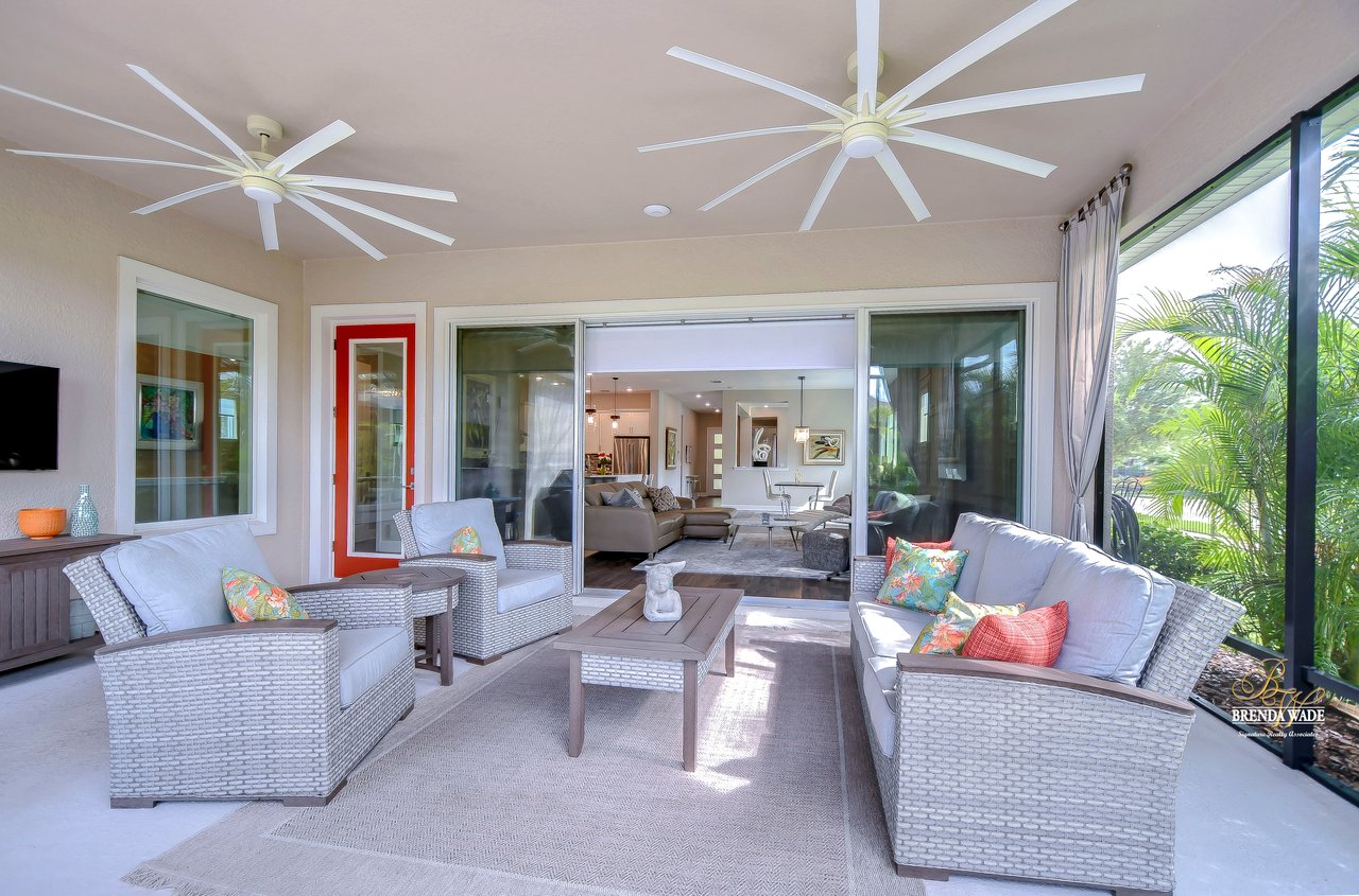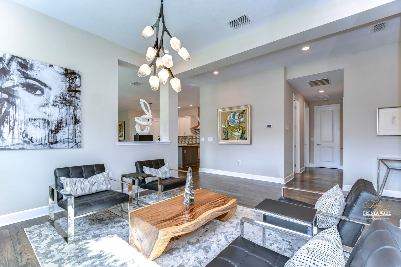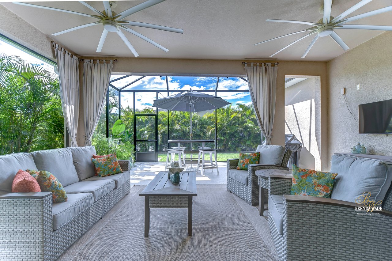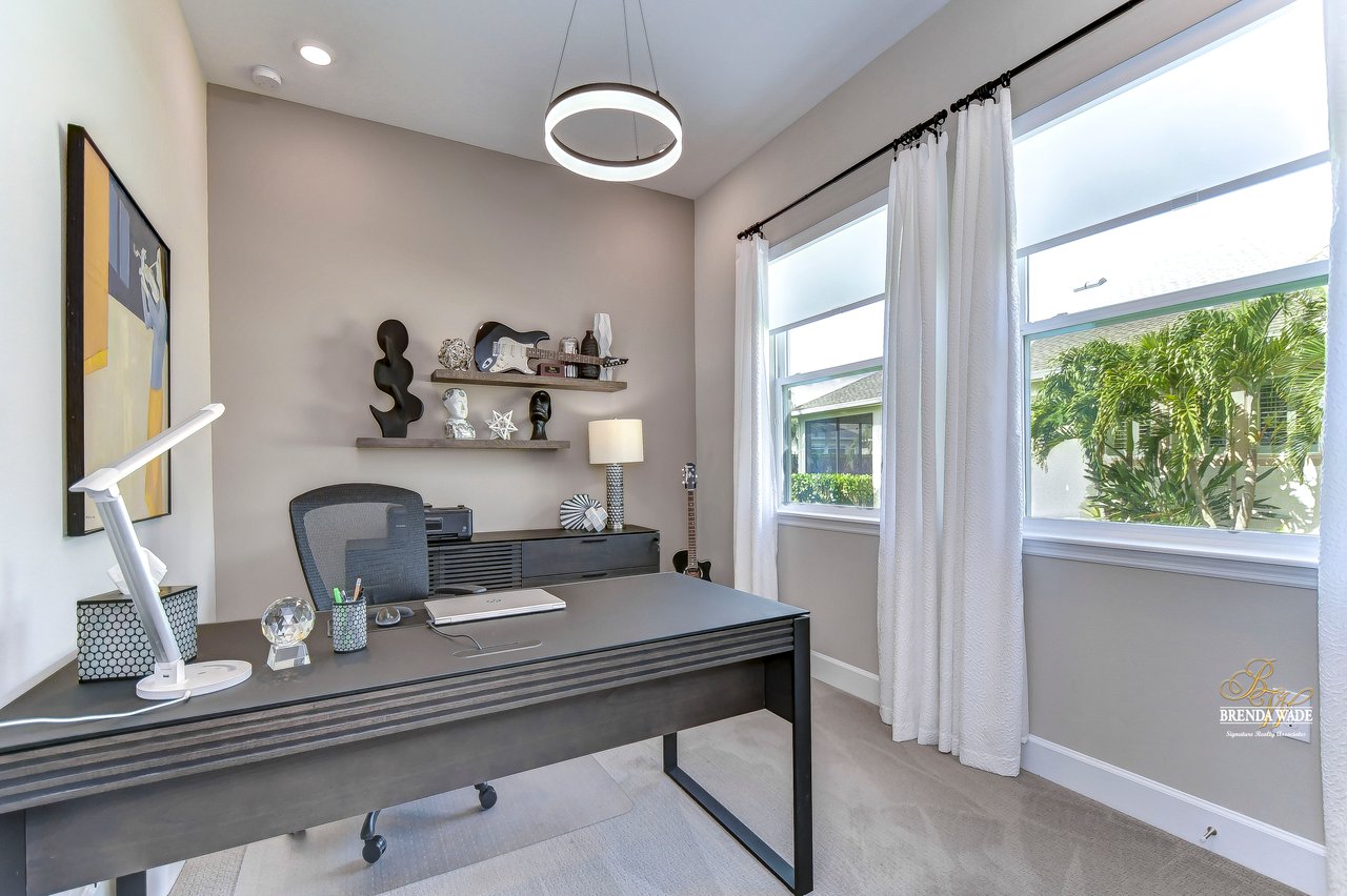 Welcome to the extraordinary resort-style living in Encore, a premier 55+ gated community that redefines the concept of active, hands-free living! A community where an on-site activities director ensures your social calendar is filled with exciting options. The Oasis Club, a hub of leisure and fitness, features a full fitness center, meeting spaces, club and party rooms, a PICKLEBALL court, multiple pools, bocce ball, fire pits, and beautiful trails. Nestled on an oversized corner lot, this stunning 3-bedroom, 3-bath home boasts a spacious 3-car garage, embodying the perfect blend of elegance and practicality. Beautiful tropical landscaping surrounds this exquisite home with pavered driveway, walkway, and stacked stone accents. The open concept and thoughtfully designed split bedroom floor plan offer an inviting and harmonious living experience. The heart of the home is a chef's dream, featuring a stunning kitchen with white cabinets, decorative backsplash, a HUGE center island with bar seating, and top-of-the-line stainless appliances. Entertain guests effortlessly in the spacious dining room adjacent to the kitchen, or enjoy the generous family room with accent well, and French door sliders leading to the inviting lanai. At the front of the home, discover a versatile flex space, perfect for an at-home office, music room, or art studio. The primary suite is a true oasis, graced with a tray ceiling, backyard views, and a STUNNING en-suite bath showcasing a luxurious, oversized walk-in shower and a HUGE custom walk-in closet with an island. Two additional bedrooms, situated in their private wing, offer large closets, and one boasts a private en-suite full bath--an ideal arrangement for guests or extended family. The entire residence emanates a sense of modern comfort and style. Conveniently located near shopping centers, parks, and dining options, this active 55+ community provides a secure and serene environment, making it the perfect place to call home. Don't miss the opportunity to experience this incredible lifestyle--schedule your private showing today and embrace the unparalleled luxury of Encore living!